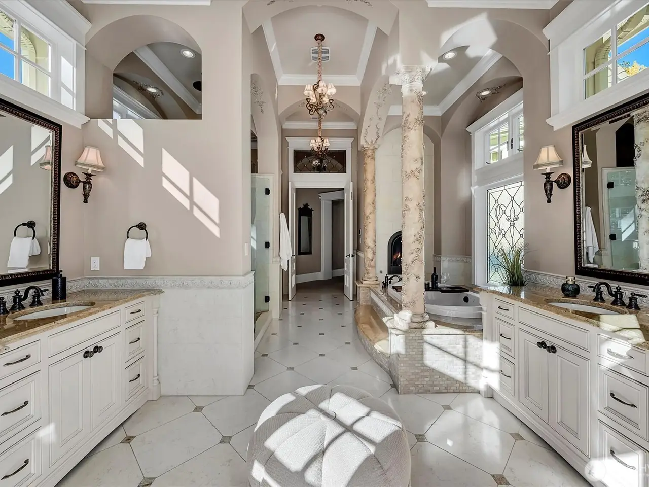 Nestled on a sprawling 5-acre estate, this elegant yet casual 10,000 sq ft home embodies a harmonious blend of sophistication and comfort. Every detail reflects unparalleled craftsmanship, from the grand entrance to the meticulously designed interiors. The award-winning design features all bedrooms are ensuite. Entertain in style within the expansive great room, or enjoy quiet moments in the serene library. The kitchen is a chef's dream, while the theatre room offers cinematic experiences at home. A large gym, craft room, and wine cellar enhance the lifestyle, complemented by an inviting 1,300 sq ft guest home. With 8 car parking and a bocce ball court, this property promises both functionality and leisure in perfect balance. Great location.
