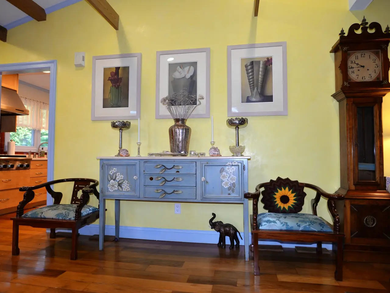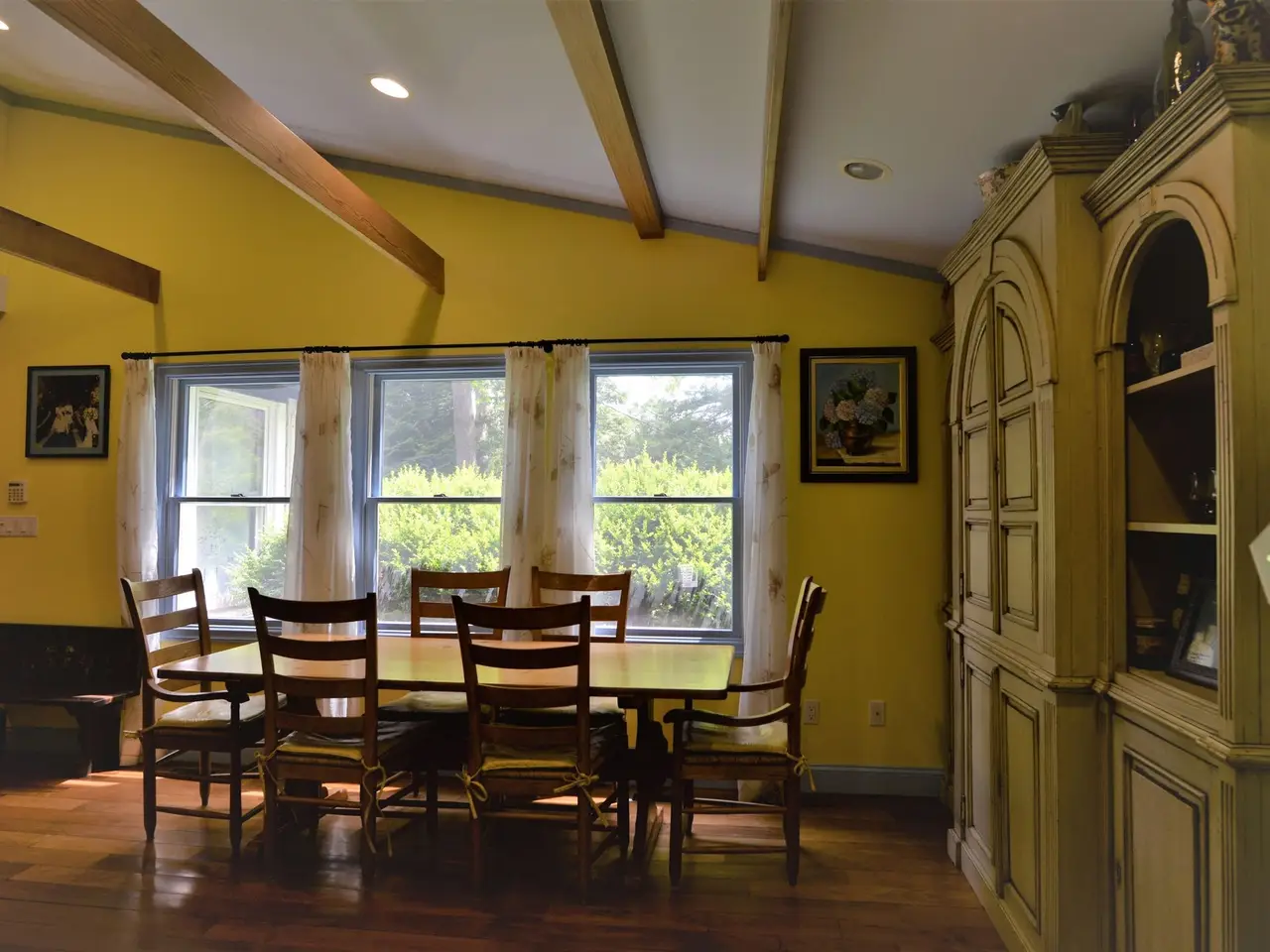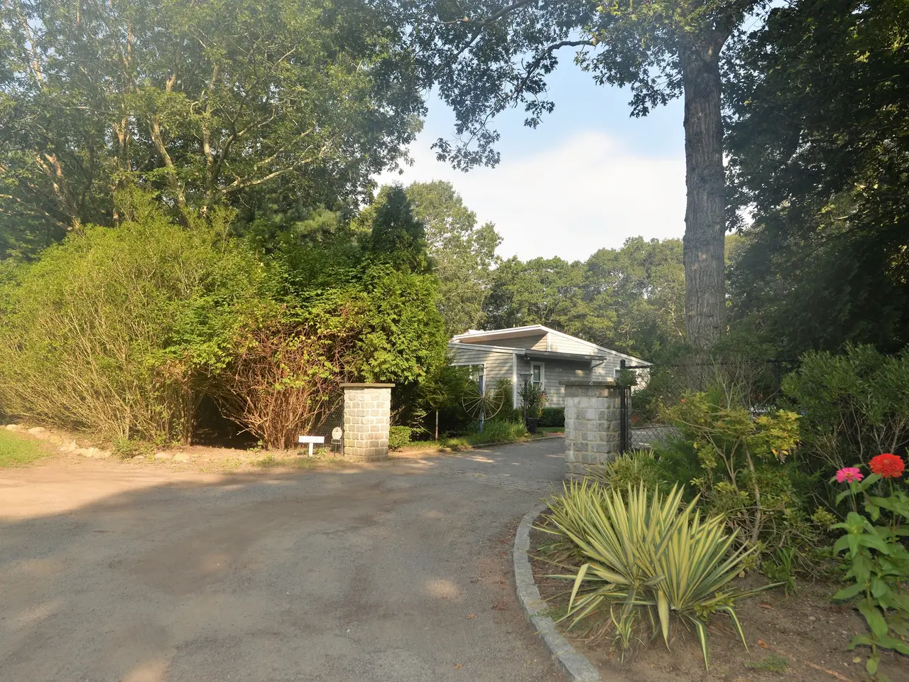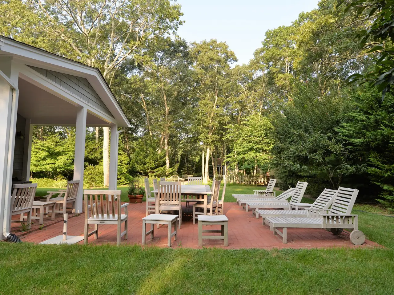 Located just over a mile from the heart of East Hampton Village, this stylish contemporary home offers the perfect blend of privacy and proximity to restaurants, shops, and beaches. Featuring three bedrooms, two full and one-half baths, a sleek kitchen, spacious living room, elegant dining area, Brazilian cherry (ipe) floors, and finished lower level. The home is set on beautifully landscaped grounds and includes a 200 sq ft pool house/shed with a 5ft basement, mudroom with venetian plaster, shaded grilling area, and charming red brick patio and walkway. The property offers ample space to add a swimming pool or expansion to suit one's vision. Whether you're seeking a weekend escape or a full-time retreat, this East Hampton gem offers tranquility, style, and endless potential. The home is designed for comfort and effortless entertainment. Your private Shangri-la awaits your special touch.