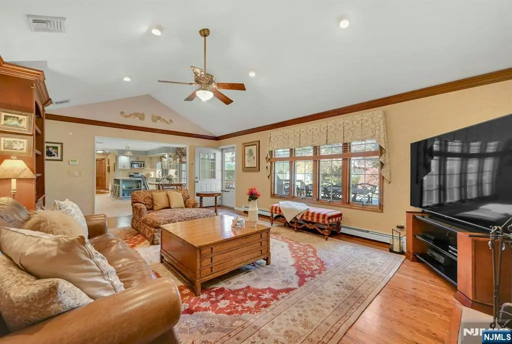 A HOME OF SPACE AND COMFORT! Welcome to 9 Appeld Ct, an elegant and spacious home, tucked away on a quiet cul-de-sac featuring a backyard oasis boasting an In-ground, heated, saltwater pool w/newer liner and waterfall. Built in 1989, this 5 BR, 3.5 Bath CH Colonial offers over 3,700 sq ft, not including the finished basement. Step inside the inviting foyer and discover the beautifully maintained living space designed for flexibility and entertaining. There is a gorgeous Living rm, a banquet sized Dining rm and an updated kitchen w/granite counters, SS appls, tile backspalsh and flooring featuring a center island w/seating, and separate dining overlooking the private yard w/lush landscaping and expansive paver patio. Just off the kitchen are 2 Lg pantry closets, a powder rm and huge lndry rm w/shelving. The home office w/closet and built-in desks could be utilized as a 1st flr BR. The Great rm w/FPL and vaulted ceiling accesses the deck and 2 car att/garage. Upstairs, the Primary suite offers a peaceful retreat w/2 custom walk-in cls and spa bath w/radiant heat, steam shower w/seating, jetted tub and 2 vanities. Three add'l BRs w/great closet space and hall bath w/tub and dbl sinks complete this level. The finished basement adds extra living space, approx 1,200 sq ft, for movie/game nights, gym, 5th BR w/egress wndw, gym and ample strg.. New 2 Zone CAC installed approx 2 yrs. Located near NYC Transp, Schools, Parks and Downtown Hillsdale, this home truly combines suburban tranquility with everyday convenience.