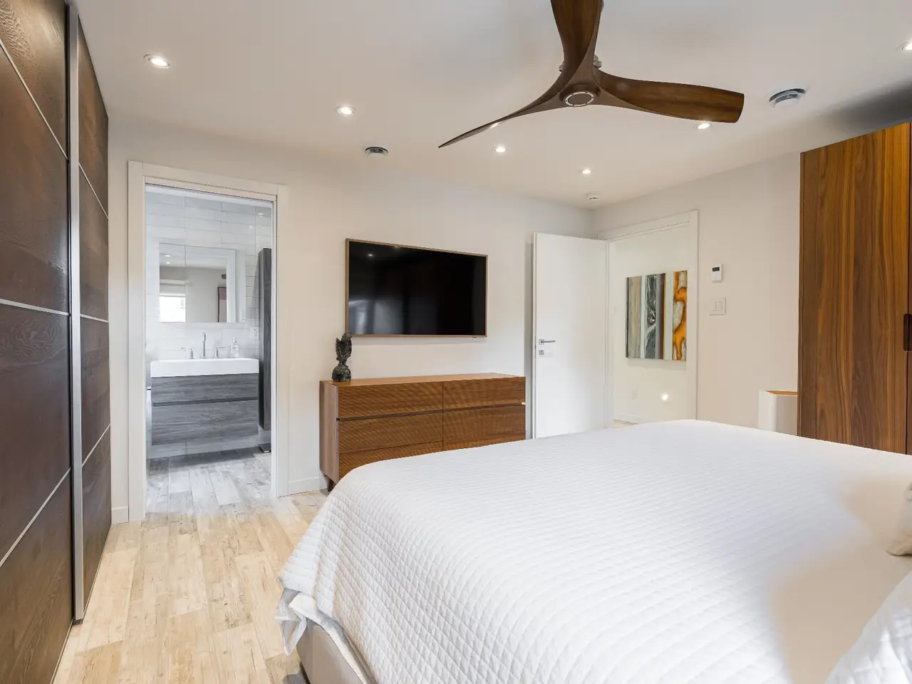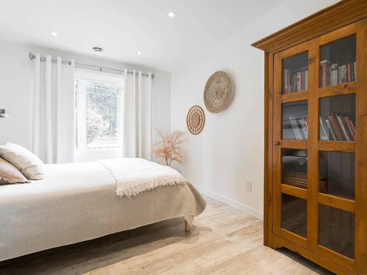 Stunning, fully rebuilt in 2017, this 3+2 bedroom bungalow is ideally located in the sought-after Pointe-Claire South. Featuring 4 full bathrooms, radiant heated floors on both levels, new windows, roof, heat pump, electrical, plumbing, and so much more. The open-concept living area boasts cathedral ceilings, a propane fireplace, and high-end finishes throughout. Enjoy an oversized garage with ample storage and a private backyard patio, perfect for entertaining. Book your visit today!