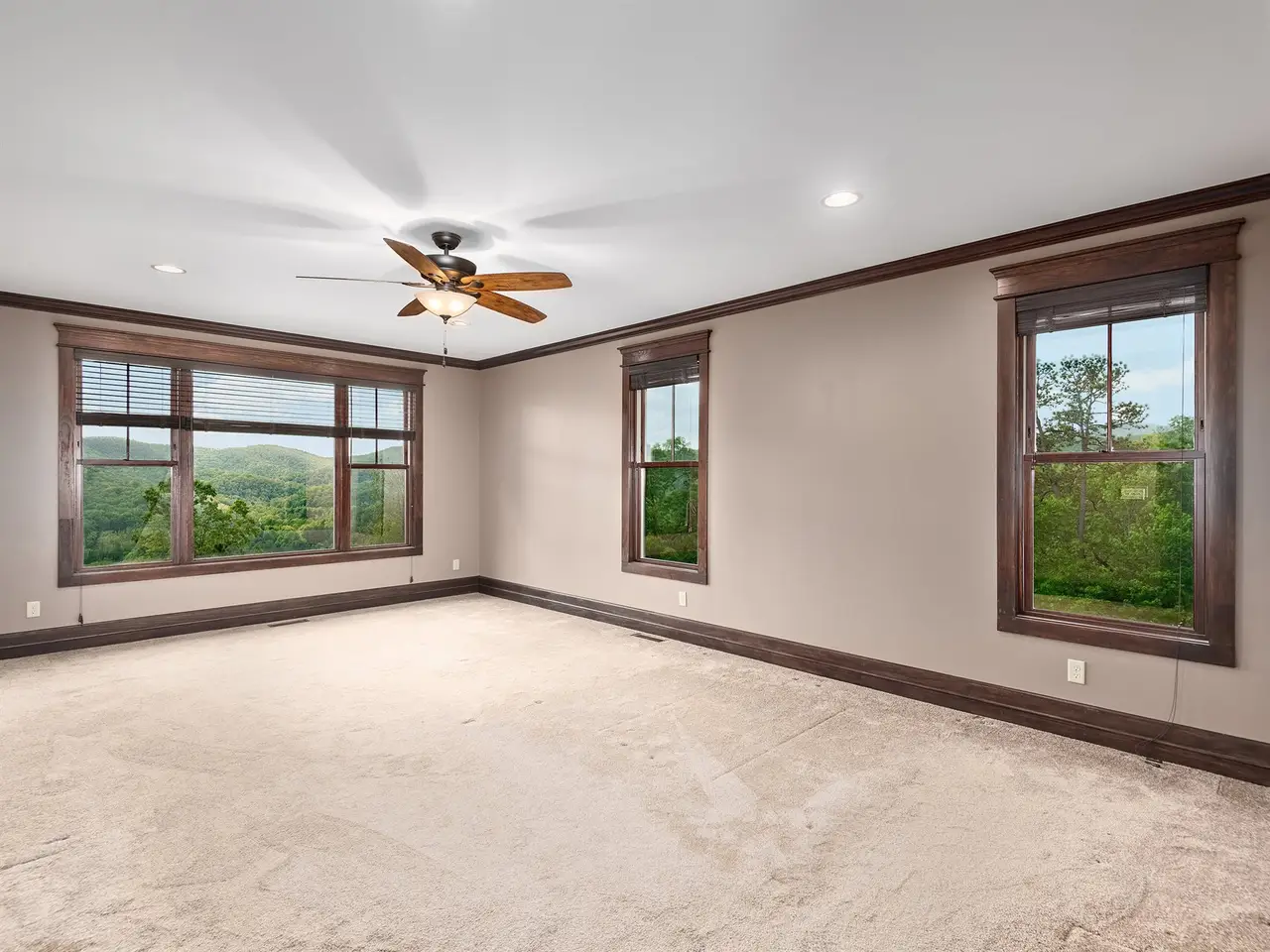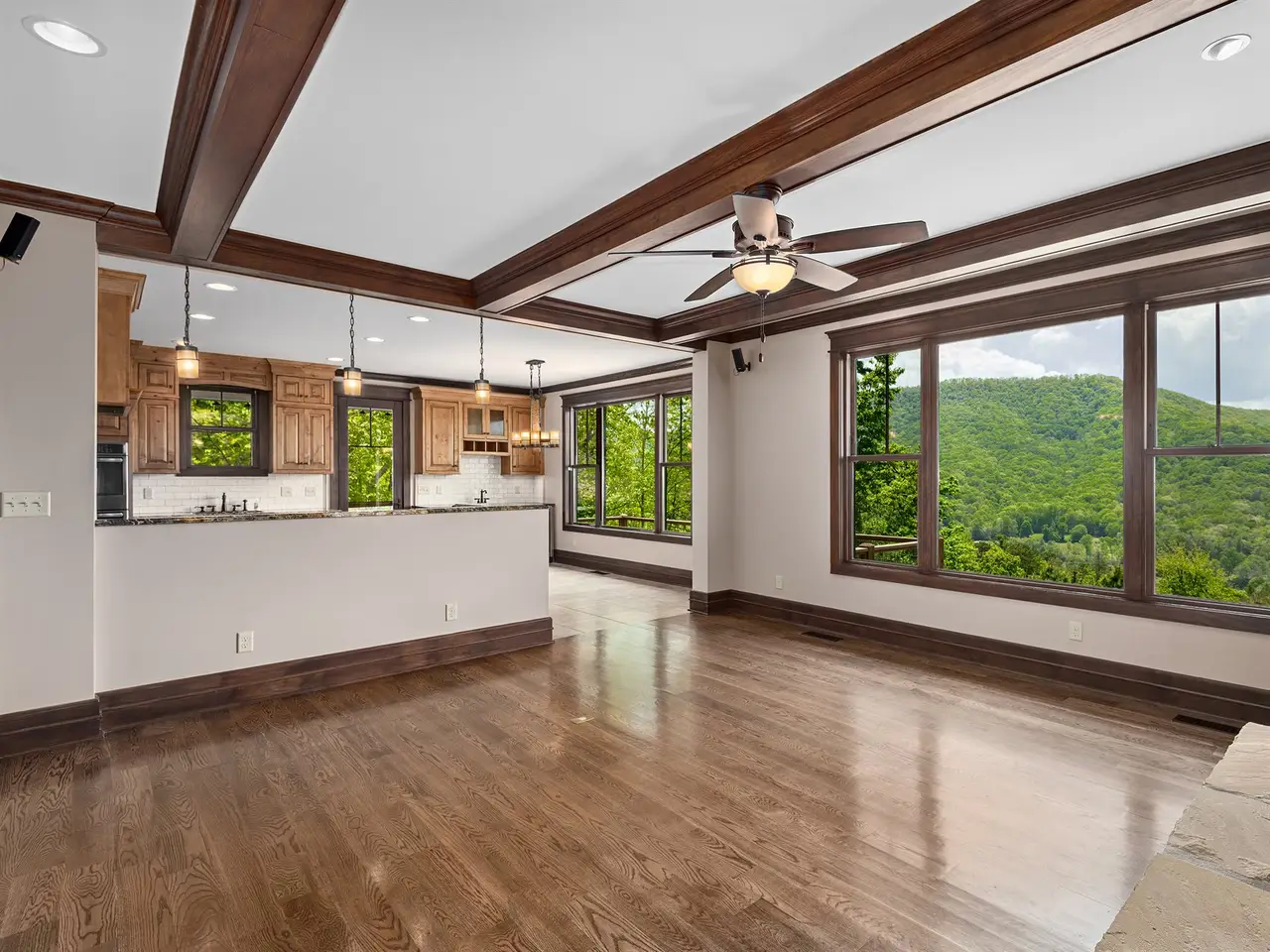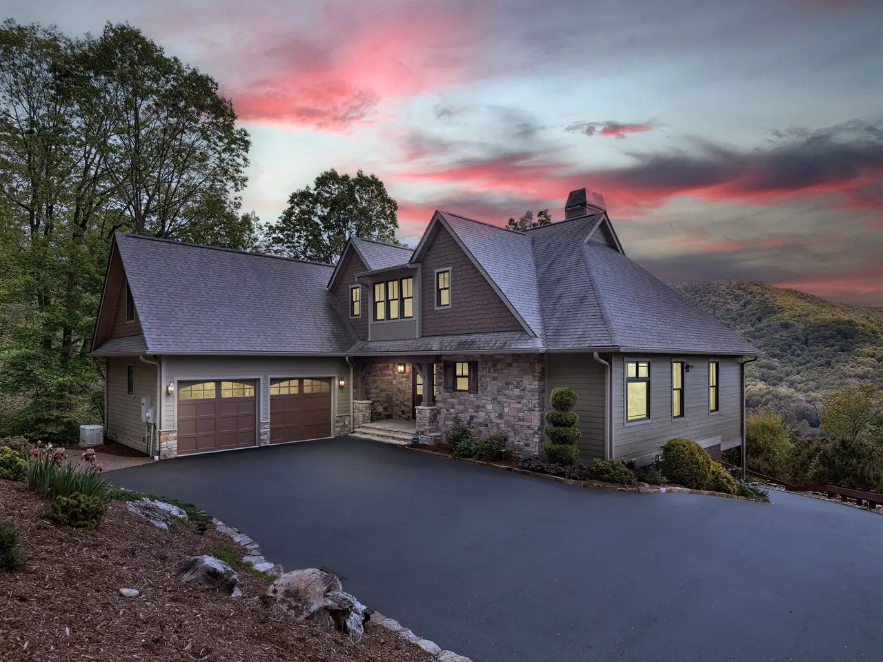 Experience refined mountain living in this stunning 4-bedroom, 4.5-bath estate nestled on 1.78 private acres in an exclusive gated community. With 4,100 square feet of thoughtfully designed space, this home offers the perfect blend of luxury, comfort, and natural beauty. Step into a sun-drenched, southern-facing great room featuring a striking fireplace and jaw-dropping mountain views. The chef's kitchen is a dream come true?complete with a gas cooktop, double oven, ample counter space, and beautiful cabinet, all flowing seamlessly into open-concept living and dining areas with rich wood flooring throughout. Enjoy peaceful mornings on the screened porch, quiet evenings on the expansive back deck, or gather around the custom fire pit under the stars. Professionally landscaped grounds provide year-round beauty and privacy.