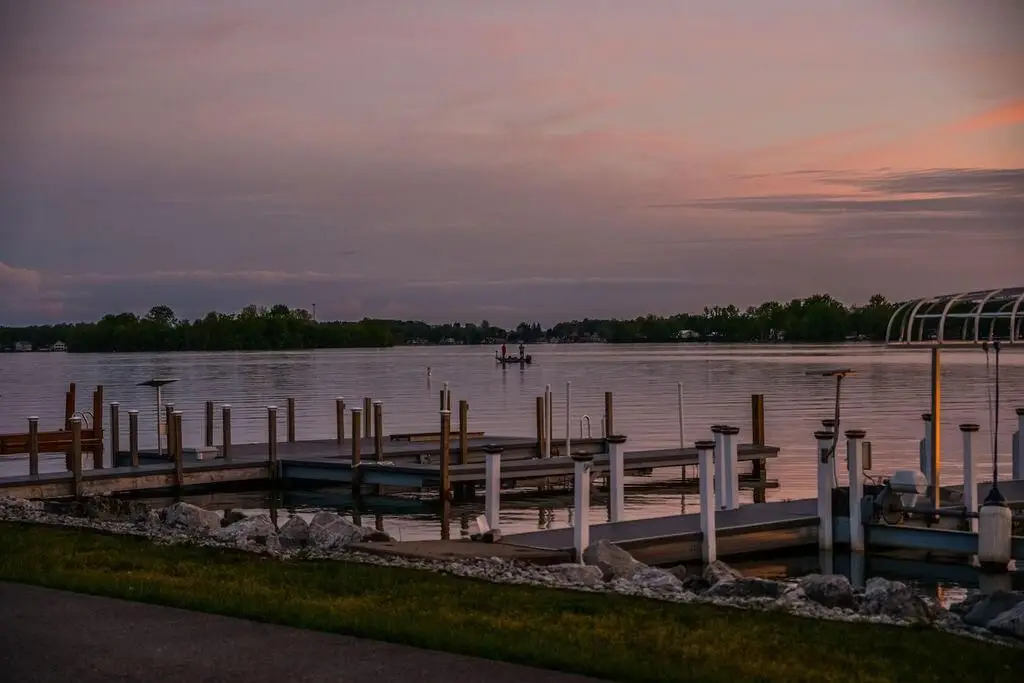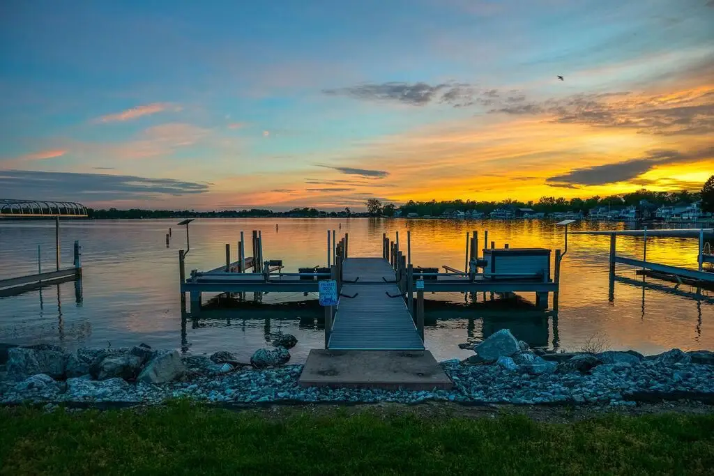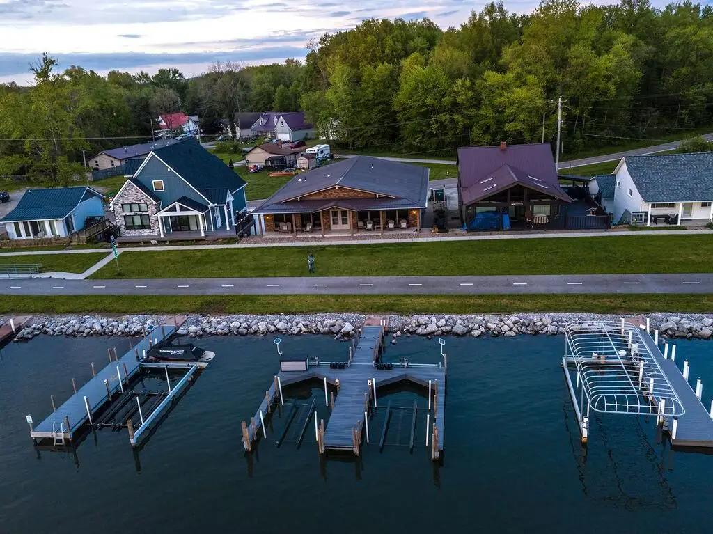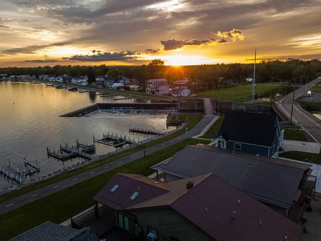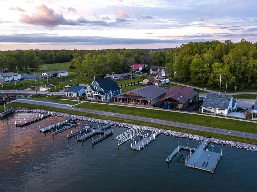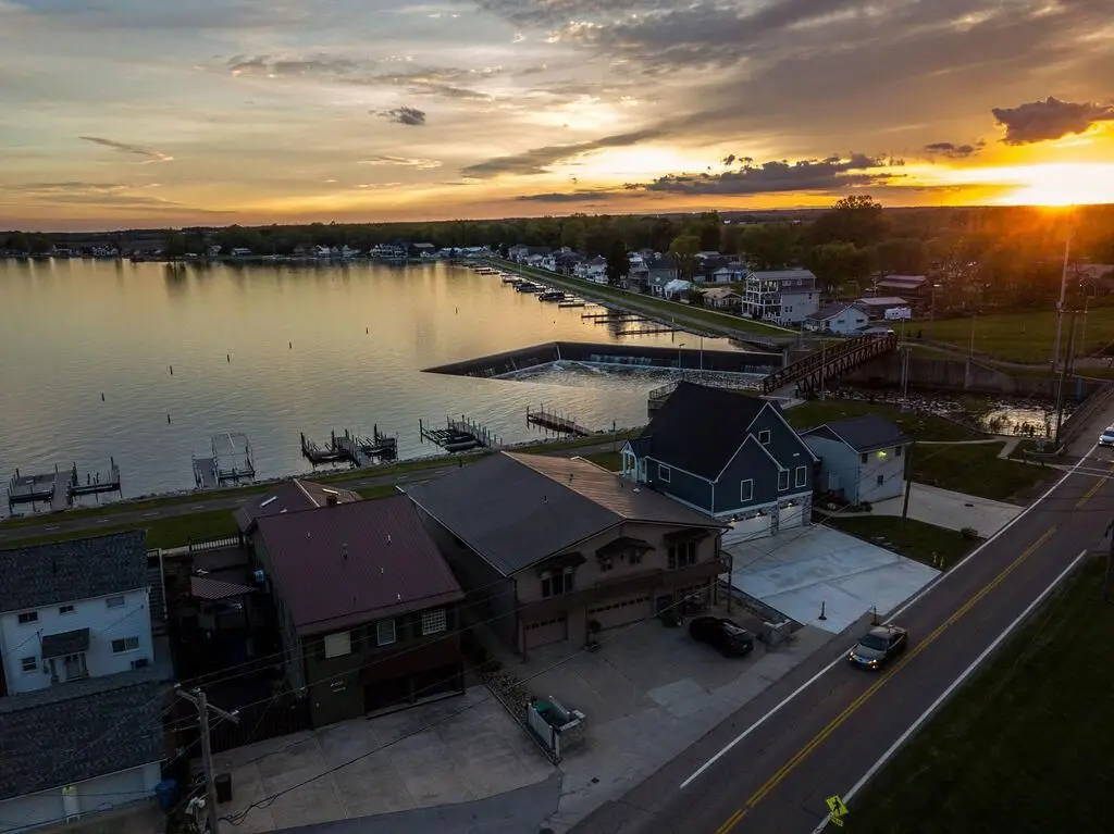 Get ready to unwind and bask in some of the most spectacular sunrise and sunset views on Buckeye Lake while sitting lake front on your covered concrete patio which runs the length of the home! This immaculate, open concept, huge great room with gorgeous white washed cedar walls and ceiling offers lakefront living like no other! House even has a four-car garage! Wall to wall windows, custom cabinets, cathedral ceilings, wood flooring, storage galore, huge pantry, and stainless appliances, are just a few of the outstanding amenities in this gorgeous home! This two story allows you to also park your boats outside your lakeside front door and is just steps away from your two solar hoisted lifted boat docks which are ready for you to simply jump on your boat and go enjoy the lake! Four bedrooms (possible 5) and four baths in this spacious, almost 5000 square foot home (1000 square footage of garages, 2000 square footage of finished lower level, and 2960 lakefront level) is ready for you to move in and enjoy year-round lake living at it's finest! The lower level could be a wonderful in-law suite or even a rental with separate entrances; there is even a garage area for it right outside the door! Walk along the biking/walking path to local restaurants and shops, the Yacht Club, or even the North Shore Boat Ramp! Properties like this one rarely come available, so schedule a showing today!