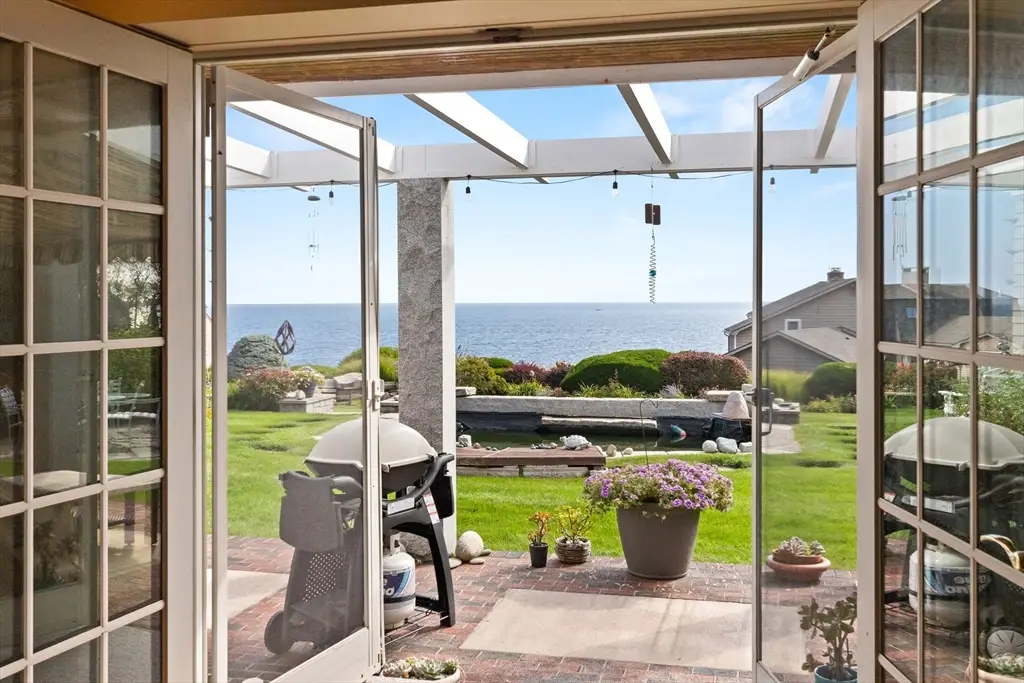 Nestled within a picturesque seaside community, this sizable and sophisticated formal home has elegance and charm. It coasts expansive views of the ocean creating a backdrop that shifts with the rhythms of the tide and the changing colors of the sky. The grand entrance welcomes you into a impressive foyer with soaring ceilings and polished marble floor. The flowing layout includes multiple living spaces each bathed in natural light. The living room accentuated by a fireplace and French doors leading to the patio invites both intimate gatherings and grand entertaining. a well-equipped kitchen with a separate spacious pantry, top of the line appliances, custom cabinetry and granite counter tops adjoins a cozy family room that leads to a formal dining room with ocean views. The spacious principal bedroom has a sunroom and well appointed bath. Meticulously cultivated garden with koi ponds , a private path to the ocean edge and a roof top deck. This is a true haven by the sea.