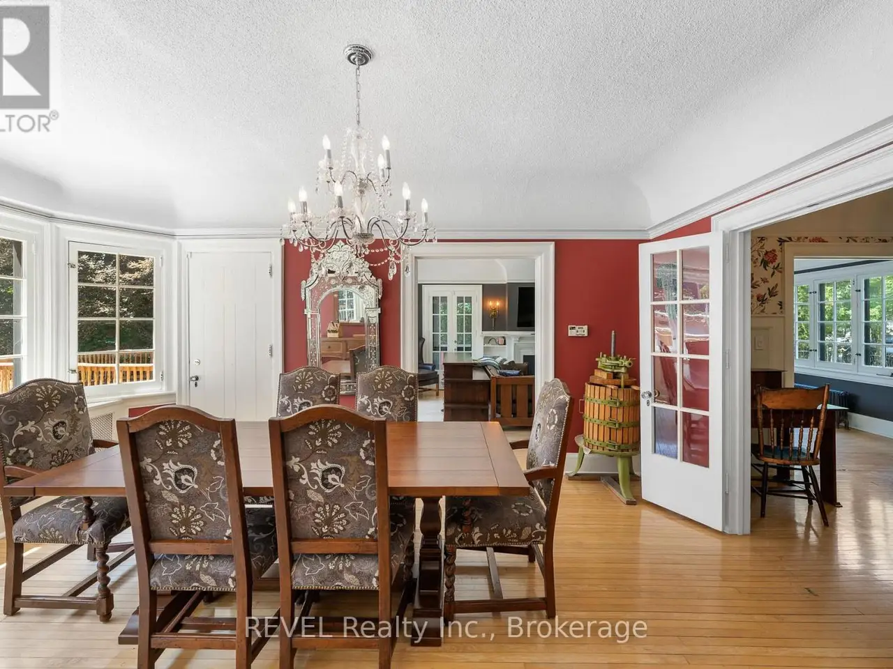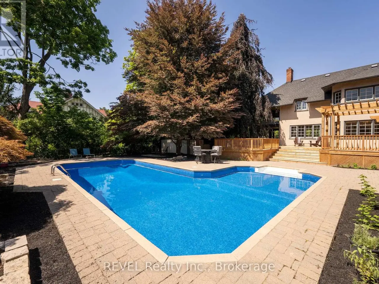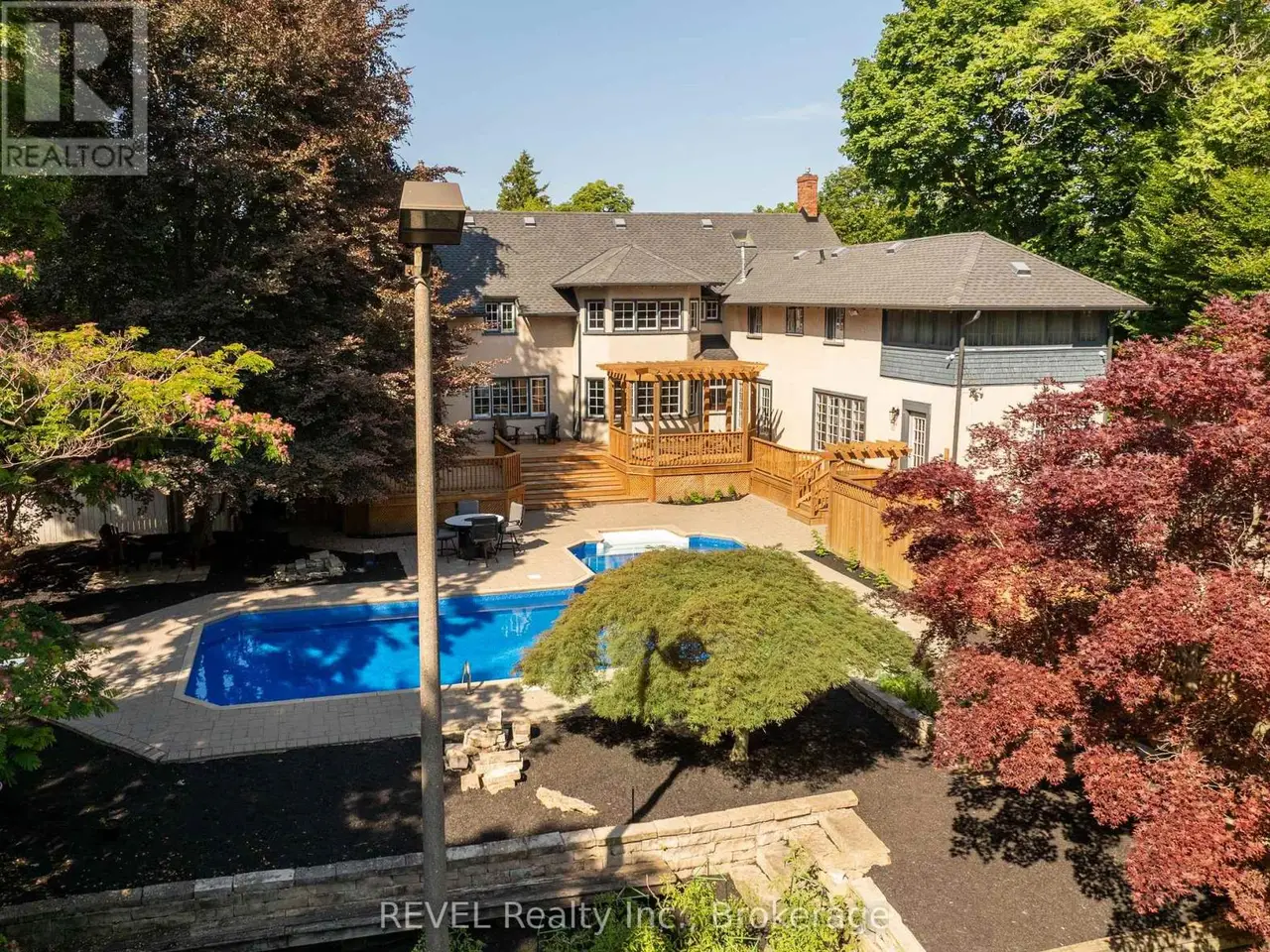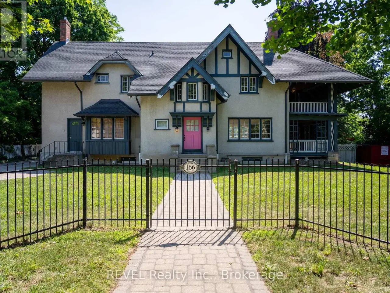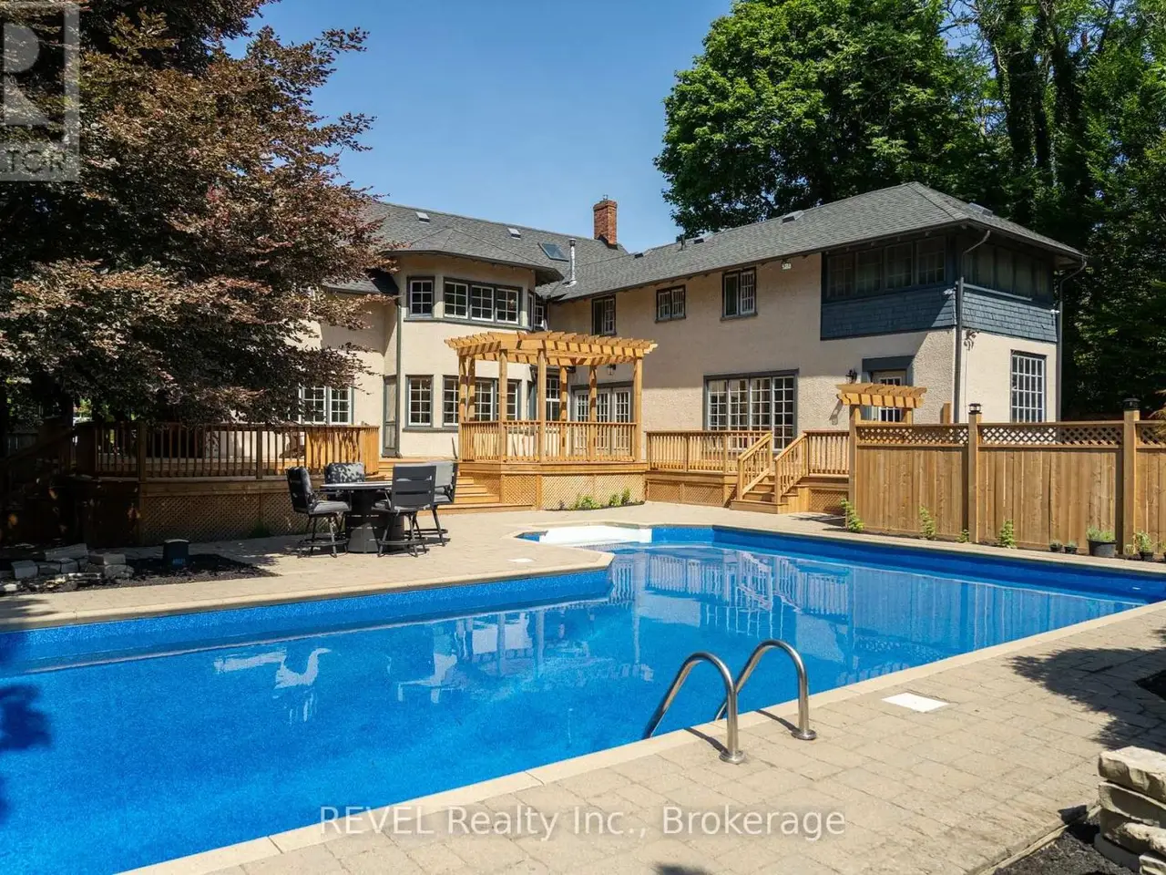 Welcome to one of Niagara-on-the-Lake's most iconic and breathtaking properties. Nestled on the prestigious Queen Street and set back on an extraordinary 112 x 253 ft lot, this stately residence offers the best of both worlds, with total privacy in your own lush oasis, yet just steps from the historic charm and energy of Old Town. Originally built in 1912, this nearly 4,000 sq. ft. heritage home exudes character, elegance, and timeless appeal. Lovingly maintained, 166 Queen Street features 5 spacious bedrooms, 2 fully equipped kitchens, and a unique layout that includes nanny quarters or a self-contained rental suite - perfect for family or friends. Step through the grand foyer onto gleaming hardwood floors and into a space designed for both entertaining and everyday comfort. A formal dining room, oversized family room, and a stunning home office/library offer sophisticated yet inviting spaces throughout. Outside you have a large balcony with full privacy, or you can head down to the new, expansive wood deck to enjoy outdoor dining or relaxing by the in-ground pool. Whether you're sipping wine after a day of vineyard tours, enjoying local theatre, or teeing off at one of the nearby golf courses, this property delivers the quintessential NOTL lifestyle. Zoned for both residential and select commercial uses, 166 Queen Street also presents an exceptional business opportunity ideal for professionals such as dentists, accountants, or chiropractors looking for a prestigious address. 166 Queen Street is more than just a home: its a piece of Niagara-on-the-Lake history, and a lifestyle opportunity unlike any other. Dont miss your chance to own a landmark! (id:7434)