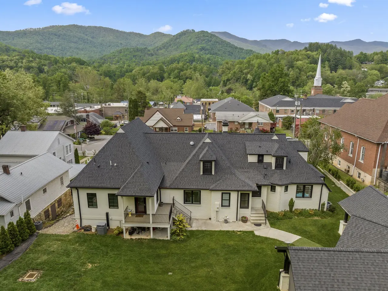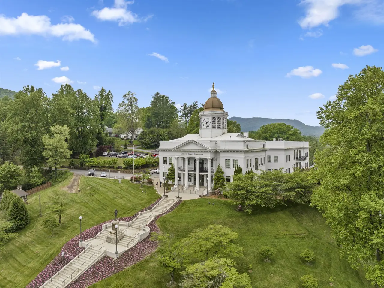 Welcome to the perfect spot for unparalleled in-town living at its finest. Located in the heart of Downtown Sylva, this meticulously restored 1939 French provincial home offers breathtaking views of the surrounding mountains and charming Sylva. Designed by the celebrated architect Charles N. Parker of Asheville's iconic Grove Arcade, this home is a rare opportunity to own a piece of history. Relax in the epic four-season outdoor living space, perfect for entertaining or unwinding, complete with living and dining spaces, a cozy fireplace, TV, grill station, and hot tub. The property also boasts a heated 4-car garage, 500 SF workshop, heated sidewalks, laundry on two levels, and a full terrace level with media room, home gym, and ample storage. Best of all, this exquisite home is just steps away from Sylva's vibrant shops, restaurants, and breweries. Whether you're seeking an enchanting second home or a unique local residence steeped in history, this gem offers appeal and sophistication.