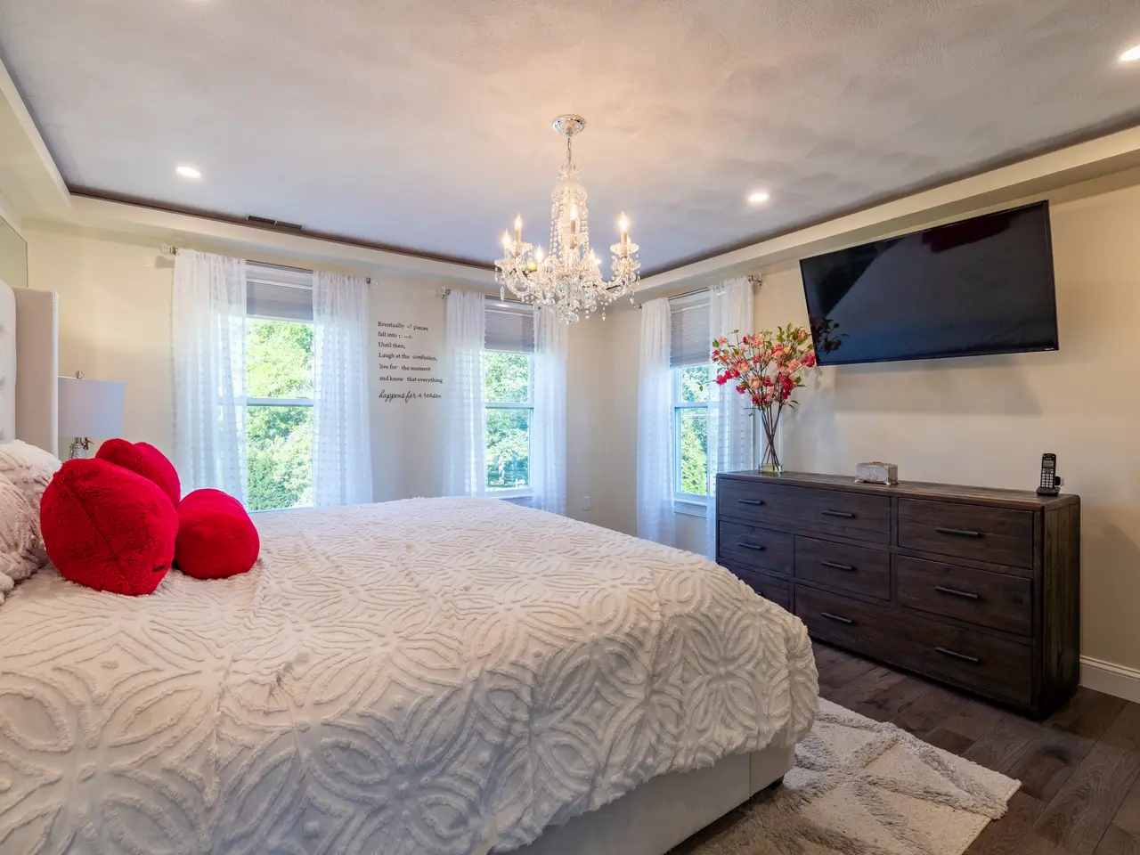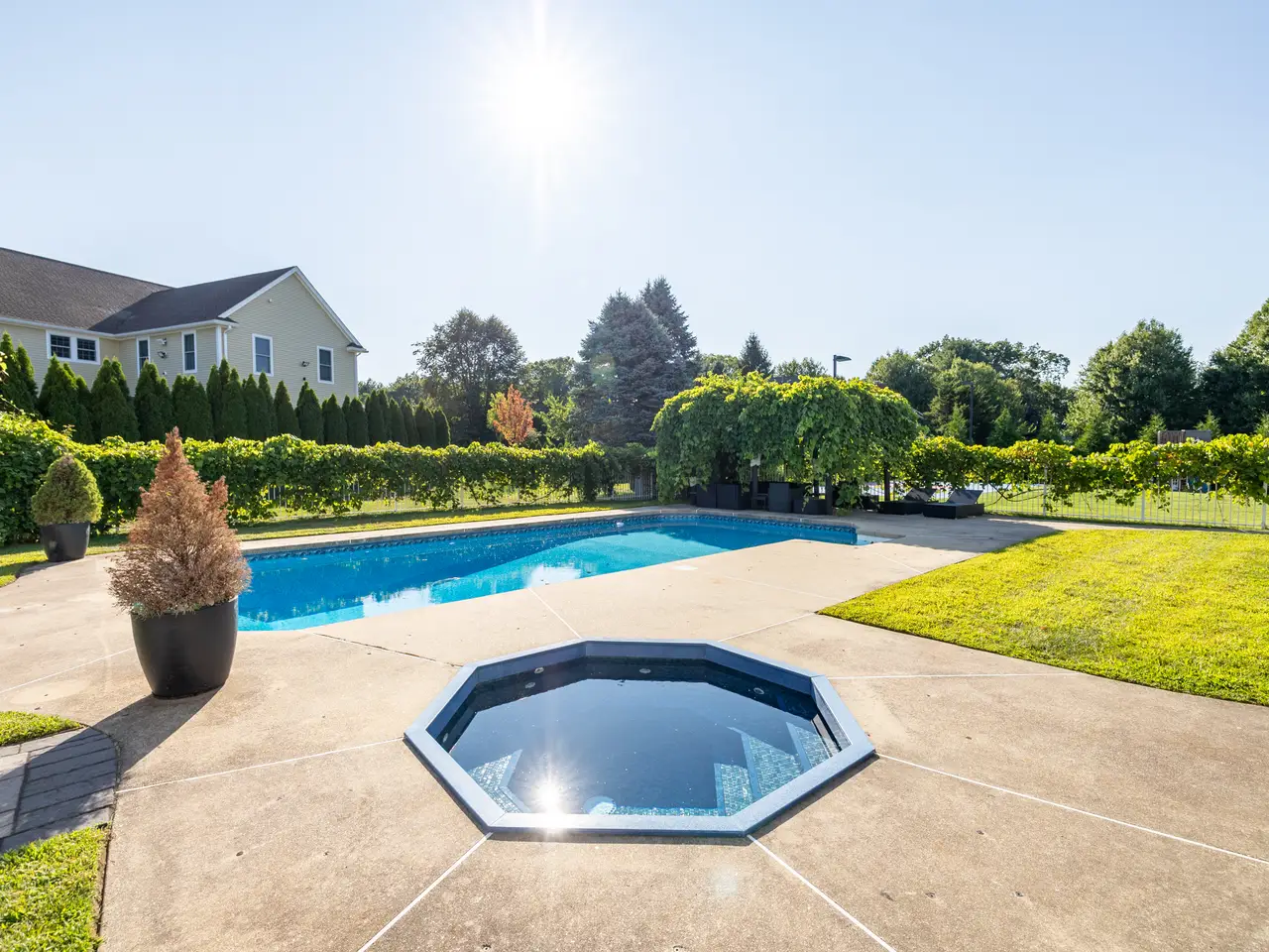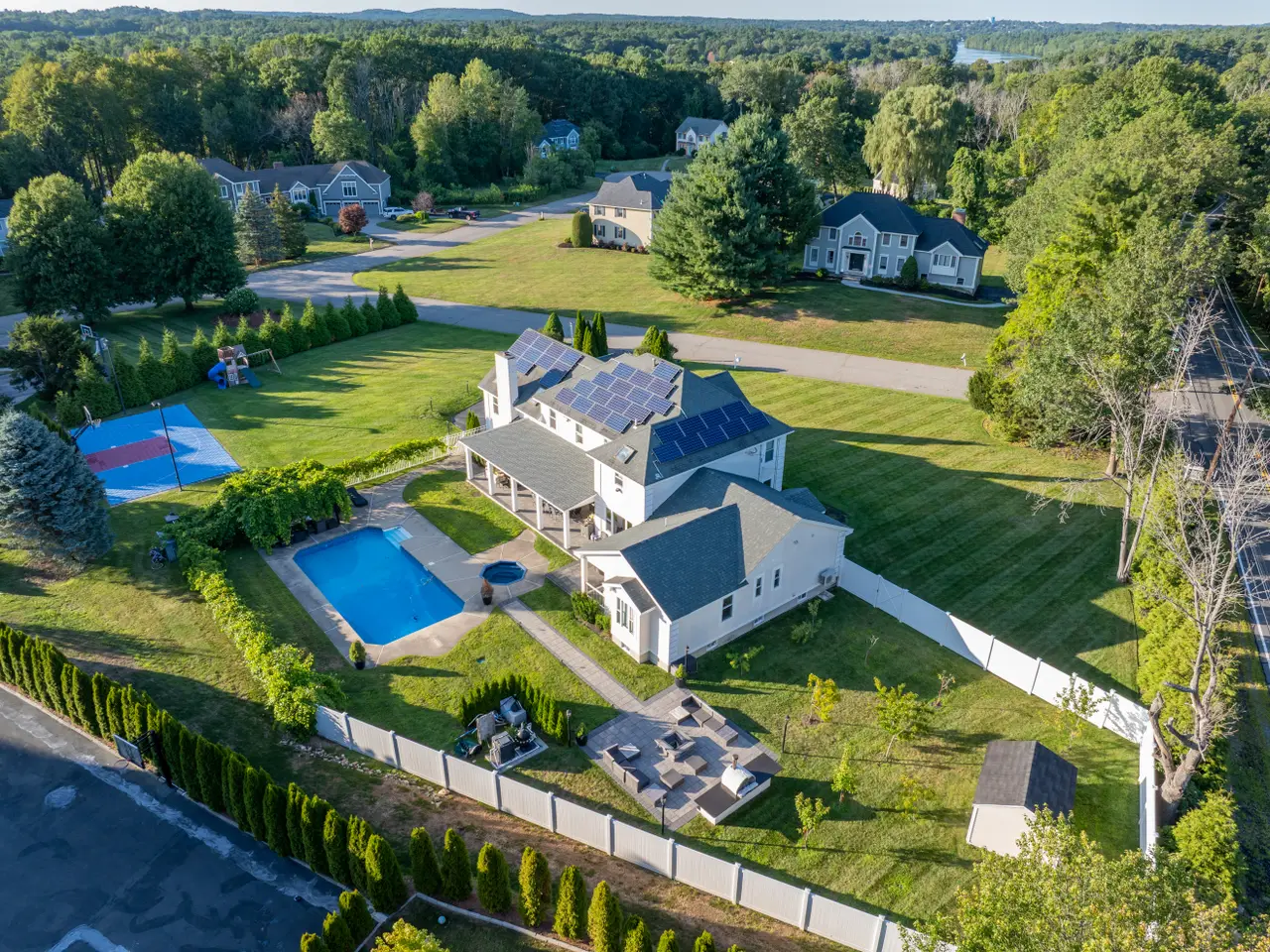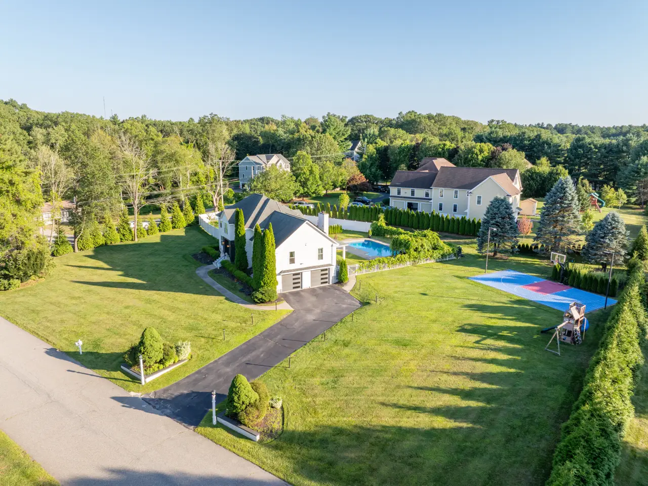 PERFECT FOR MULTI-GENERATIONAL LIVING – EXPERIENCE RESORT-STYLE LIVING IN THIS LUXURIOUS ANDOVER COLONIAL! Set on a beautifully landscaped acre, this six bedroom, 5.5 bath home blends elegance, comfort, and entertainment. A grand foyer opens to sunlit living and dining spaces with crown molding, wainscoting, and a cathedral-ceiling family room with fireplace. The gourmet kitchen features stainless steel appliances, an oversized island, and sliders to the backyard oasis. The serene primary suite offers a walk-in closet and spa-like bath with tiled shower. The finished lower level includes a game room, gym, bonus room, and a second kitchen with dining area, ideal for extended living or entertaining. Outdoors, enjoy an inground heated pool, hot tub, gazebo, outdoor grill, pizza oven, fenced yard, and a rare half basketball court perfect for active living. With a 2-car garage, abundant parking, central air, and professional landscaping, this home delivers true luxury.
