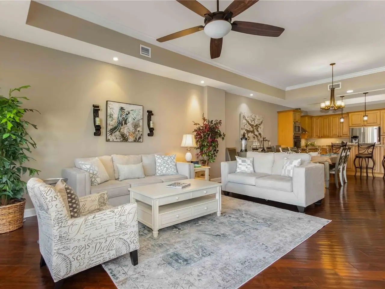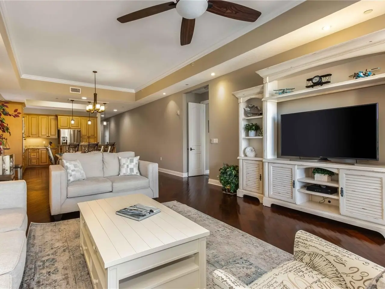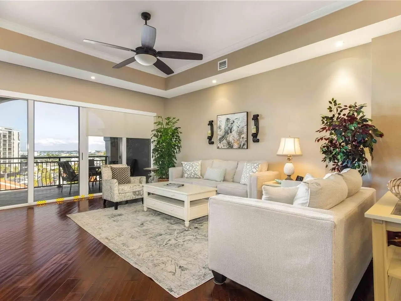 Welcome to an exceptional opportunity to own a penthouse-level, 12-foot ceiling luxury condominium at the prestigious Residences at Windward Passage. This stunning condo features beautiful hardwood floors, breathtaking water views from every window, and hurricane-rated sliders and windows complemented by plantation shutters and electric shades for effortless comfort and style. Full laundry room within unit as well. Offering three spacious bedrooms, each with its own en suite bathroom, plus a bonus media room and convenient half bath, this residence combines thoughtful design with elevated living. Enjoy secure entry, gated under-building parking with two assigned spaces, and a variety of resort-style amenities, including: Heated pool and community grills for outdoor entertaining. Private fishing dock. Expansive Club Room with a full kitchen, bar area, billiards table, and TVs. Immaculately maintained grounds with lush, updated landscaping. Located just minutes from world-famous Clearwater Beach, you’ll also have every island convenience right at your fingertips—walk just one block to Publix, the Clearwater Marine Aquarium, local marinas, UPS, sushi spots, and popular dining at Island Way Grill and Windward Grill. Experience the perfect blend of luxury, location, and lifestyle—own your slice of paradise today at 202 Windward Passage.