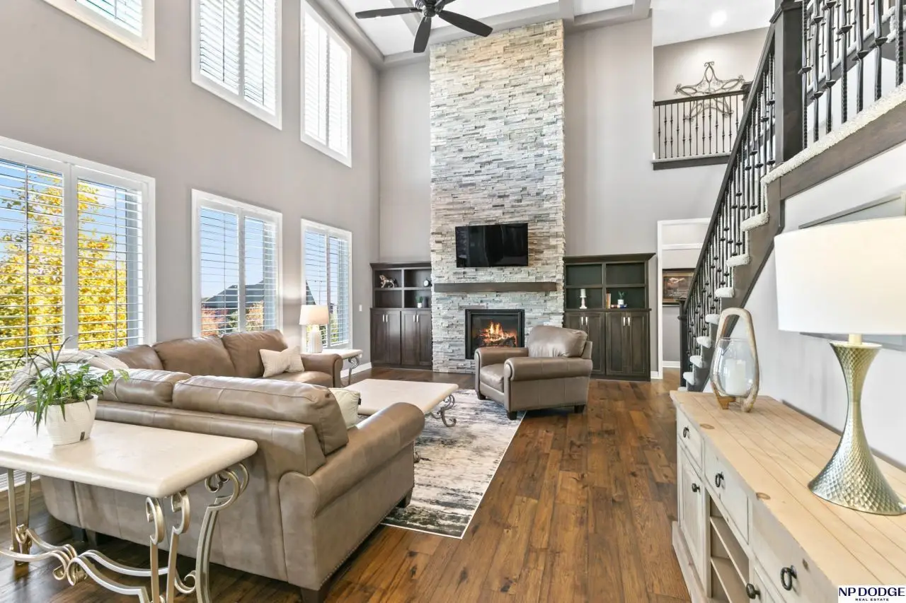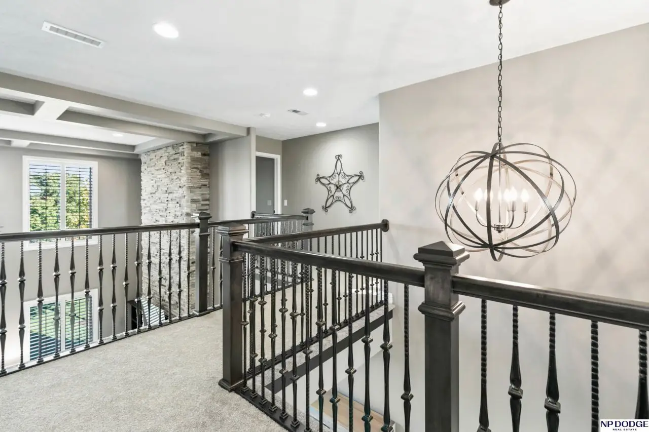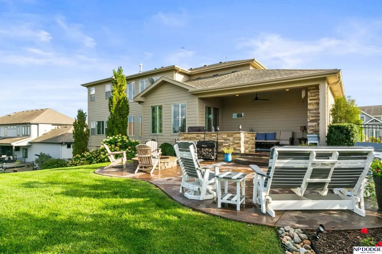 Ashbury Farm - Papillion's most prestigious neighborhood! Custom 1.5-story w/ 4 bd + office & exercise rm, 5 bath, 5,000+ SF. Main-floor primary suite w/ spa-like bath, built-in safe & custom cabinetry. Grand great rm w/ 20' coffered ceilings & stone fireplace. Gourmet kitchen w/ large island, wine fridge & walk-in pantry. Upstairs: 3 bd all w/ private baths & walk-in closets. Lower level made for entertaining - bar, pool/game rm or optional 5th bd, 3/4 bath & exercise rm. Outdoor living w/ covered patio, fireplace, custom firepit & landscaped fenced corner lot. Oversized 3-car garage. Unmatched value - better in person, a must-see!