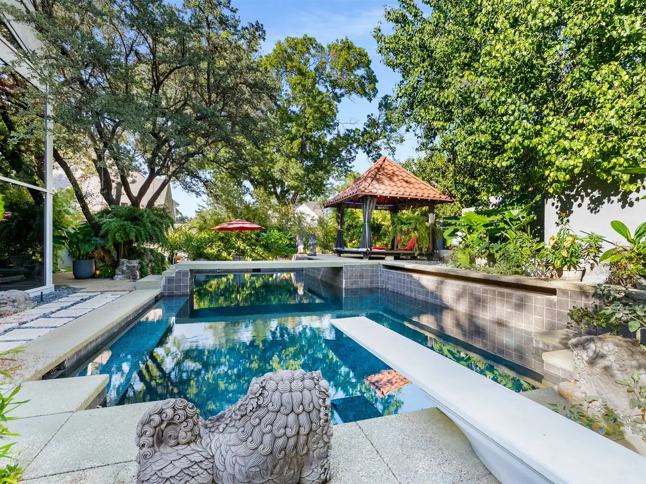 Step inside and experience light, volume and architectural drama. The main living area is defined by soaring 28-foot ceilings, floor-to-ceiling windows, and a stunning 30-foot barrel-vaulted skylight that floods the home with natural light. The spacious owner's suite offers a retreat of its own with a vaulted ceiling, skylight, fireplace with gas logs, and rich wood floors. Outdoors, the private backyard oasis features a sparkling pool, a glass greenhouse with an integrated spa, and plenty of room to relax or entertain. With all the bedrooms, bathrooms and living spaces needed for today's lifestyle, this home offers incredible potential. Priced to remodel and make it your own or start fresh and build new this .43-acre lot in the heart of the Private School Corridor presents a rare opportunity to create your dream home.