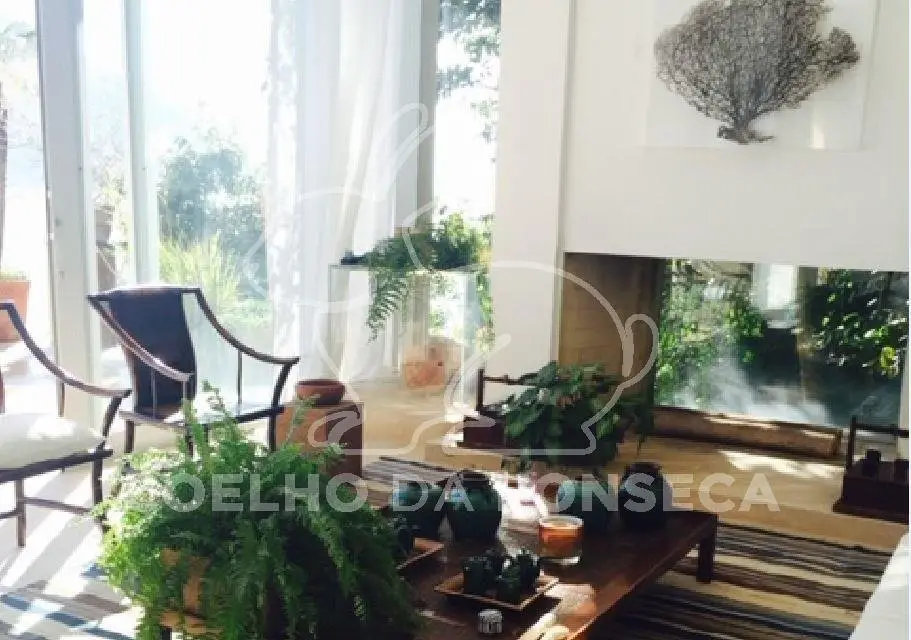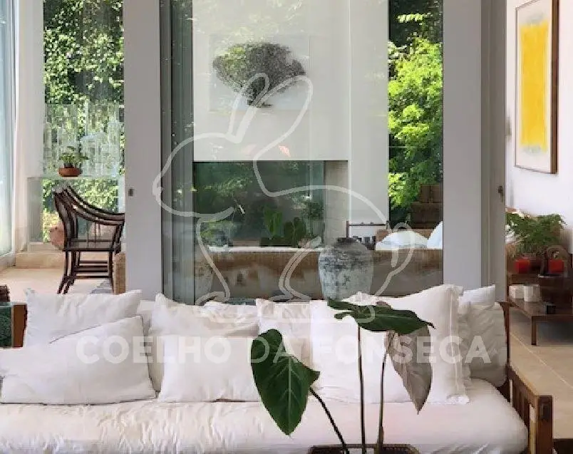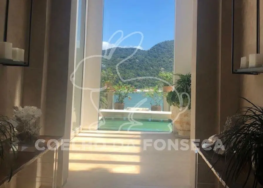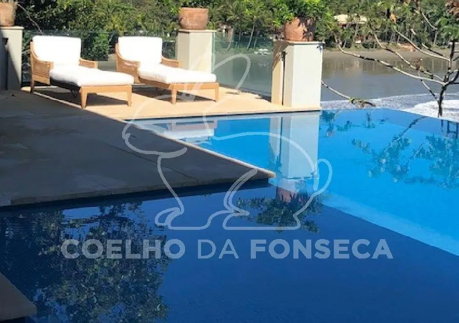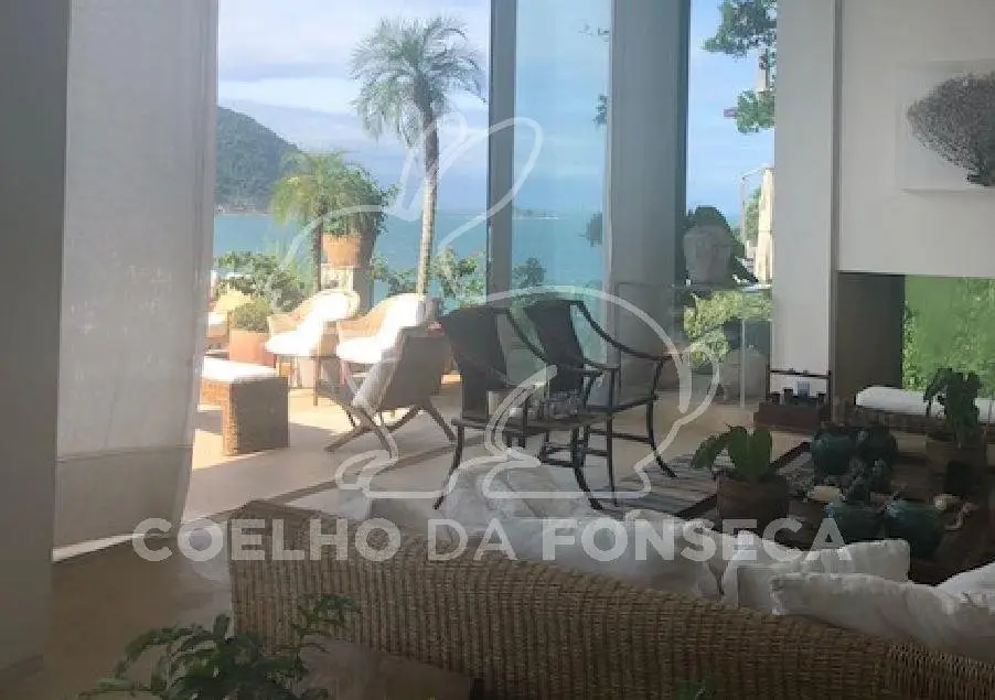 Iporanga Beach, Guarujá. The infinity pool, deck, spa and view of the sea and the surrounding natural vegetation give this house its individuality. There is a reflecting pool at the entrance, a living room open to the sea, a glass fireplace, a dining room and a cinema. Air conditioning in all rooms, elevator, generator, storage room, caretaker's house and rooms for extra employees. Complete condominium. House in the Iporanga neighborhood with 595m² of built area, 9 bedroom(s), 9 suite(s), 4 parking space(s), 10 bathroom(s), swimming pool, generator, sauna, furnished, air conditioning, employee's room, renovated, balcony, elevator, double height ceiling.