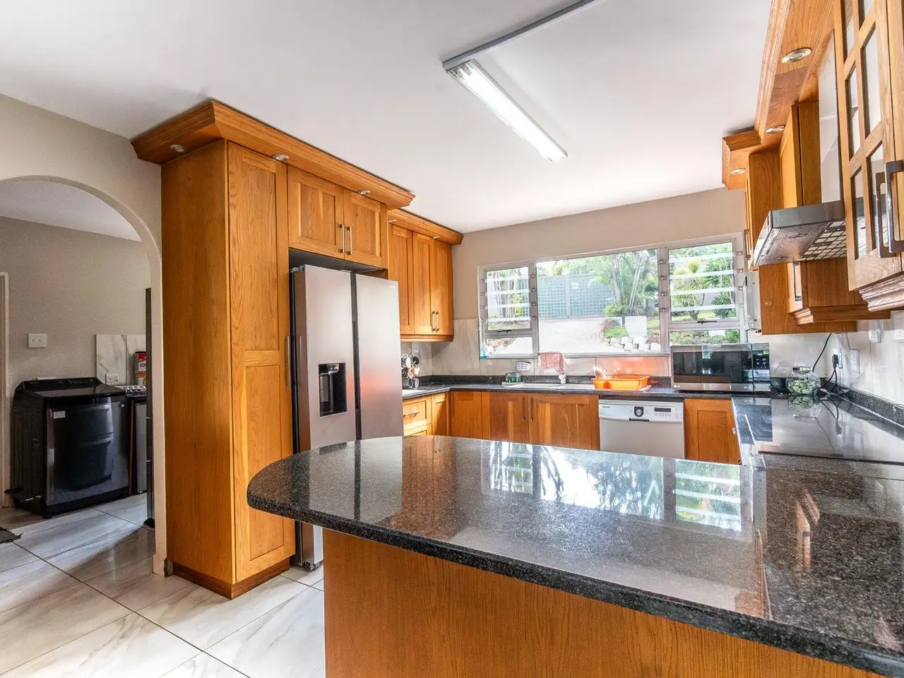 EXQUISITE 8 BEDROOM LUXURY HOME FOR SALE IN FOREST HILLS Nestled in the prestigious Forest Hills, is this modern architecturally designed home epitomizes luxury family living, offering ample space, stunning views and impeccable finishes. This property is newly renovated and has top class modern finishes. This elegant stunning home has a massive yard sized at 6478 sqm. As you enter inside this home, you are greeted by a double volume entrance hall. Key Features: Open Plan Living: The home features a seamless flow between open-plan kitchen, dining and living areas, luxury designed. The modern kitchen is complimented by a separate scullery for added convenience. Poolside Paradise: The living areas open onto a beautiful pool area, perfectly designed separately for adults and kids for outdoor relaxation and entertaining with breathtaking views as your backdrop. Spacious Bedrooms: This home boasts 8 generously sized bedrooms in total. 4 bedrooms in ground floor with two bathrooms and a guest toilet. The ground floor offers a main bedroom with an en-suite while the upper level features 4 luxury bedrooms, all have its own en-suite, own walk-in closet, air conditioners, all with private balconies with both spectacular sea views and scenic views. Family-Centric Upper Level: When climbing the stairs you are greeted by a very beautiful, luxurious chandelier welcoming you as you go up. The top floor also includes a spacious pyjama lounge, ideal for family bonding and relaxation. Double Garage and Additional Features: The double garage provides ample parking, covered carport for 4 cars, plenty of parking space for up to twenty cars, staff quarters with an en-suite, fully equipped laundry room and a tool shed. There is a very spacious 2 bedroom granny’s flat that overlooks the pool area. For anyone who can buy this property, it can be easily converted to a B&B, an Airbnb or only convert the granny’s cottage to be a consultation room if your work needs consultation with your clients or your patients. Security is top-notch, alarm system ensuring piece, remote gated and wheelchair friendly. This home is close to many amenities within its proximity including malls, school and many more. Don’t miss the opportunity to own this extraordinary home. Contact Phumi today to schedule a private viewing and take the first step towards making your dream a reality.