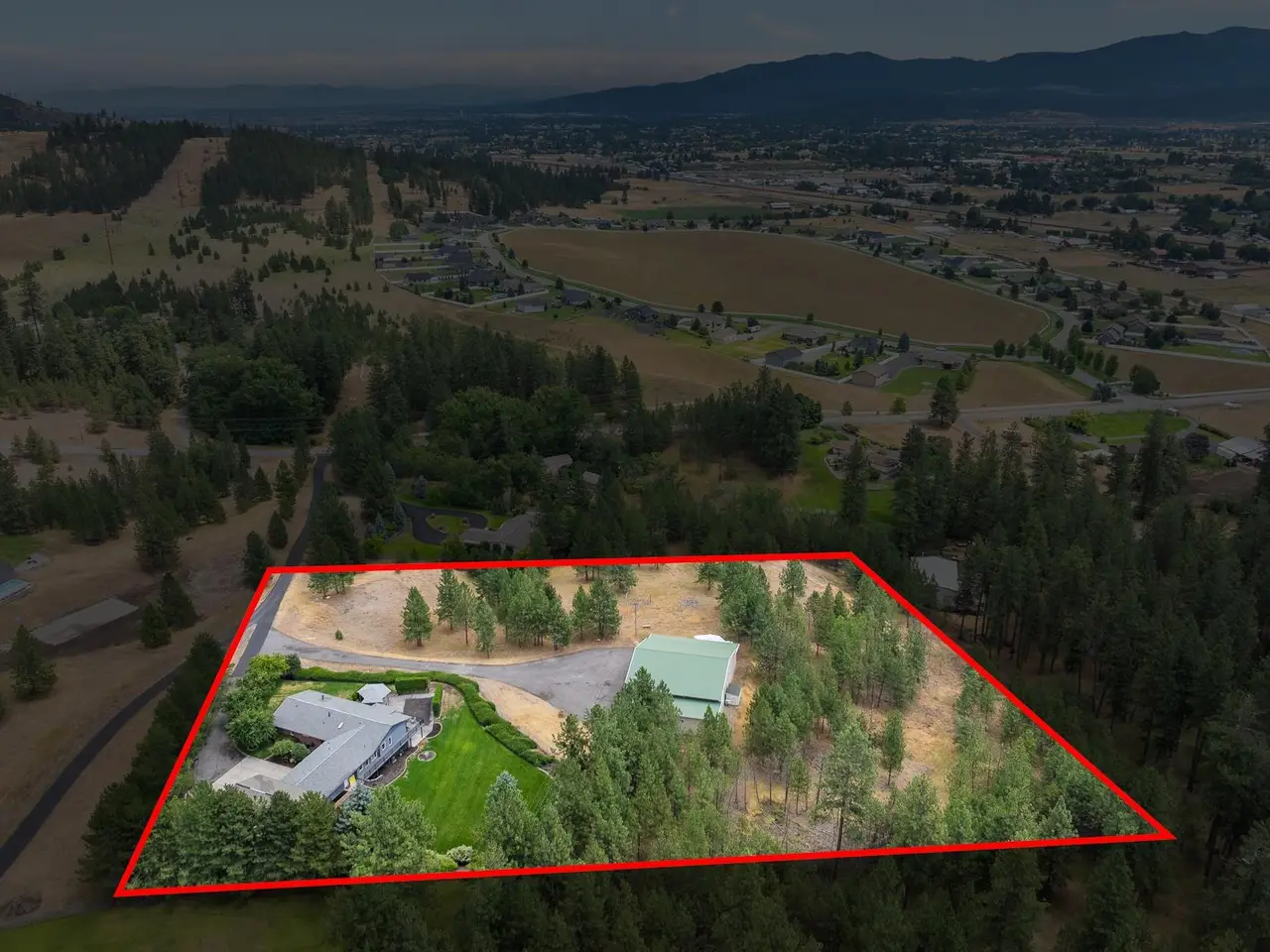 Enjoy peaceful living & breathtaking views in this beautifully maintained rancher set on 5 private acres with sweeping mountain and city vistas. Main level features an open layout with rich wood floors, large windows, & wraparound deck--perfect for entertaining or relaxing. Thoughtfully designed for everyday ease, home offers all essential living spaces on the main floor, incl. laundry hookups, a finished lower level that adds more room to spread out. Ideal for multi-generational living, guest quarters, or extended stays, the property features: A 60x90 shop with radiant-heated concrete floors, five 12' wide x 13' tall doors, floor drains, & back shed with air compressor--perfect for car enthusiasts. Incl. 2,000+ sq ft of finished living space with 2 bed/2 bath, laundry kitchen/dining/living area & rec room. Attached RV garage with 13' tall doors and a 1 bed/1 bath ADU complete with kitchen and living room. Mins. from town, this one-of-a-kind property offers the perfect blend of space, comfort & convenience.