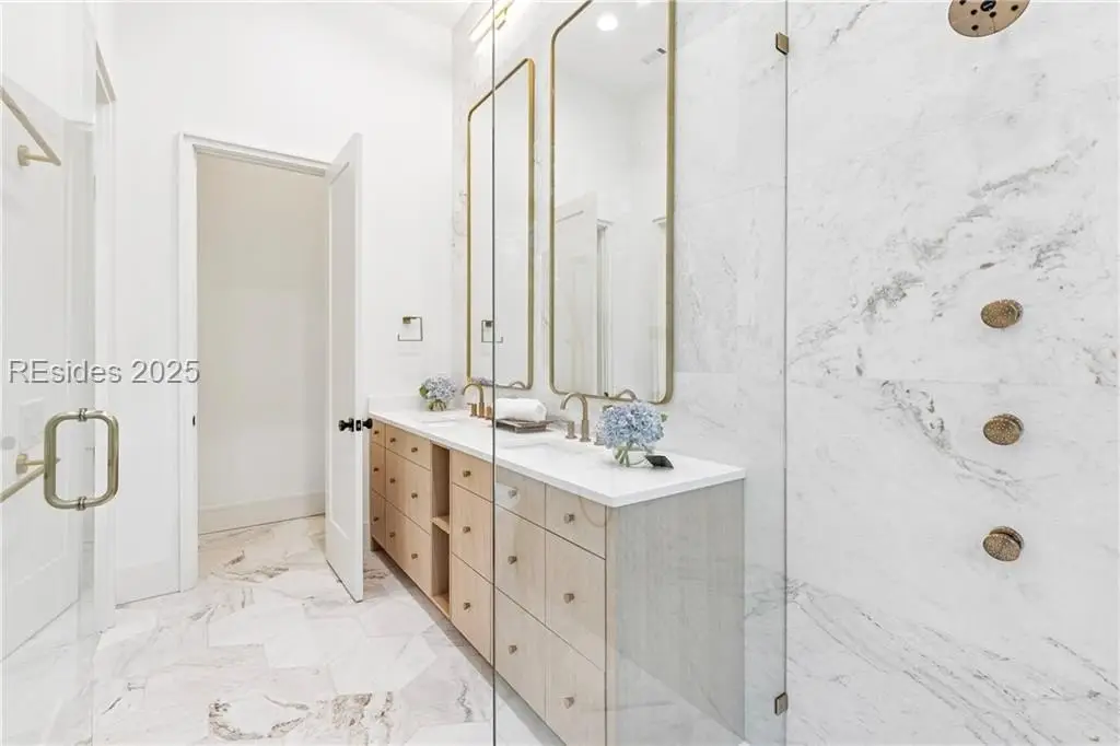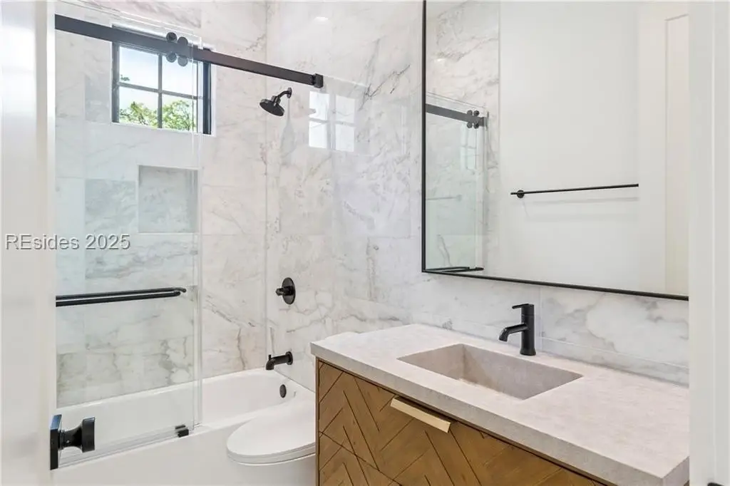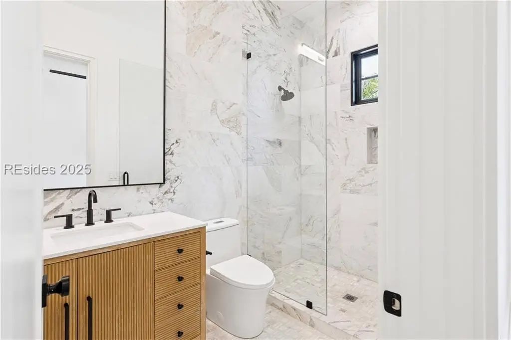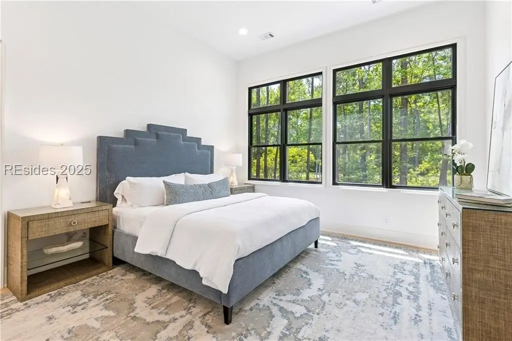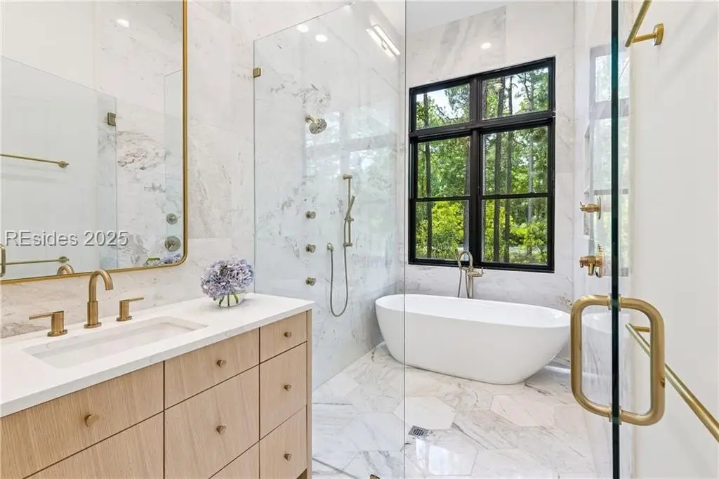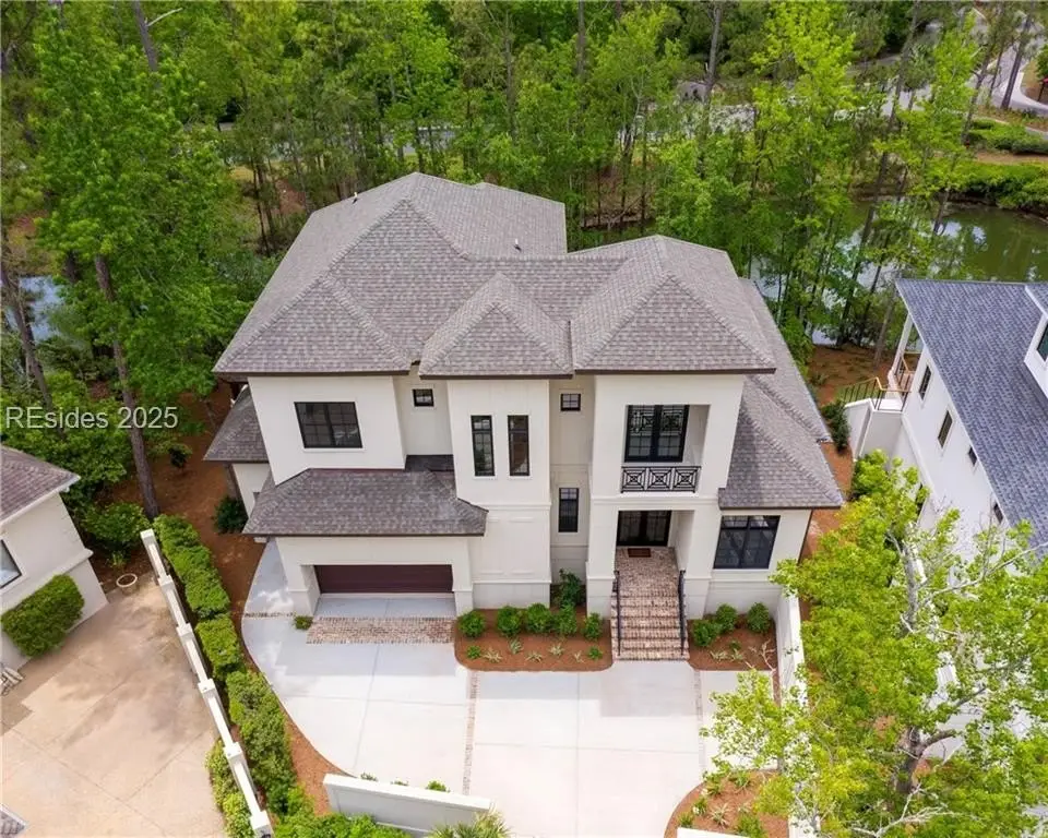 Exceptional Lowcountry living in this NEW CONSTRUCTION courtyard home, thoughtfully crafted with luxury finishes and refined details. The main level features an open kitchen, family and dining area, a serene primary suite, office, laundry, powder room and a covered porch with a fireplace. Upstairs , 4 bedrooms—2 ensuites and 2 sharing a bath—plus a versatile bonus room ideal for a theater, gym or playroom. Bathrooms feature floor-to-ceiling tilework. An oversized 2-car garage with a golf cart bay and extra-high ceilings offers space for a lift or extra storage. Elegant, modern living in one of Hilton Head’s most prestigious gated communities.