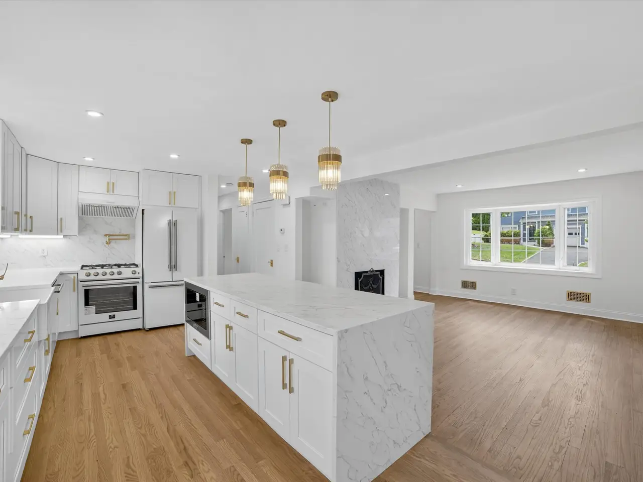 Welcome home to Luxurious Leewood Living! Custom renovated like NEW home & you won't want to leave. This prestigious corner cape colonial invites you into an open concept sun drenched living room with bay window, accented with a floor to ceiling marble fireplace - open kitchen floorplan with marble waterfall center island. The influenced gold trim kitchen has imported Italian appliances - FORNO. Instant stove top hot water. Farm sink with gold kitchen faucet. Kitchen gold cabinetry hardware and gold accent light fixtures. Enjoy a Bonus home office with separate entrance/ baseboard heating and separate wall AC system. The 1st floor modern Primary Bedroom Suite offers a spa like bathroom with dual sinks, deluxe marble walk-in shower & spacious custom walk-in closet. Hall half bath. The upper level has 2 additional bedrooms and a Full Hall bath w/ bathtub & closet and additional linen hallway closet. The lower level (additional 544 sq ft ) offers endless ideas for your finished storage space: home gym / family room, etc with half bath, separate laundry room & separate utility room. Home offers deluxe recessed lighting & hardwood floors. Enjoy a private romantic dinner for 2 or family BBQ's on your backyard private patio. This community neighborhood home is a 7 min walk to the Crestwood Metro North train station and nearby village has restaurants such as Rio Bravo, Crestwood Pizza & Stephens Green or quick bites at Martines Cafe or Bagel Loft and Eastchester's newest park is located in Leewood Park just built in spring of 2025 located on Leewood Drive where your family can enjoy 6 tennis courts, 4 pickleball courts, 2 basketball courts, 3 bocce courts, children's playground, t - ball field & designated workout area. Also available is residents' membership at Lake Isle Country Club which offers 5 age-appropriate pools, Golf- Golf Pro-shop, Tennis & Pickleball courts, snack bar & onsite Gigante's / Mulino's Restaurant for all to enjoy. This is a commuter's dream - prestigious walkability neighborhood. Note: total house sq ft = 2060 sq ft (refer to Floor plan )