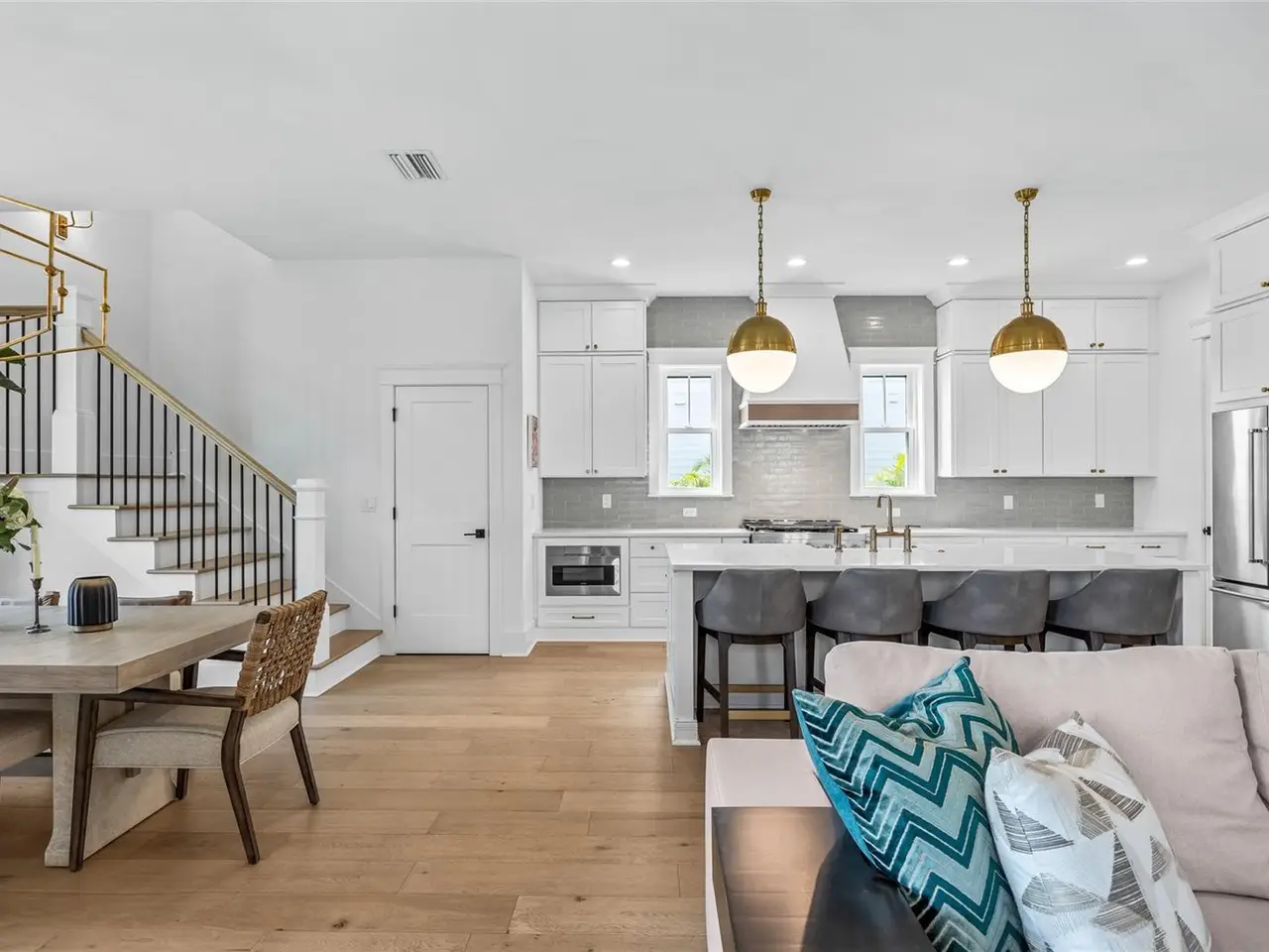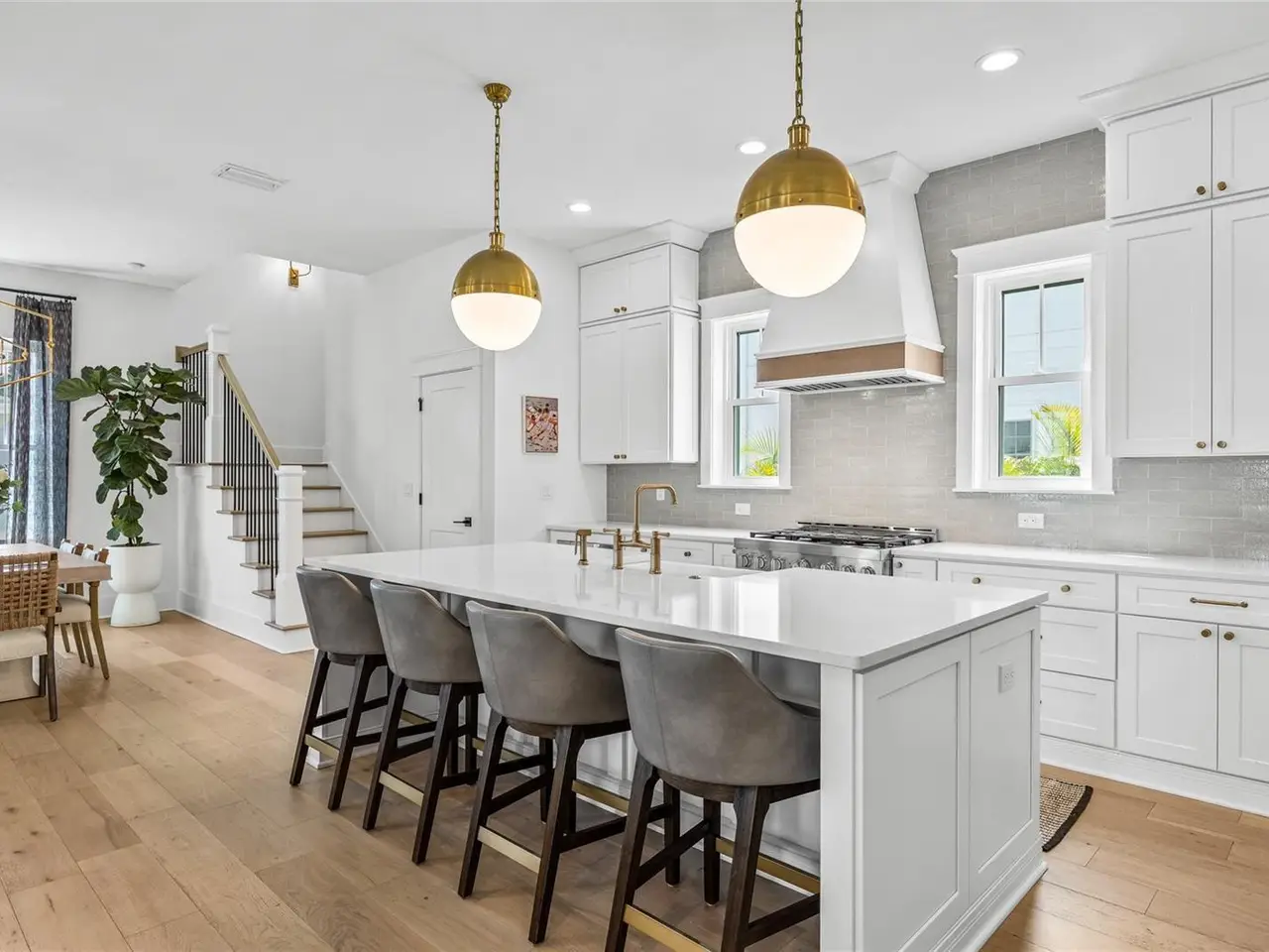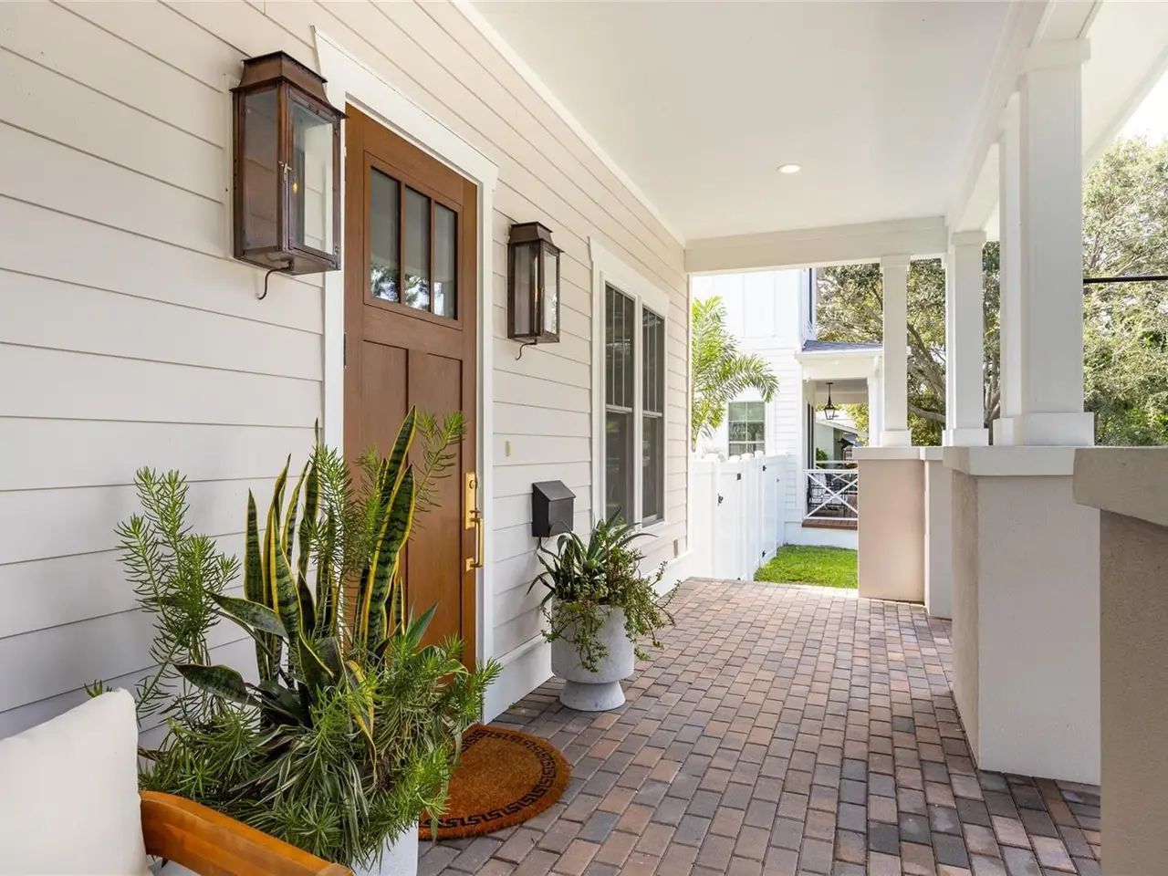 Why wait for new construction when this professionally designed 2023 Canopy Builders home is move-in ready today? Nestled in the sought-after Magnolia Heights neighborhood, this Four Square model sits on a premium 6,200 SF lot high and dry in Flood Zone X. Built by one of St. Petersburg's most acclaimed builders, no detail has been overlooked in this 4-bedroom + office + loft, 3-bathroom residence with a detached 2-car garage with an electric charger. From the moment you arrive, the timeless curb appeal shines with Hardie Board plank siding, impact-rated windows and doors, gas lanterns on the welcoming front porch, and a pavered walkway framed by canopy oaks. Inside, 10" ceilings on the main level, 8" solid interior doors, and a designer finish package set a sophisticated tone. The open-concept floor plan flows effortlessly from the living area to the chef's kitchen - complete with a spacious island, quartz countertops, top-stack cabinetry, and a KitchenAid appliance suite featuring a 36" natural gas range. Perfect for entertaining, the home also features front and rear porches and a backyard large enough for your dream pool and outdoor retreat. Upstairs, you'll find a versatile loft, a laundry room with custom cabinetry, quartz counters, and a sink, along with abundant storage. The primary suite is a true sanctuary with a spa-like bathroom offering a freestanding soaking tub, dual vanities, a glass walk-in shower, and a spacious walk-in custom closet. Everyday convenience meets style with impact windows, 9" ceilings upstairs, and thoughtful touches like custom lighting and built-in storage. Location is everything, and this quiet, tree-lined street puts you minutes from Downtown St. Pete, Crescent Lake, coffee shops, restaurants, and the beaches. Move-in ready, expertly designed, and built to the highest standards - this is the Magnolia Heights home you've been waiting for.