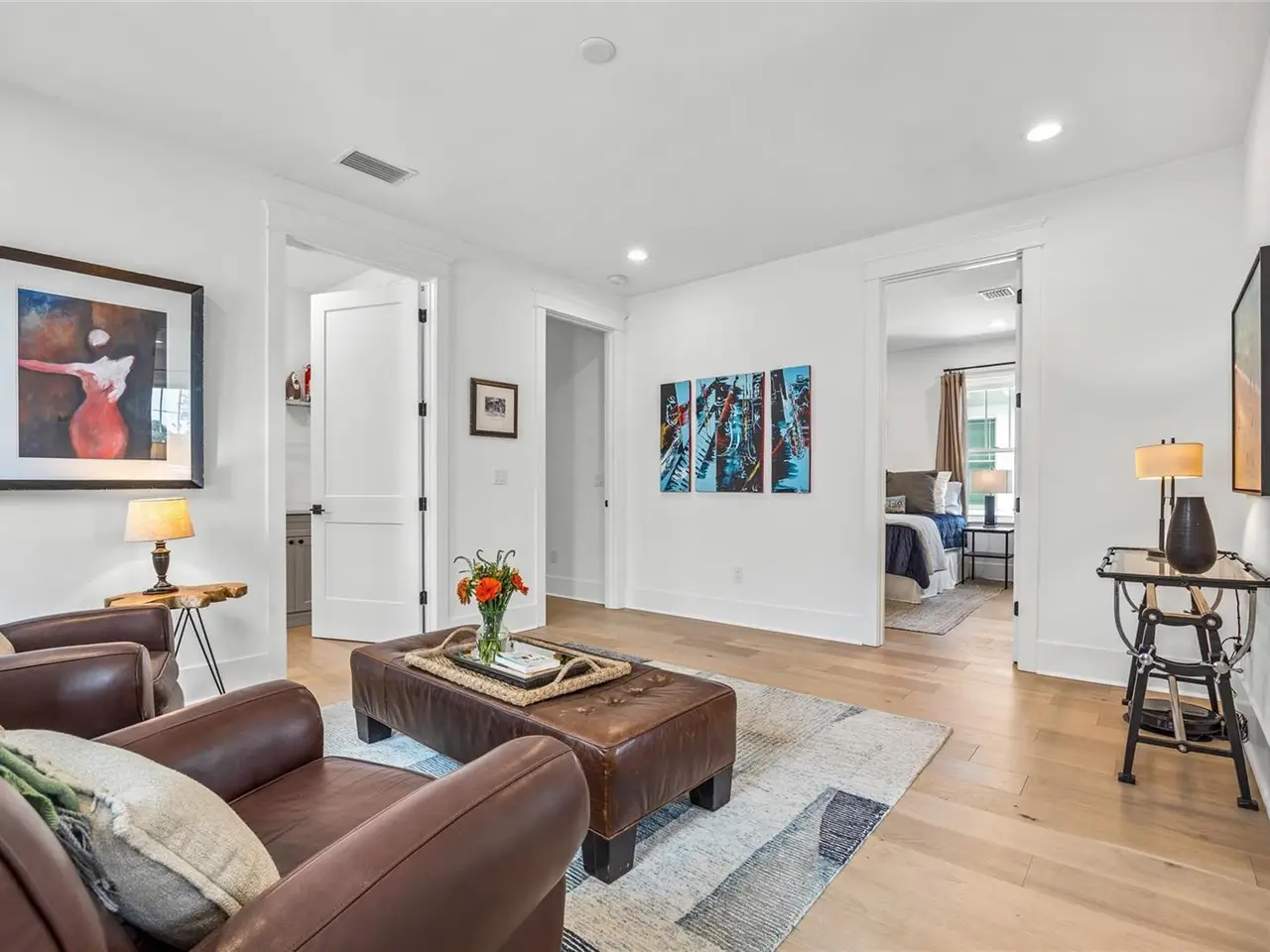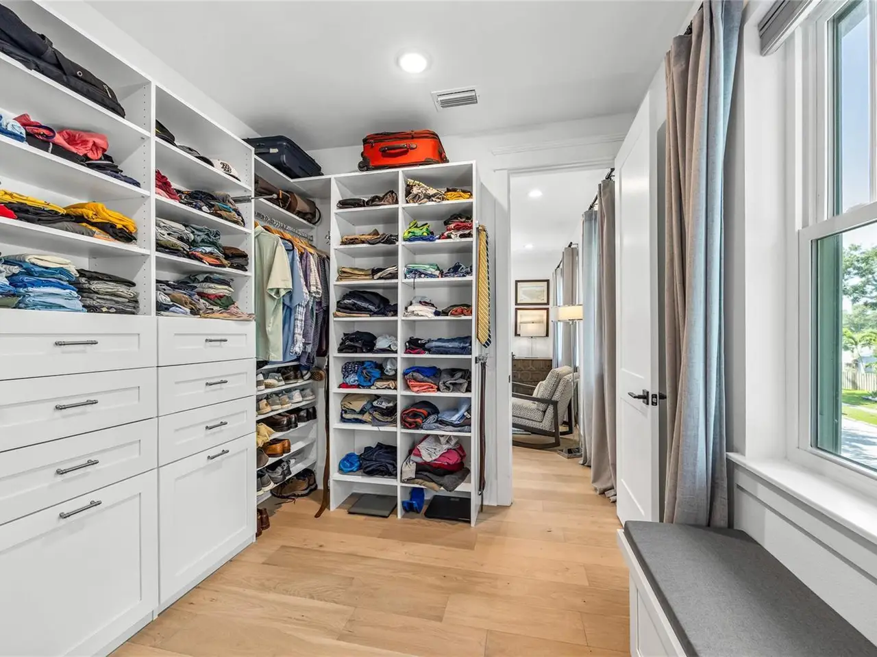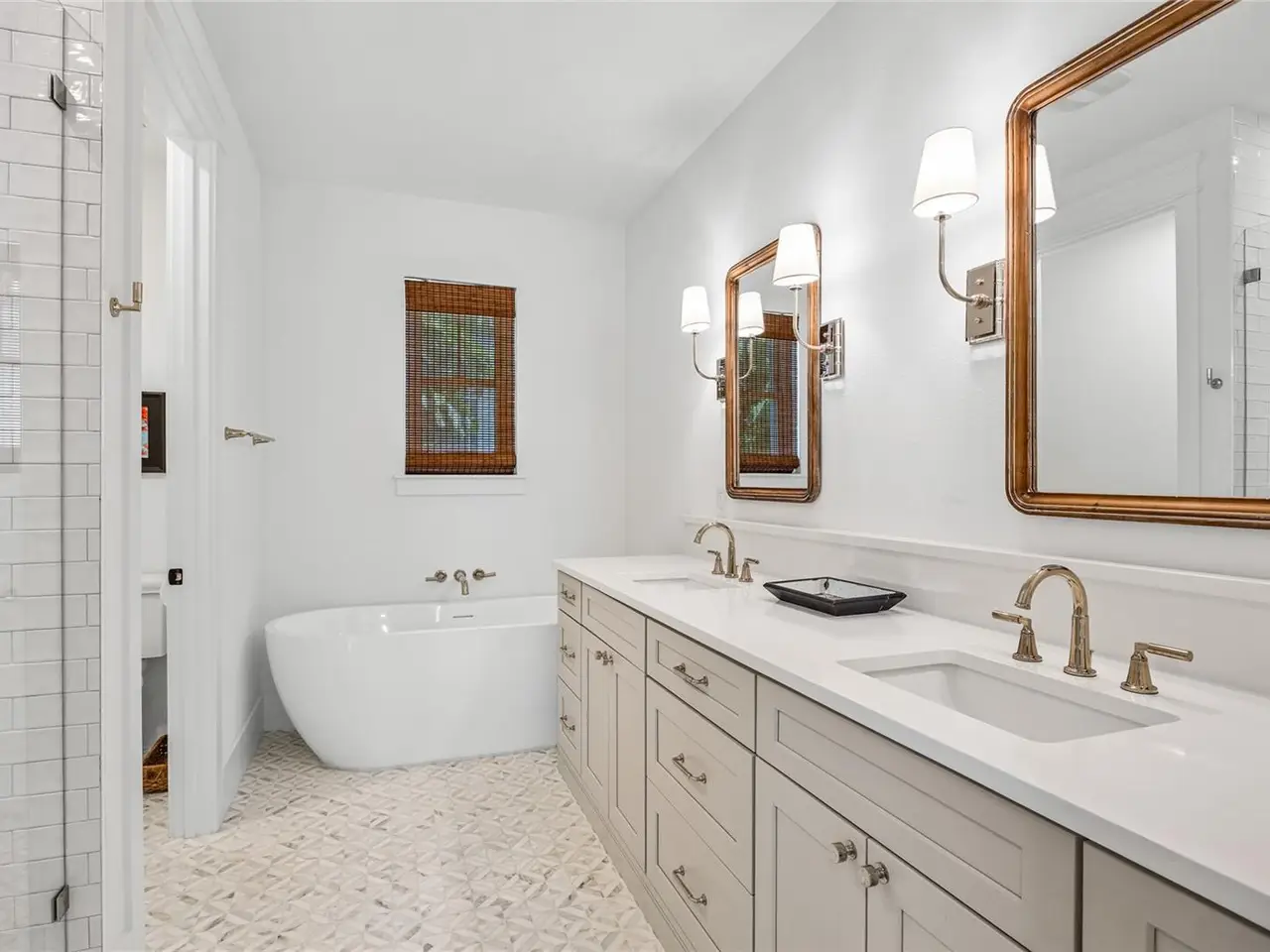 Why wait for new construction when this professionally designed 2023 Canopy Builders home is move-in ready today? Nestled in the sought-after Magnolia Heights neighborhood, this Four Square model sits on a premium 6,200 SF lot high and dry in Flood Zone X. Built by one of St. Petersburg's most acclaimed builders, no detail has been overlooked in this 4-bedroom + office + loft, 3-bathroom residence with a detached 2-car garage with an electric charger. From the moment you arrive, the timeless curb appeal shines with Hardie Board plank siding, impact-rated windows and doors, gas lanterns on the welcoming front porch, and a pavered walkway framed by canopy oaks. Inside, 10" ceilings on the main level, 8" solid interior doors, and a designer finish package set a sophisticated tone. The open-concept floor plan flows effortlessly from the living area to the chef's kitchen - complete with a spacious island, quartz countertops, top-stack cabinetry, and a KitchenAid appliance suite featuring a 36" natural gas range. Perfect for entertaining, the home also features front and rear porches and a backyard large enough for your dream pool and outdoor retreat. Upstairs, you'll find a versatile loft, a laundry room with custom cabinetry, quartz counters, and a sink, along with abundant storage. The primary suite is a true sanctuary with a spa-like bathroom offering a freestanding soaking tub, dual vanities, a glass walk-in shower, and a spacious walk-in custom closet. Everyday convenience meets style with impact windows, 9" ceilings upstairs, and thoughtful touches like custom lighting and built-in storage. Location is everything, and this quiet, tree-lined street puts you minutes from Downtown St. Pete, Crescent Lake, coffee shops, restaurants, and the beaches. Move-in ready, expertly designed, and built to the highest standards - this is the Magnolia Heights home you've been waiting for.