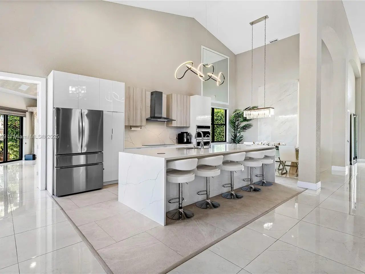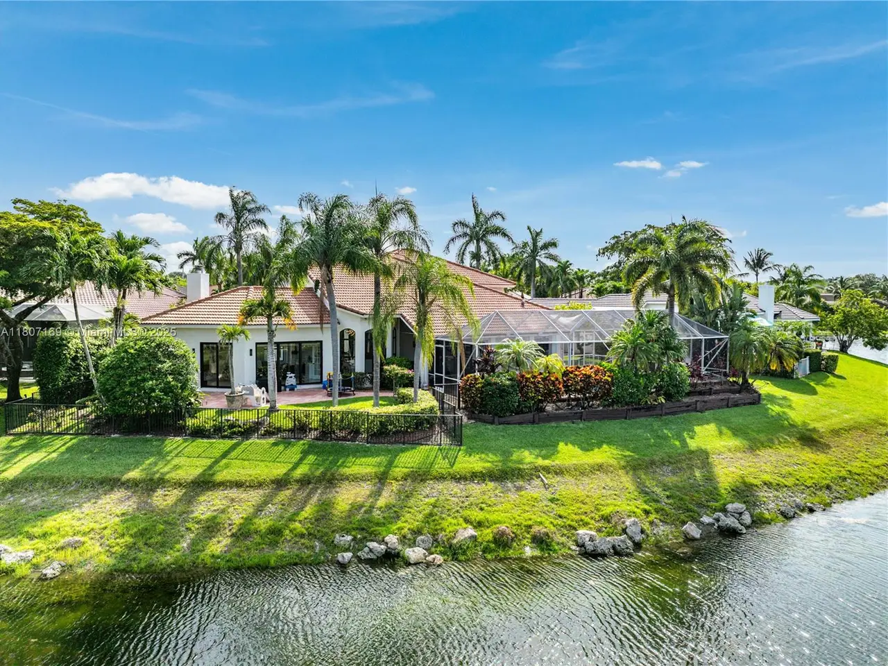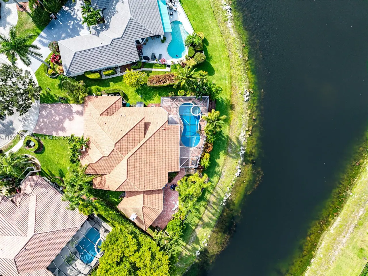 Redefined luxury waterfront residence. Perfectly positioned on a quiet cul-de-sac, it boasts 180 feet of serene water frontage and breathtaking panoramic views.Dramatic, open-concept, features soaring ceilings, striking glass staircase, updated marble floors. The gourmet chef's kitchen is a dream, seamlessly flowing into expansive living and dining spaces—ideal for effortless entertaining.Unwind in the lavish first-floor primary suite. The versatile loft can easily be a 5th bedroom, while the impressive media/rec room offers endless possibilities for fun and relaxation.Outdoors, enjoy both screened and open patios, a sparkling heated salt pool and spa, and lush, meticulously landscaped grounds. Full impact windows and a whole-house generator ensure complete security and comfort.