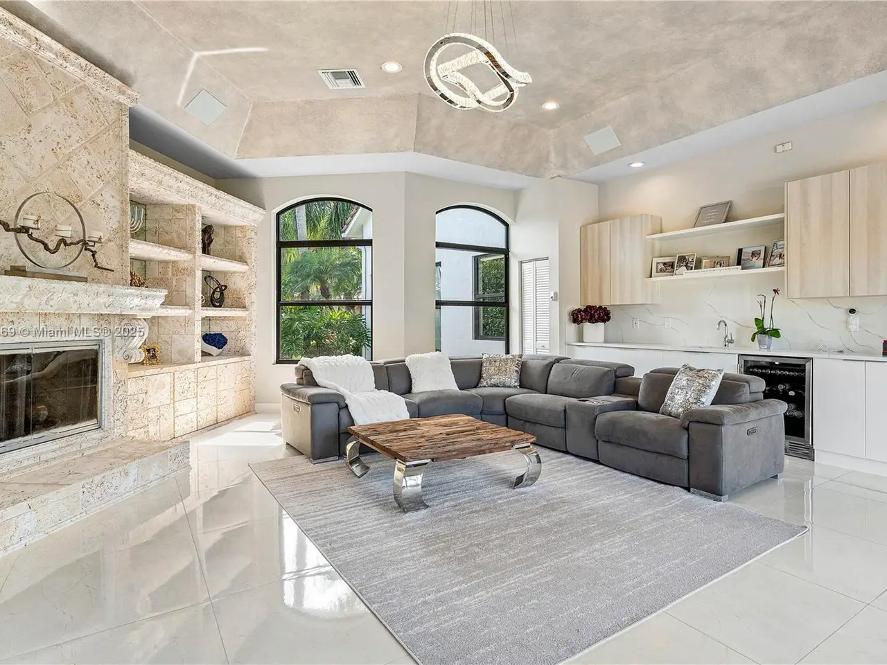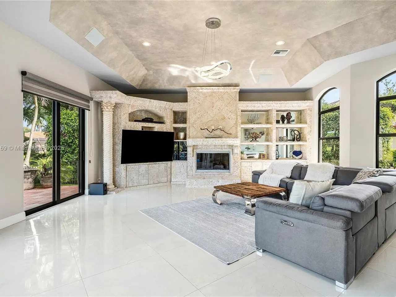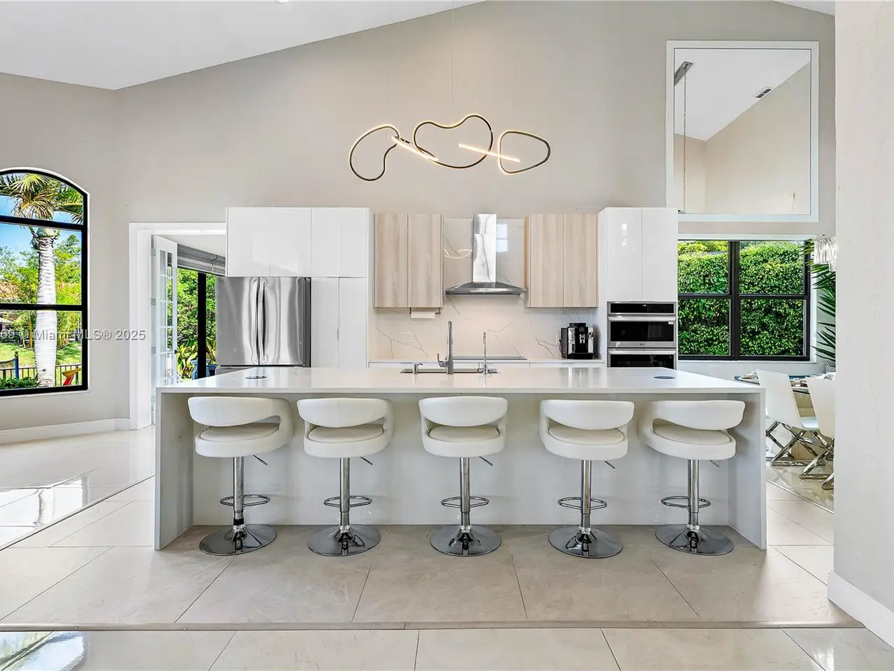 Redefined luxury waterfront residence. Perfectly positioned on a quiet cul-de-sac, it boasts 180 feet of serene water frontage and breathtaking panoramic views.Dramatic, open-concept, features soaring ceilings, striking glass staircase, updated marble floors. The gourmet chef's kitchen is a dream, seamlessly flowing into expansive living and dining spaces—ideal for effortless entertaining.Unwind in the lavish first-floor primary suite. The versatile loft can easily be a 5th bedroom, while the impressive media/rec room offers endless possibilities for fun and relaxation.Outdoors, enjoy both screened and open patios, a sparkling heated salt pool and spa, and lush, meticulously landscaped grounds. Full impact windows and a whole-house generator ensure complete security and comfort.