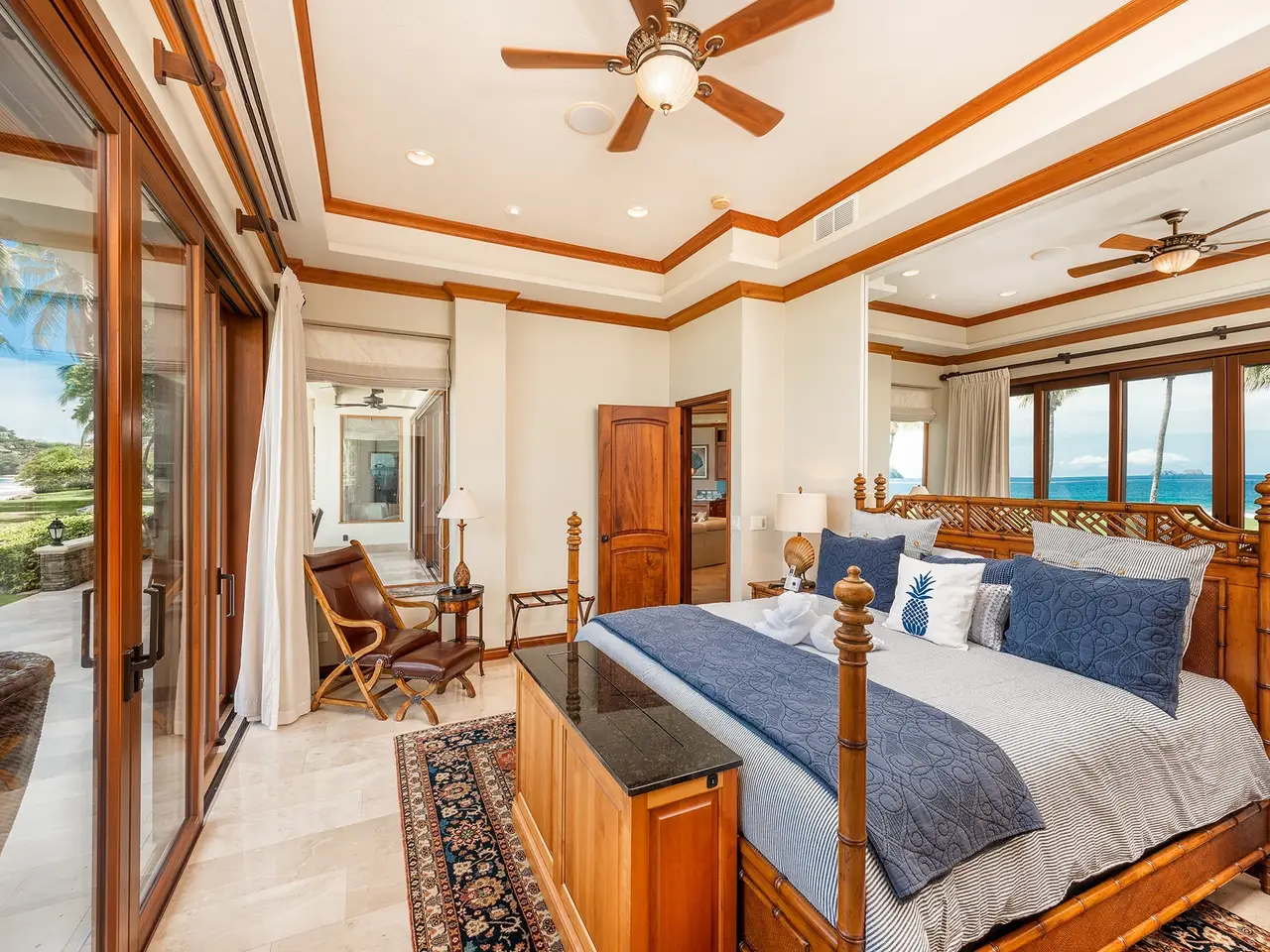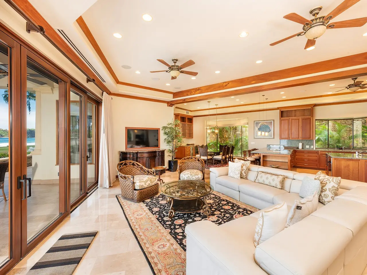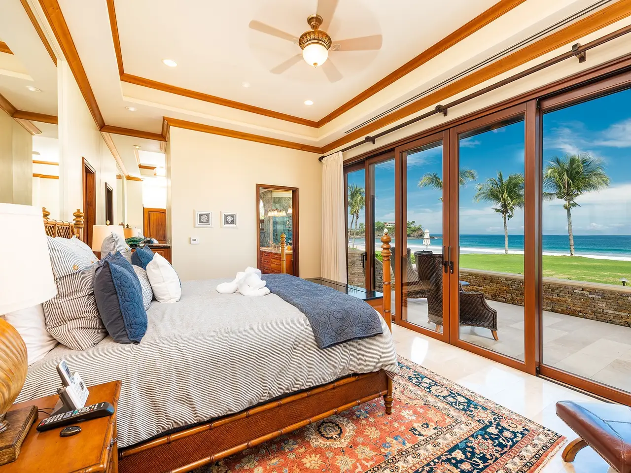 Experience luxury living at Palms #33, an exquisite, titled beachfront property in the heart of Flamingo, Guanacaste, Costa Rica. This stunning condo is part of The Palms, a prestigious development featuring 34 exclusive condos on pristine white sands. As you enter Palms #33, you'll be greeted by elegant travertine floors, high ceilings, and an incredible wide-open view of Flamingo Beach. Spanning 2,831 square feet, this luxurious condo offers 3 bedrooms and 3.5 bathrooms, ensuring ample space for comfort and relaxation. The kitchen is a chef's dream, featuring a spacious design, Sub-Zero and Viking appliances, green granite countertops, and ample space to entertain friends and family. Adjacent to the dining area is a beautiful bar with onyx stone that lights up. The area is surrounded by an atrium with a lush jungle and garden on one side and a breathtaking ocean view on the other. You and your guests are going to be in awe of this gorgeous setting! Palms #33 comes fully-furnished with exquisite high-end furniture. It is turn-key and ready for you! This condo would make a great permanent residence or it could continue as a vacation rental. There are two large oceanfront master suites that overlook the Catalina Islands. The suites boast king beds that face the ocean with roll-up TVs at the end of the beds for added luxury. Each has a massive spa-like ensuite bathroom covered in granite stone with make up counters, two sinks, showers, and oversized bathtubs. There is also a third guest bedroom that is equally as beautiful with a king bed and ensuite bathroom with a shower. All along the front of the condo, including off the 2 master suites and the living area, are patio doors that completely open up, allowing you to enjoy the seamless transition between indoor and outdoor living. The patio offers a perfect space for gatherings and lounging, surrounded by gorgeous palm trees and the Pacific ocean. Being a ground floor corner unit, Palms #33 offers a spacious outdoor area and easy access to the beach. Across a soft grassy front yard, you are steps away from the pristine white sand and warm tropical waters! The Palms is a gated community offering 24-hour security with parking, a large community BBQ area, a gym with an ocean view, 2 swimming pools, luxury lounge chairs, onsite massage therapists, and use of standup paddle boards, sea kayaks, and snorkeling equipment. The infinity beachfront swimming pool and an adult pool share a bar, providing the perfect setting for enjoying a cocktail while watching the beautiful sunset over the Pacific Ocean. The community is within walking distance of local restaurants and the new Flamingo Marina. It is minutes away from groceries, medical, a casino, an equestrian center, schools, and many other restaurants. Playa Flamingo is known as the Beverly Hills of Costa Rica, offering luxurious homes and condos on the beach and in the nearby hills. The sand is soft and the bay is perfect for playing in the waves. With less than 5% of Costa Rica's coastline titled, Palms #33 presents a rare opportunity to own a titled white sand beachfront property. Don't miss the chance to make Palms #33 your luxurious beachfront retreat! Reach out to us today to secure a private viewing.