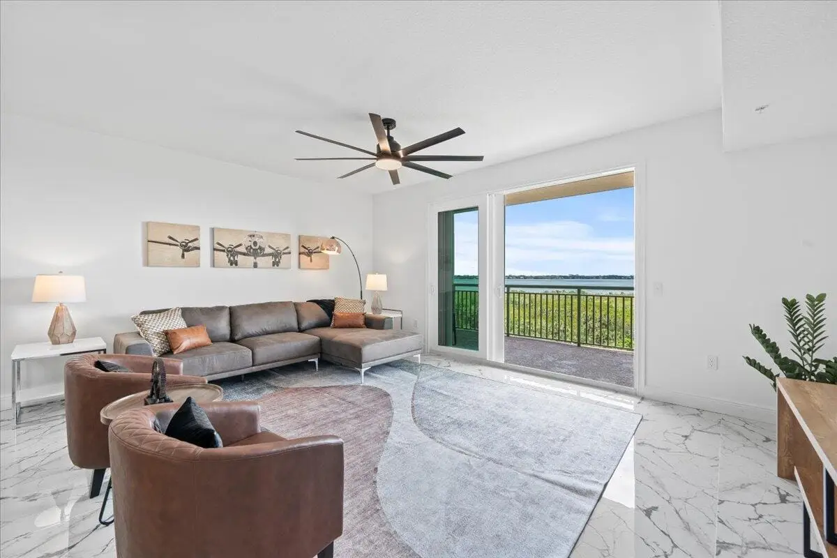 Introducing a one-of-a-kind living experience tailored for those who cherish the skies and the serenity of water. River Fly-In offers a fusion of luxury living and aviation convenience, with state-of-the-art amenities poised to elevate your lifestyle. With aviation enthusiasts in mind, you'll have seamless access to the Merritt Island airport. Embrace the tranquility of waterfront living with breathtaking views. Whether you seek peaceful mornings by the water's edge or thrilling water activities, this lifestyle caters to your every desire. Step into luxurious interiors crafted with meticulous attention to detail. From sleek contemporary designs to premium finishes, each residence offers a sophisticated retreat that perfectly complements its natural surroundings. Whether you're unwinding by the poolside, staying active in the fitness center, or socializing in the clubhouse, The River Fly-In provides an array of recreational options for everyone. The price of each unit includes a designated parking place in the parking garage. Open parking is available in the front parking lot. Additional parking spaces are available in the parking garage for an additional fee. Each unit is slightly different. Some units have white kitchen cabinets, grey, cherry wood, or black. Countertops and floors are also unique to each unit but all flooring is tile. Please call to preview the four different floorplans and interiors. Unit HOA's vary slightly according to floor plan. HOA's basically cover everything except the electric bill. If there is a power outage, a large generator maintains operations of the door to the parking garage, elevators and lights. Short term rentals are allowed, three day minimum, with certain restrictions, including participating in designated short term rental management company. Otherwise seven months is the minimum for rentals. Hangars are currently under construction and are available for purchase for additional cost. There will only be 20 boat slips in the marina. Those are also available for additional purchase. A waterfront restaurant will be built down near the marina. The elevated walkways that are in place will lead to the marina. Buyers agent must accompany prospective buyer to first showing. You can register you buyer with us for additional showings and do not need to accompany.