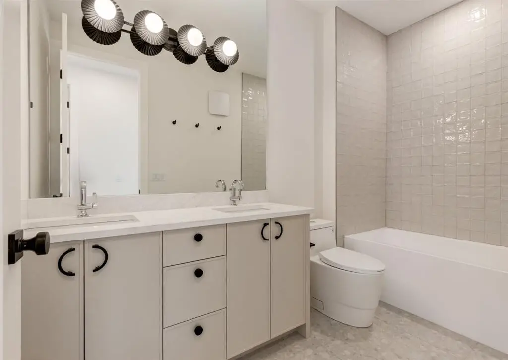 Spectacular custom built home situated on a WIDE 30+ foot lot in the heart of Winston Heights with over 3750 SF of living space. This stunning new build combines thoughtful design, high-end finishes, and a sun-filled south-facing backyard. The open-concept main floor showcases engineered hardwood, a chef-inspired kitchen with curved island and hood fan, striking quartz countertops, designer tile backsplash, 30” commercial gas range plus an additional wall oven with built-in microwave, 65” of refrigeration, a walk-in pantry, and custom locally made cabinetry with undercabinet and toe-kick lighting. The full-width family room is anchored by an inviting gas fireplace, and large windows frame views of the backyard. Upstairs you’ll find three bedrooms—each with a walk-in closet—plus a bright bonus room, convenient laundry with sink, and hardwood throughout. The primary suite is designed for relaxation, featuring a spa-inspired ensuite with heated floors, freestanding tub, oversized shower with bench, large format tiles, and dual vanities. The fully finished basement offers a spacious rec room with wet bar, guest bedroom with walk-in closet, dedicated gym, guest bath, and is roughed-in for hydronic floor heating. The oversized ATTACHED double garage impresses with 14’1” ceilings, insulation (ceiling is spray foamed), drywall, gas heater, and aggregate concrete driveway. Enjoy Calgary’s sunny days in the landscaped backyard featuring lush grass, and a full-width Dura Deck with glass railings. Move-in ready and backed by new home warranty, this home blends luxury, functionality, and peace of mind — walk to The Winston Golf Club, Lina’s Italian Market, Co-op, local school, and so much more. Floor plans and a 3D tour are readily available, providing a glimpse into this stylish home!