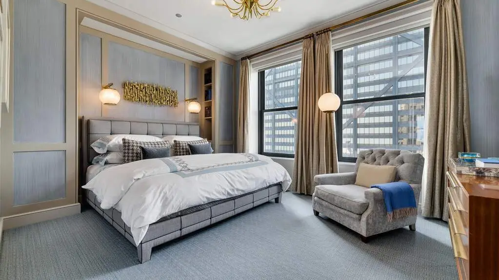 Full-floor Art Deco masterpiece pays homage to the 1929 built Palmolive Building with no details overlooked. This full floor renovation by Liederbach & Graham Architects, designed by Steven Gambrel includes private elevator foyer, (3) bedrooms, sitting room plus library with adjacent office. Caretti Terrazzo floor in main foyer. French Oak-Parquet de Versailles flooring throughout main living areas. Salon features opal glass fireplace mantel. Stunning millwork including shelving and glass cabinets for artwork and books throughout. The kitchen showcases an Officine Gullo Range complimented by Sub-Zero and Miele appliances with expansive eat in dining table and bench overlooking Lake Michigan and Oak Street Beach. Primary bathroom on point with Calacatta and Belgium black marbles. Home features (3) fireplaces including one in red leather wrapped library. Primary walk-in closet featured in Architectural Digest boasts natural light via window seats, bleached walnut custom cabinetry with leather-topped, double-sided chest of drawers. Home features electronic blinds throughout. There are (4) garage spots included with (2) more available.
