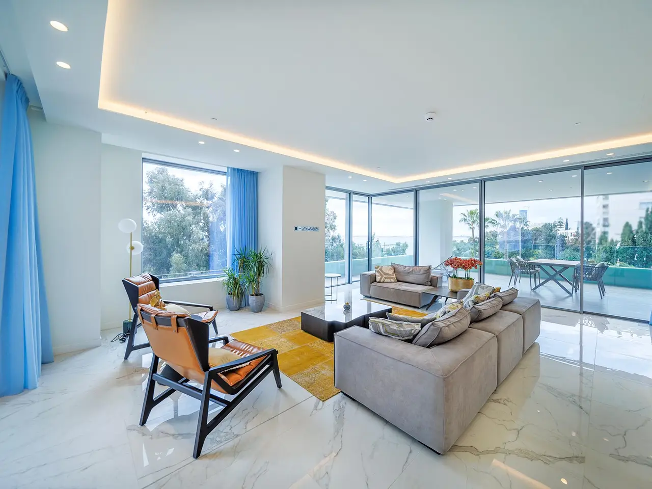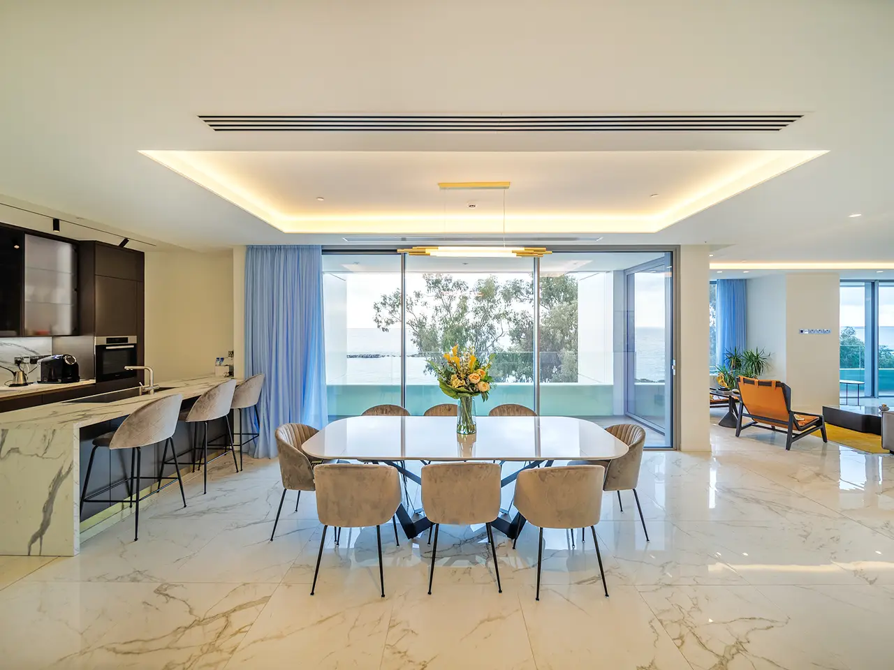 A luxury residential complex is located on the first coastline of Limassol, Cyprus’s important recreational and business location, Symbol offers its future residents designer apartments with views of the Mediterranean Sea and the picturesque coastline of one of the most dynamic resorts on the island. The Residence is comprised of 12 floors and 26 spacious apartment and Residents can enjoy numerous facilities including personal access to a private fitness center, as well as a SPA center, swimming pool, jacuzzi, a lounge zone, a large park and many more. The apartment, occupying an entire floor, provides stunning, uninterrupted sea views and a serene atmosphere with the gentle whisper of waves, a fresh sea breeze, and the essence of the nearby eucalyptus grove.