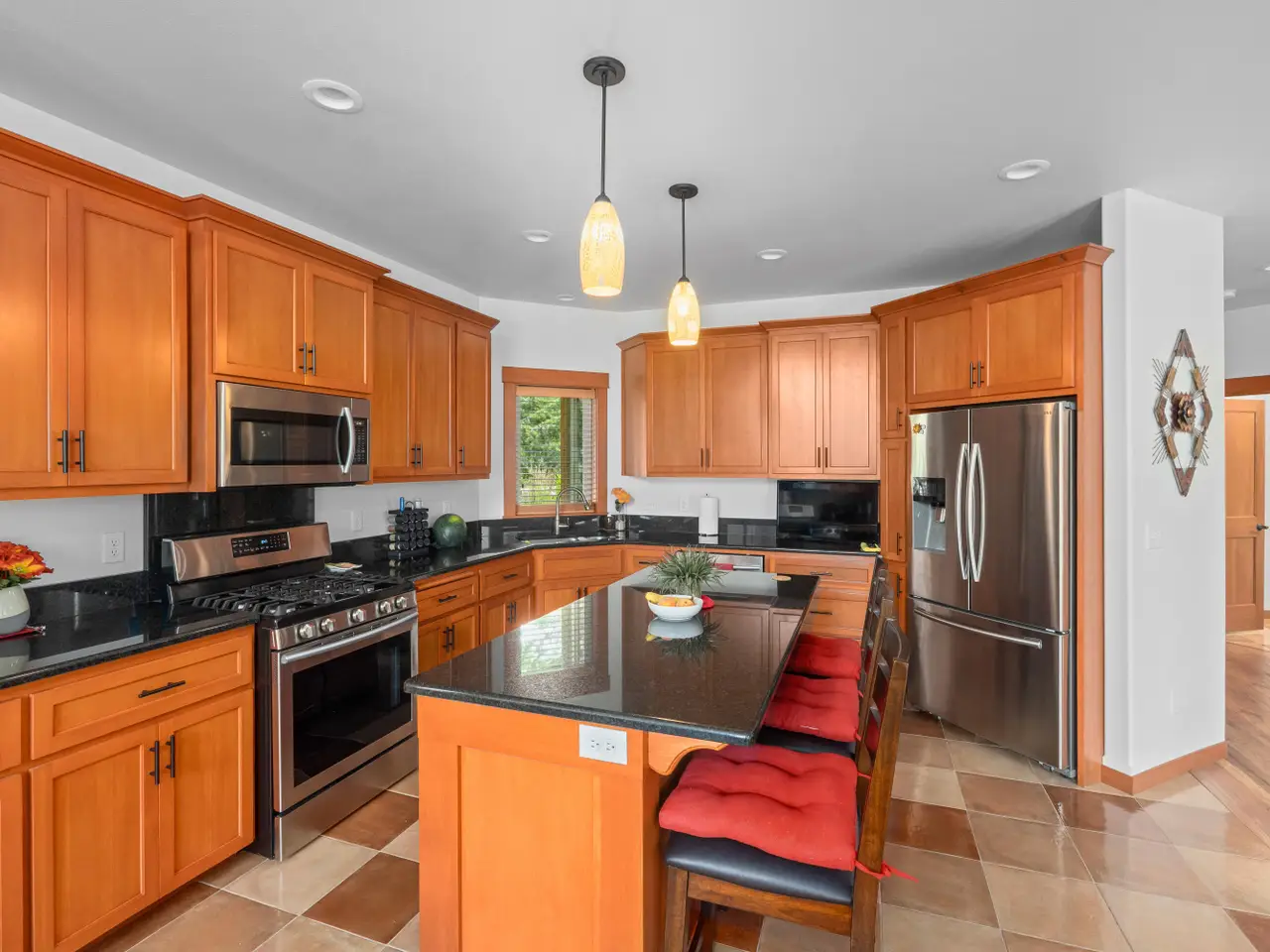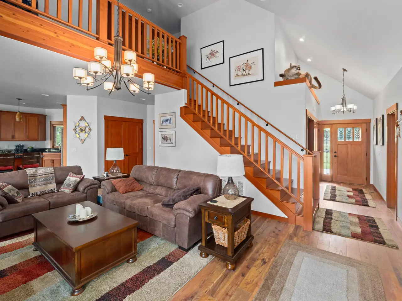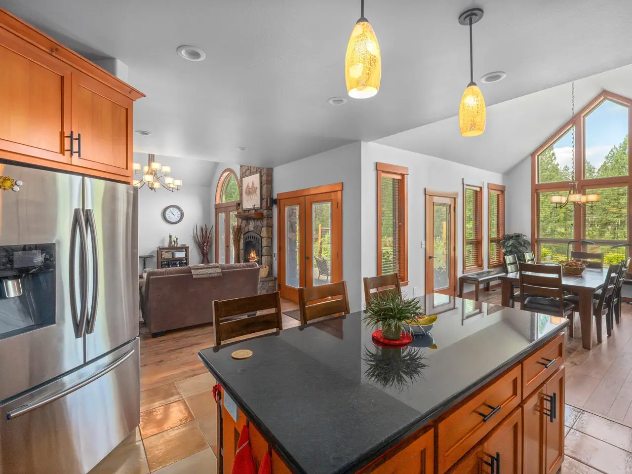Enjoy golf course living in this gorgeous custom home without the day-to-day buzz of being directly on the course! This 3 bed/2.5 bath premium constructed home sits on an oversized beautifully manicured lot overlooking the #7 and #16th holes. It also features a second detached garage/workshop, a small orchard with a variety of fruit trees, a 100 amp natural gas backup generator, premium exterior of stone or composite shingle, custom two inch slat window blinds, Spanish floor tile directly from Spain, composite wood flooring with rubber backing, custom chandeliers, and much much more! You can also enjoy the surrounding ammenities ranging from the 27 hole golf course, pickleball/tennis courts, 410 acres of trails, airport, 49 Degrees North ski hill, and Mistequa casino to name a few!!