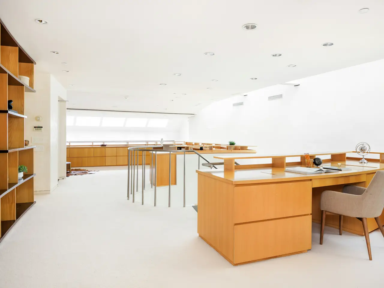 With 29 feet of frontage, including a curb cut, this fabulous 9,000 square foot home features double height ceilings, six outdoor spaces, a private covered parking spot, and an elevator that services the basement to roof deck. Step in off of charming Downing Street to an "open air" garage, that could be used as a garage, a front garden or party space too, with storage. Beyond the garage is the ground floor duplex that could be a perfect guest apartment, art studio, or company headquarters OR it can be combined with the rest of the house into one magnificent single family home. (If part of a single family home the ground floor would make an amazing kitchen/great room open to the back garden.) Features of this lower duplex include three bedrooms and three bathrooms and ceiling heights of over 16 feet in the main space with light streaming in from skylights. This dramatic great room has plenty of space for both a living and dining area, as well as direct access to the tranquil garden. Also on this floor is the large chef's kitchen, as well as a bonus room that has an en-suite bathroom and washer/dryer. The mezzanine level features three oversized bedrooms and two bathrooms. Currently, the main part of the townhouse begins on the second floor, which provides almost unlimited entertainment space with an 80 foot long great room with two terraces and a powder room. The adjacent, open kitchen boasts a 4 burner Garland stove with griddle, 48" Miele refrigerator/freezer, two sinks, two dishwashers, and a Gaggenau hot plate. Up a stunning, curved architectural staircase is the 3rd floor, which currently has two bedrooms, two bathrooms and a large office/den area with three built-in desks and tons of storage that is open to the great room below. Both bedrooms have en-suite bathrooms, built-in desks and the larger bedroom has access to a private terrace. The fourth floor is dedicated to the primary suite and boasts a wrap-around terrace with tall mature plantings and a wooden fence for privacy . The primary bedroom features custom built-ins and opens up to a nearly 30 foot long outdoor space with a pergola and plenty of seating space. The custom primary bath has a double vanity, deep soaking tub, separate shower, and water closet with a bidet. There is also a cedar walk-in closet and a sitting room/lounge with a fireplace, wet bar and additional storage that also has access to the terrace. The gorgeous roof deck, accessible from the elevator , boasts fantastic open skyline views, including the Empire State Building and Hudson Yards. The deck includes multiple seating areas, a pergola, and mature landscaping including birch trees. This unique home also includes a basement with additional storage and laundry. The house is currently configured as two condominium units, and is delivered vacant.