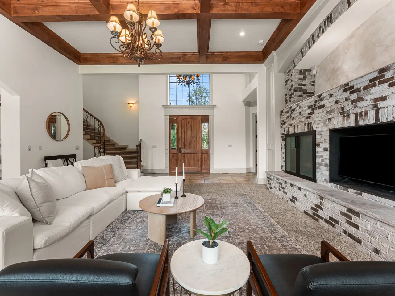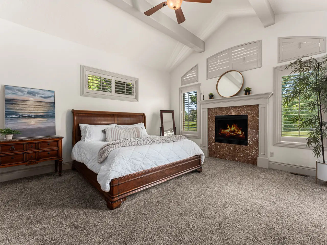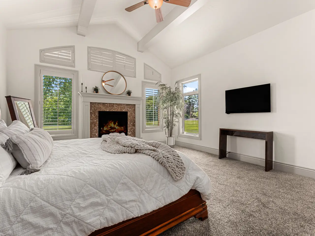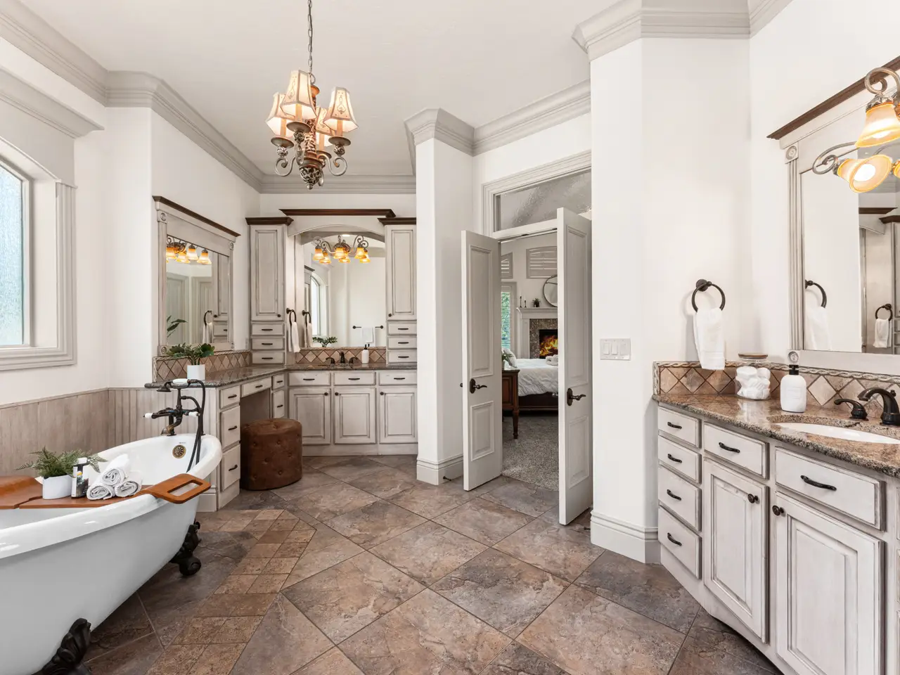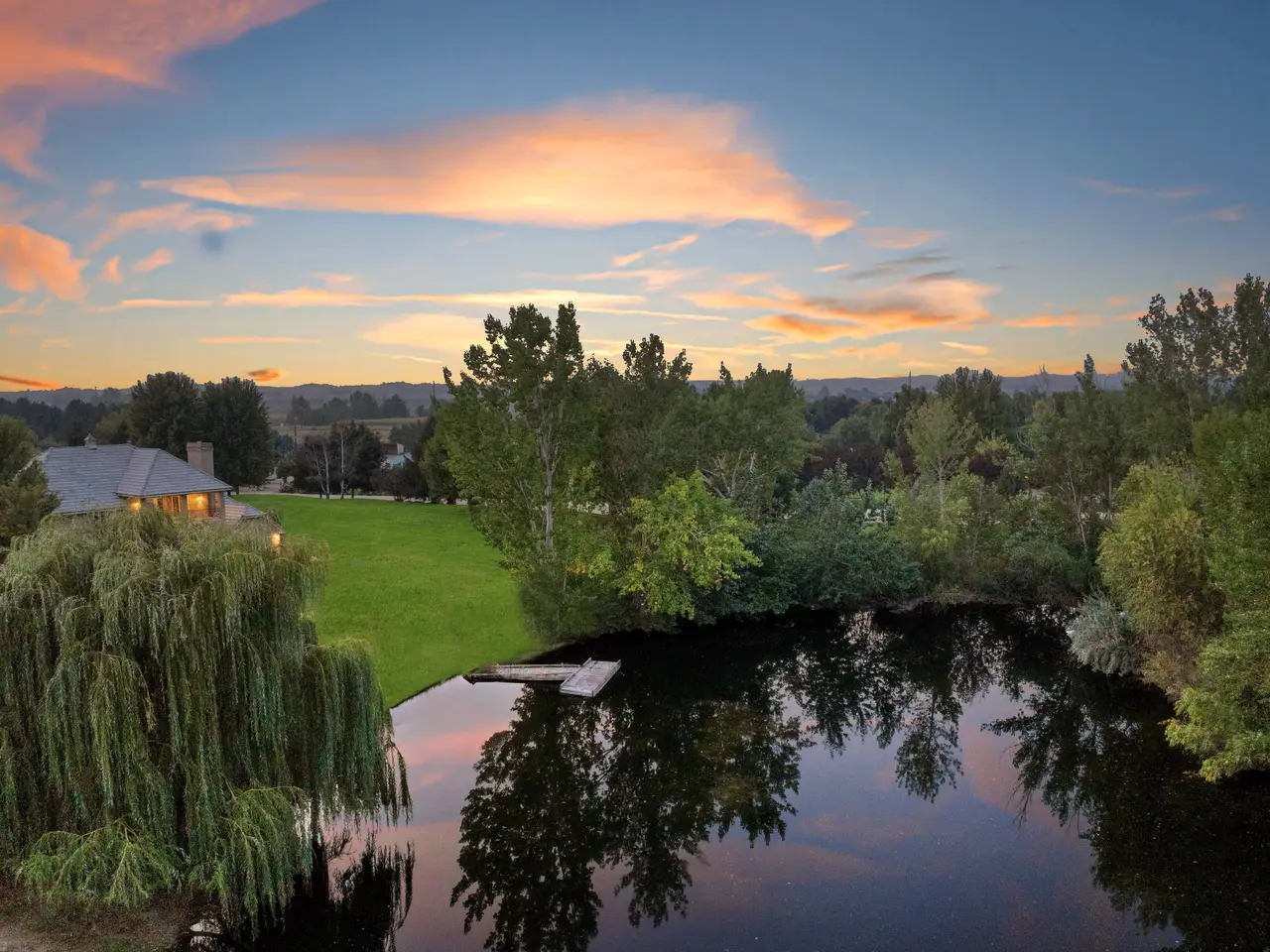 Nestled setting with lakes on both sides in an exclusive Eagle location! Over $40,000 in new interior paint! Spectacular, irreplaceable lot with breathtaking mountain views, the serenity of being just steps from the Boise River, multiple waterways & towering mature trees. Superior custom-designed home offers unparalleled luxury & sophistication. Over 4500sf with endless upgrades such as triple crown molding, rich hardwood floors throughout & abundant windows to take in the breathtaking views. Chef's kitchen is a masterpiece, featuring slab granite counters, custom cabinetry, top-end appliances & spacious pantry. The main-level master suite is a true retreat, boasting a fireplace, walk-in tile shower & clawfoot soaker tub. Upstairs, the balcony provides stunning eastward views of the mountains & overlooks the tranquil water. The oversized 40x28 garage offers ample space. Enjoy full irrigation water rights & 50+ acres of surrounding open space.