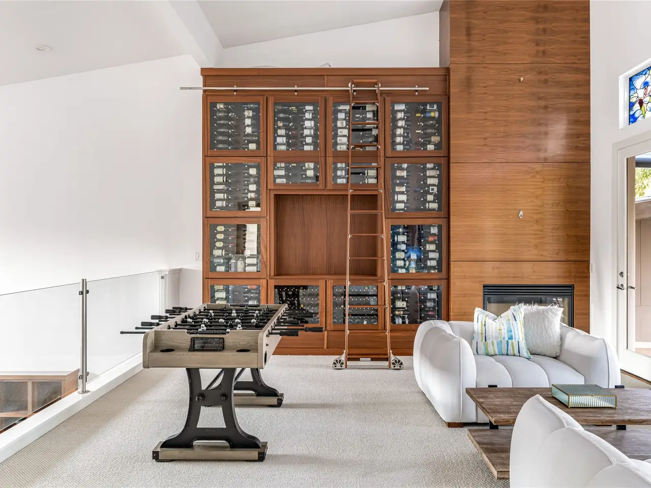 • Showstopping 600-bottle climate-controlled wine library with rolling ladder