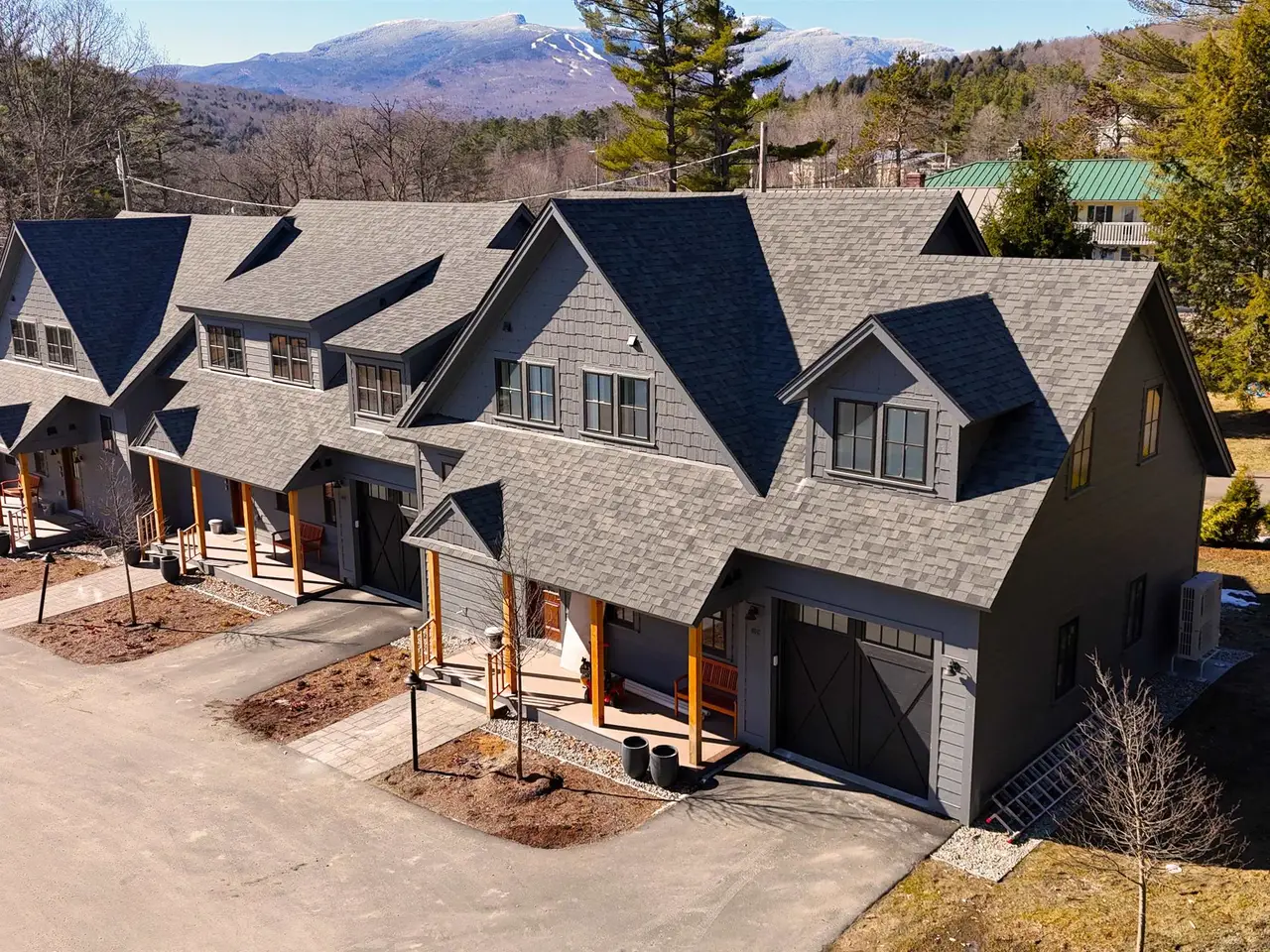 This is the quietest and most private...Furnished end unit with four bedrooms, three and a half baths, 3,390± sq. ft. including a one-car garage and ski sharpening/storage room. Features high ceilings, central AC, and heat pump with propane back-up. The open kitchen-dining creates a great entertaining space with seating for 12. Walk-in pantry. Living room has Jotul gas fireplace. The primary suite features 9’ ceilings, a soaking tub, and shower. Lower level features high ceilings, 3/4 bath, fourth bedroom, and large family room. Vermont Vernacular design, by renown architect Sam Scofield, is in keeping with the original Stowe-A-Way antique farmhouse dating back to the 1800’s. Stowe Mountain Resort: 4.4± miles, Stowe Village: 3.2± miles, BOS: 3.25± hours, BTV: 45± minutes. On Mountain Shuttle bus route for easy access to Stowe Mountain Resort and Stowe Village. The Recreation Path is across the street. The Landing sits on 2.5± acres with over an acre of common area with spectacular views of Mt. Mansfield - a great place for owners and guests to picnic, walk, snowshoe and for children to play and build snow forts. The fixtures and furniture shown in the photos and interactive tour may vary.