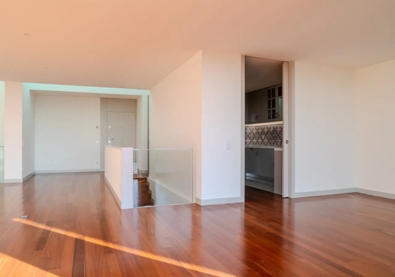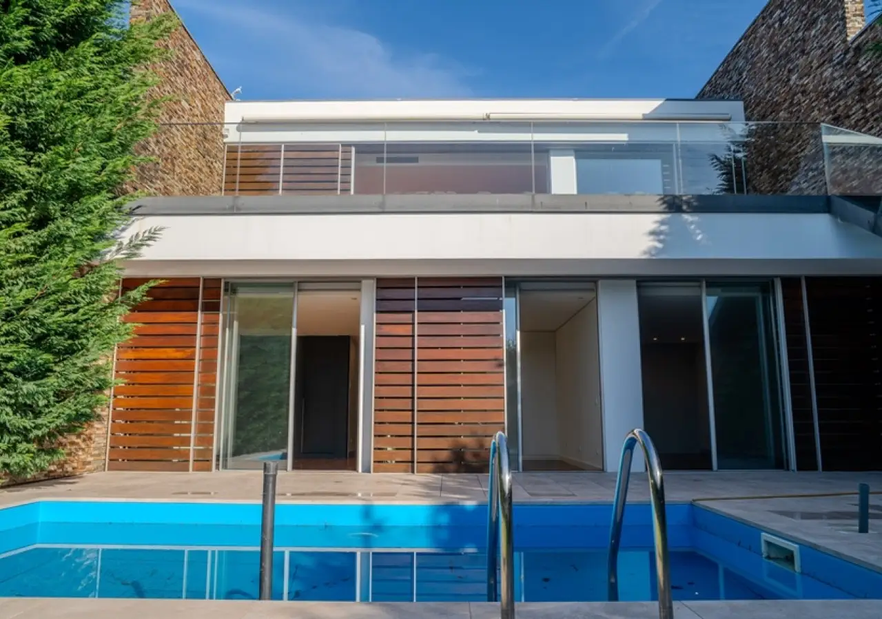 Fantastic two-storey villa with a modern design, set in rural surroundings in a prestigious gated community in the Vale Pisão Nature and Golf Resort, Santo Tirso. In excellent condition, with a fully refurbished kitchen and bathrooms, this villa has a large, bright living area that opens onto a generous balcony with magnificent views. Also on this floor, there is a fully equipped kitchen, a complete bathroom and a bedroom or office. On the lower floor is another living room and the bedroom area, including a master suite with dressing room and two bedrooms that share a bathroom. All rooms have direct access to the private garden with swimming pool, surrounded by greenery and with views of the mountains. At this resort you can also enjoy the Golf Academy, the Clubhouse with restaurant, lounge and bar, as well as controlled access with 24-hour security. CHARACTERISTICS: Plot Area: 95 m2 | 1 026 sq ft Area: 253 m2 | 2 726 sq ft Bedrooms: 4 Bathrooms: 3 Garage: 2 Energy efficiency: A FEATURES: 95.30 m2 garden; Swimming pool; Air conditioning; Central vacuum; Armored door; Automatic irrigation system.