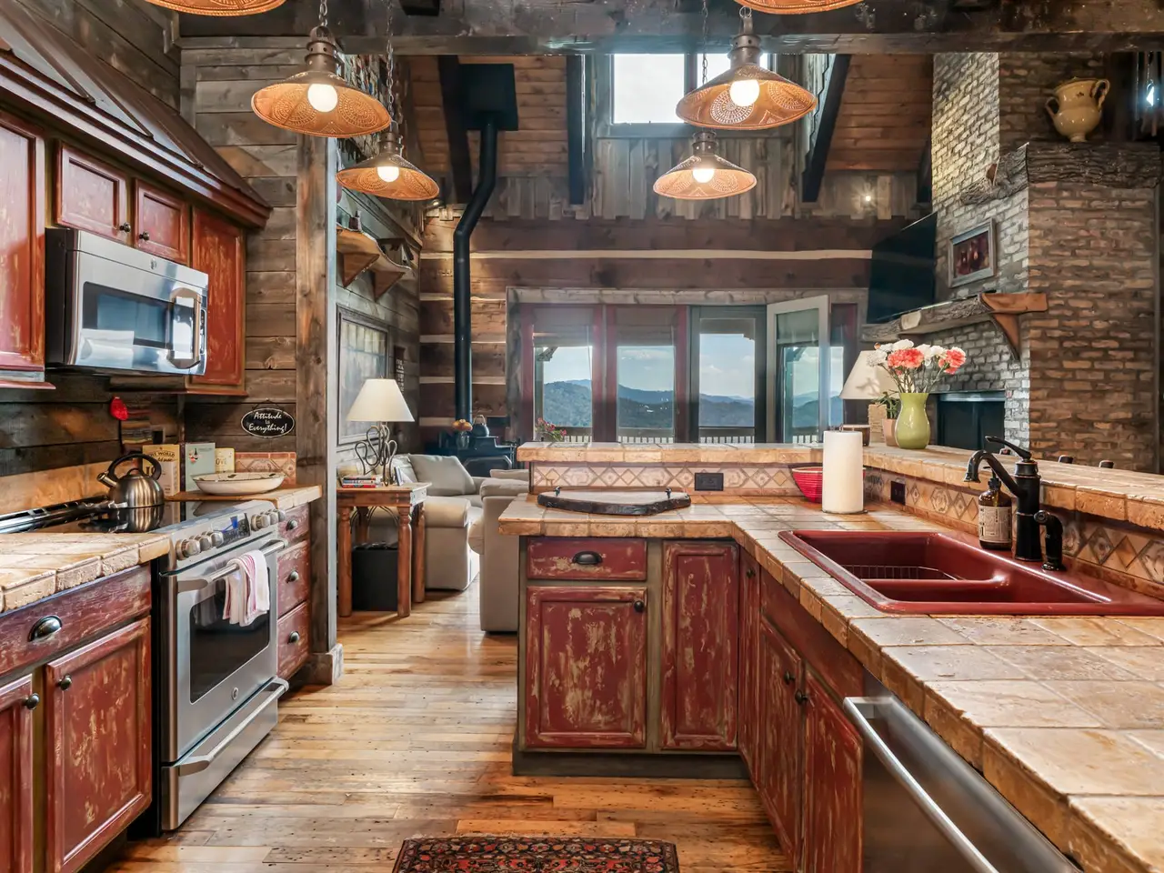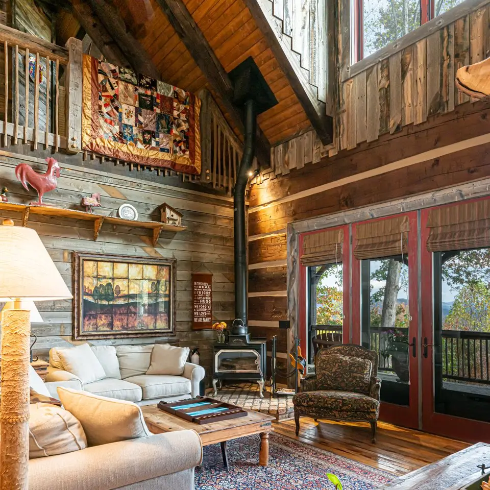 Only one home in Waynesville offers a seamless blend of luxury, craftsmanship, and breathtaking mountain vistas. Nestled on 2.44 acres of usable land, this custom-designed residence showcases artisanal reclaimed materials, open-concept living, and intentional design throughout. Built by the esteemed George Blackburn, this extraordinary property is a rare combination of artistry, functionality, and unparalleled mountain beauty. Step inside to discover remarkable custom woodwork, snow fence walls, and a stunning Chicago brick fireplace - all complimented by historic Maple Gin Mill floors. The gourmet kitchen features hand-painted cabinetry, tumbled marble tile, and stainless appliances. The great room boasts sweeping long-range mountain views, a cozy wood stove, and an adjoining dining space - perfect for entertaining. Retreat to the main level primary suite, complete with private deck access, two walk-in closets, and a luxurious bathroom with a clawfoot tub and walk-in shower. Upstairs, the guest rooms offer multiple spaces for rest or creative pursuits, two bathrooms, and two flexible alcoves - all framed by panoramic long-range mountain views. The terrace level allows for recreation, hobbies, and storage, finished with a full bathroom. The expansive main level cedar deck and terrace level deck seamlessly integrate the home with its natural surroundings, creating the perfect setting for outdoor enjoyment. Experience this one-of-a-kind luxury retreat where the mountains meet the clouds.