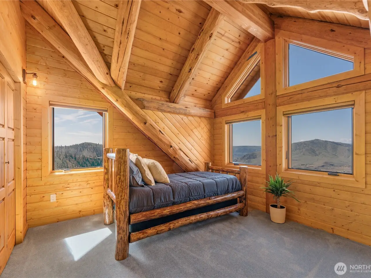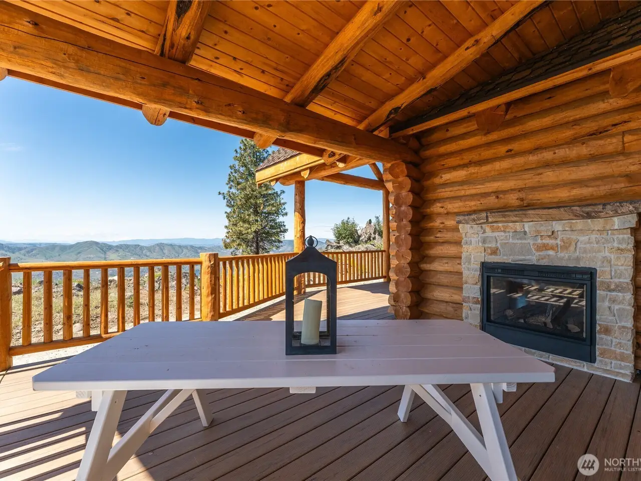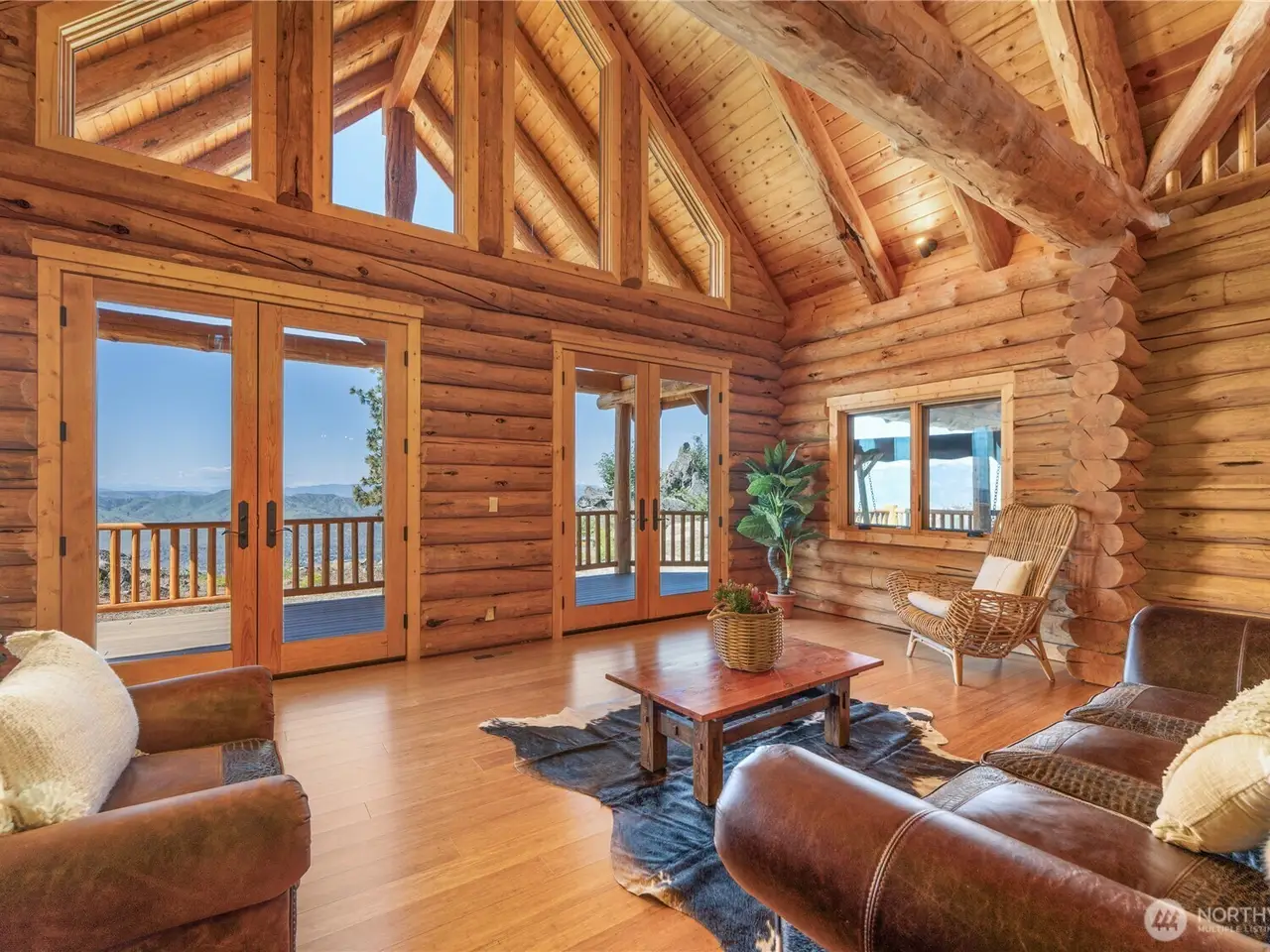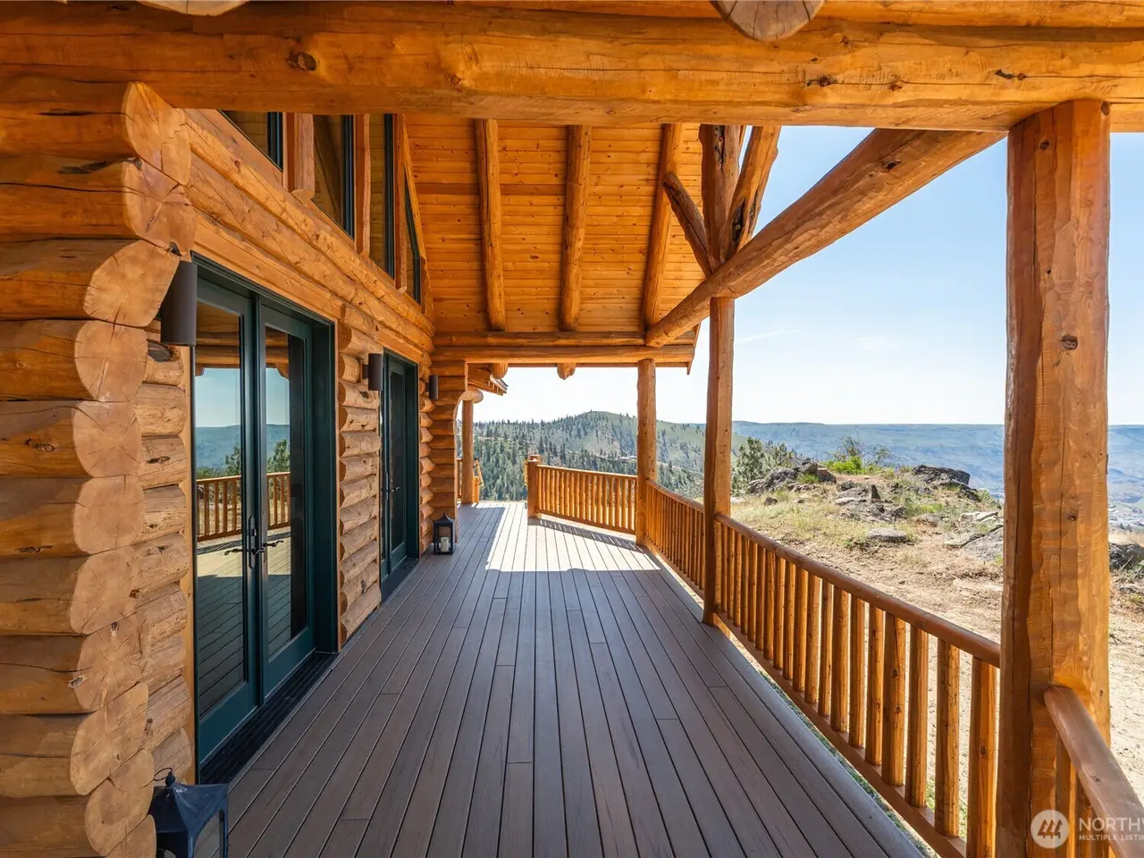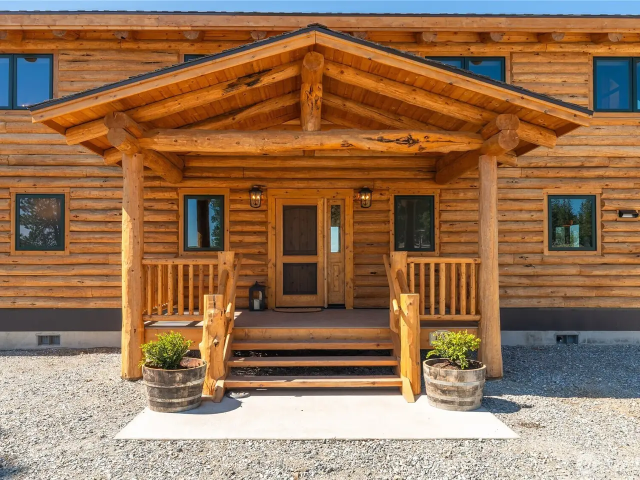 PRIVATE GATED MOUNTAIN ESTATE! New construction three bed, 2.5 bath 2,697 square foot custom-built luxury log home in Chelan Vista Heights with six lots totaling 124 acres with sweeping views overlooking Lake Chelan. The main floor features a great room with double sided fireplace and vaulted ceilings, bamboo flooring, light-filled kitchen with granite countertops, dining room, primary bedroom and French doors throughout leading to a classic covered wraparound porch. The upper level loft features a Bonus Room plus two additional bedrooms and bath. Secondary cabin with view porch. Detached two-car garage, Chelan PUD power throughout the entire property, two wells and two 1,900 gallon cisterns with water softener and filtration. The additional homesites offer development opportunity.