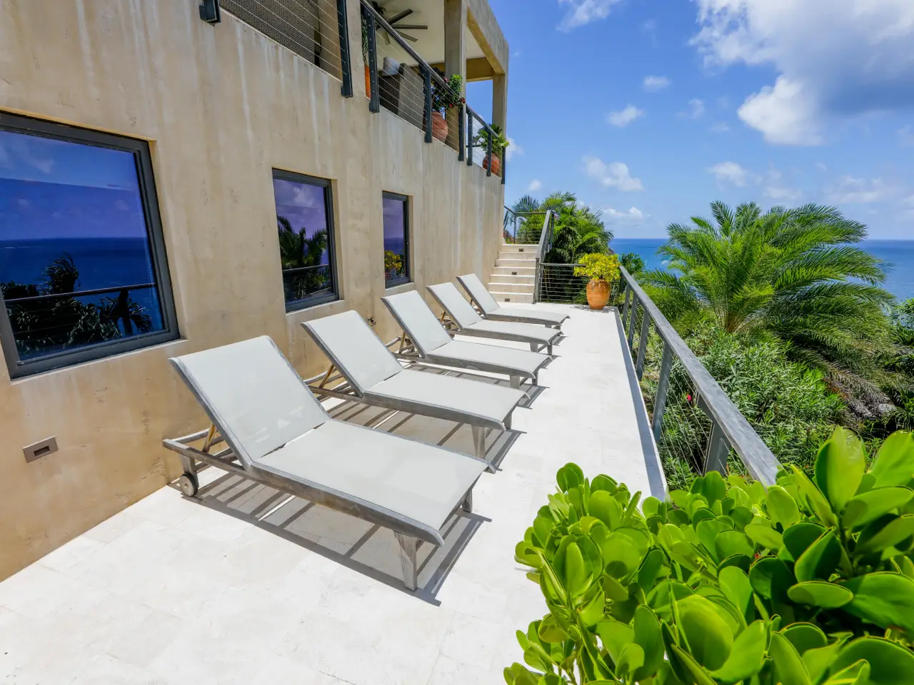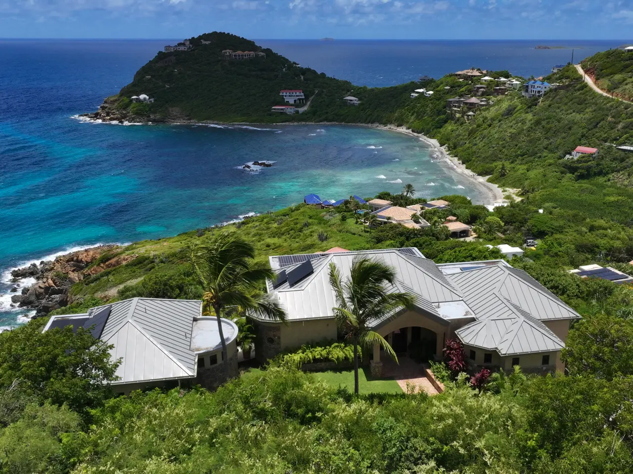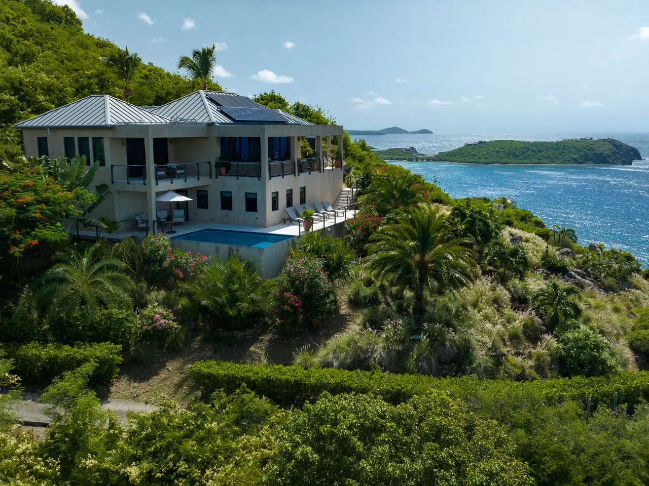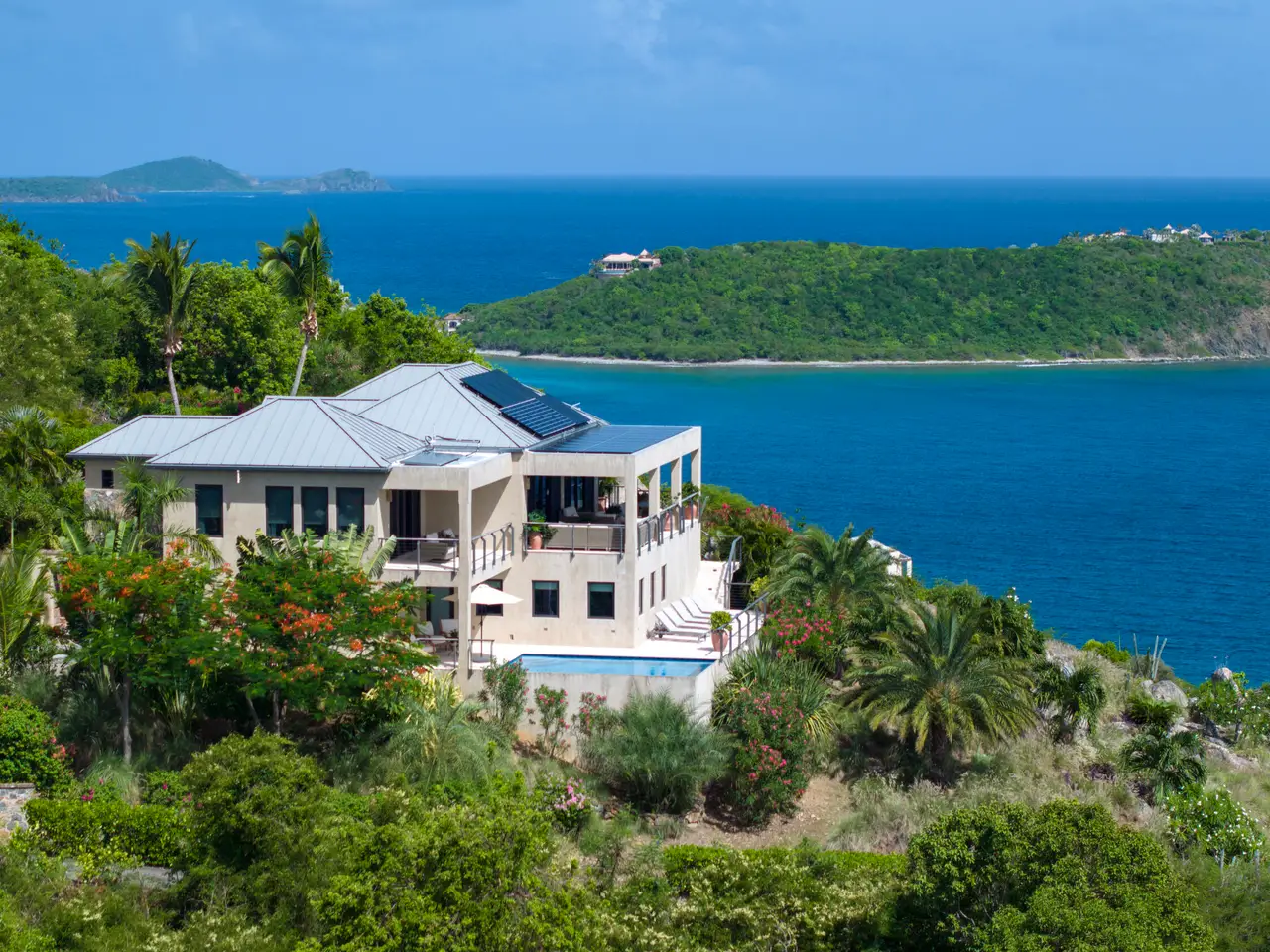 Blue View Villa, a stunning new property built in 2019, exuding a classic soft modern Caribbean style. This exceptional home is perched on a spacious plot, offering panoramic views from sunrise over the serene Ram's Head to sunset over the majestic St. Thomas. With three oversized bedrooms and en-suite bathrooms, each designed with ample space and the flexibility to convert to a 4 bedroom villa. Blue View Villa caters to both comfort and functionality, equipped with solar panels and Tesla Batteries. Located just minutes from Cruz Bay and with private neighborhood beach access within walking distance. Blue View Villa is ideally set up to operate as a vacation rental, though it is tempting to move right in!