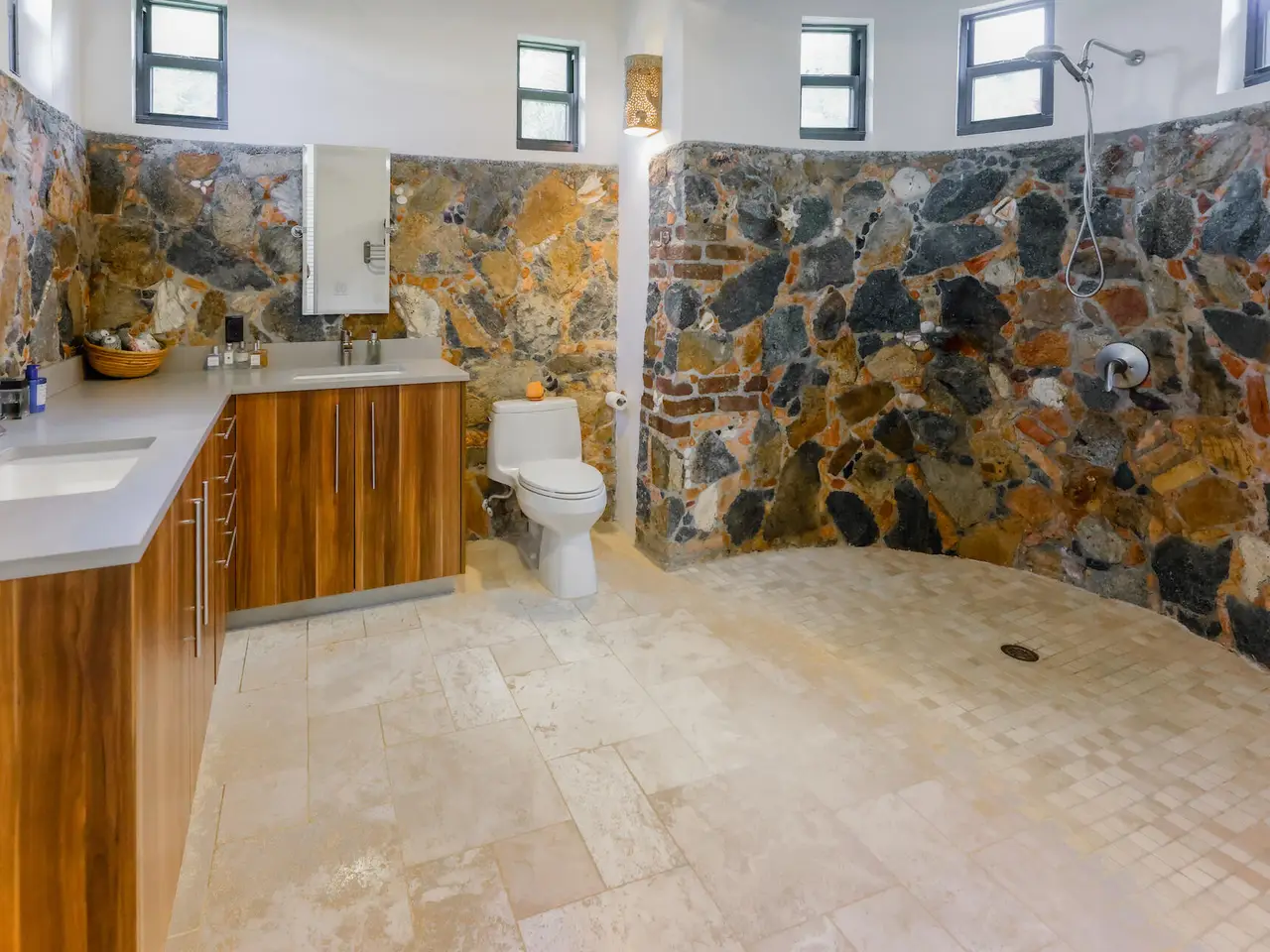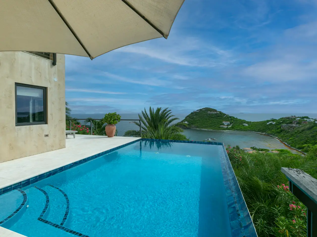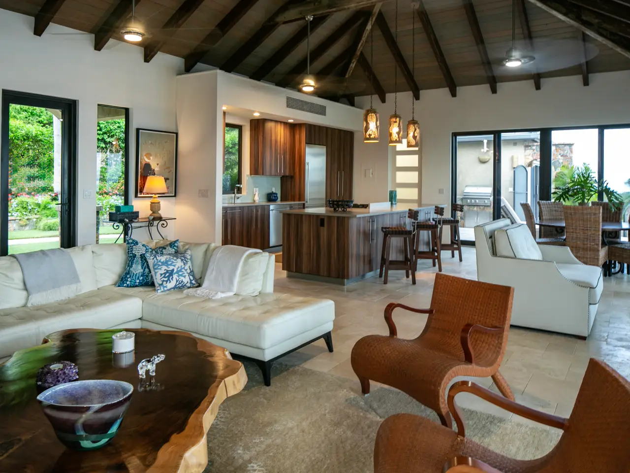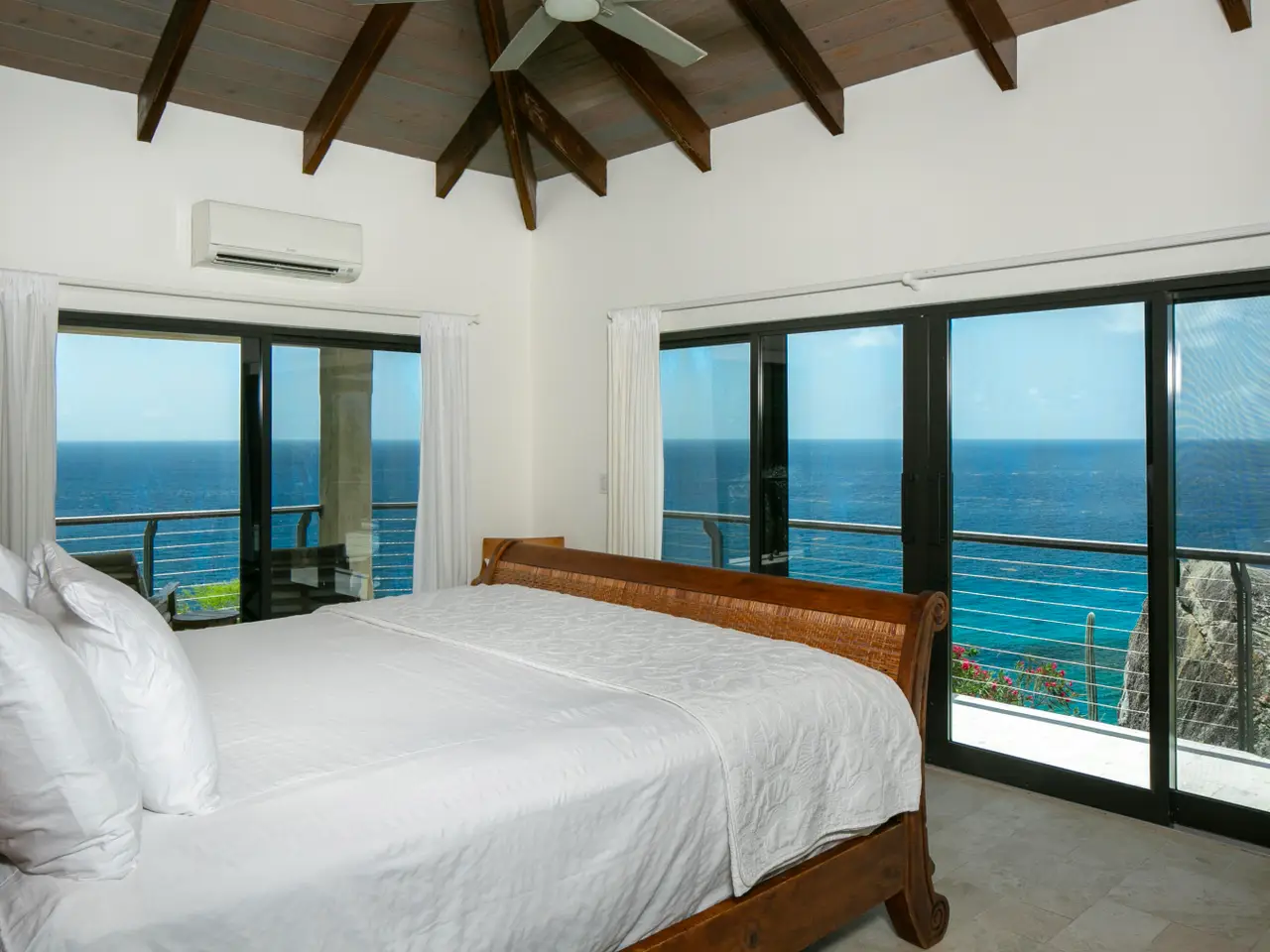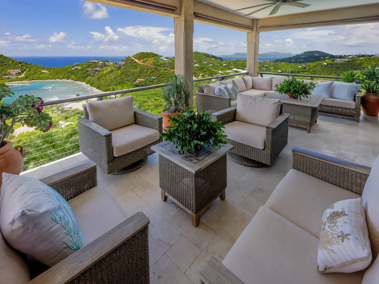 Blue View Villa, a stunning new property built in 2019, exuding a classic soft modern Caribbean style. This exceptional home is perched on a spacious plot, offering panoramic views from sunrise over the serene Ram's Head to sunset over the majestic St. Thomas. With three oversized bedrooms and en-suite bathrooms, each designed with ample space and the flexibility to convert to a 4 bedroom villa. Blue View Villa caters to both comfort and functionality, equipped with solar panels and Tesla Batteries. Located just minutes from Cruz Bay and with private neighborhood beach access within walking distance. Blue View Villa is ideally set up to operate as a vacation rental, though it is tempting to move right in!