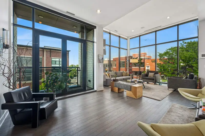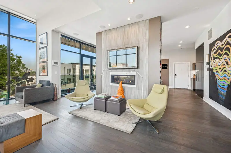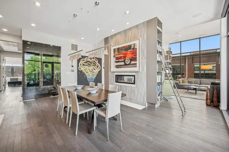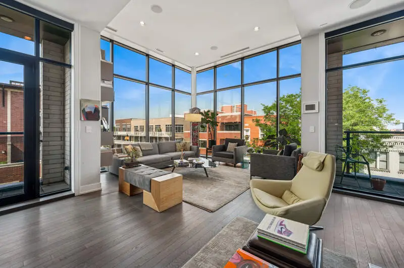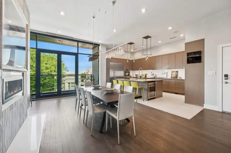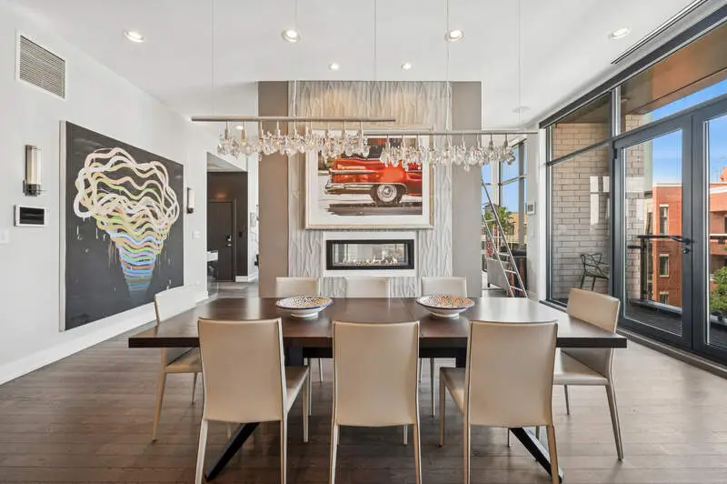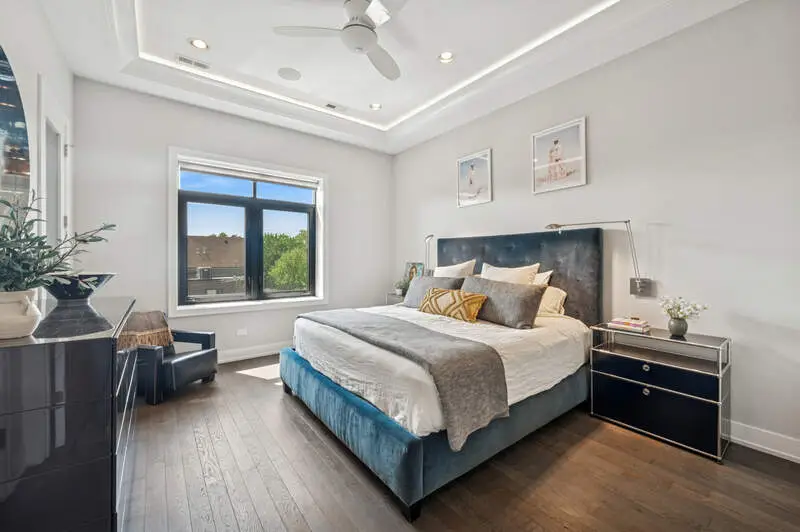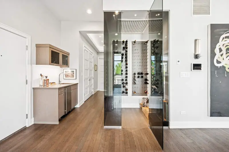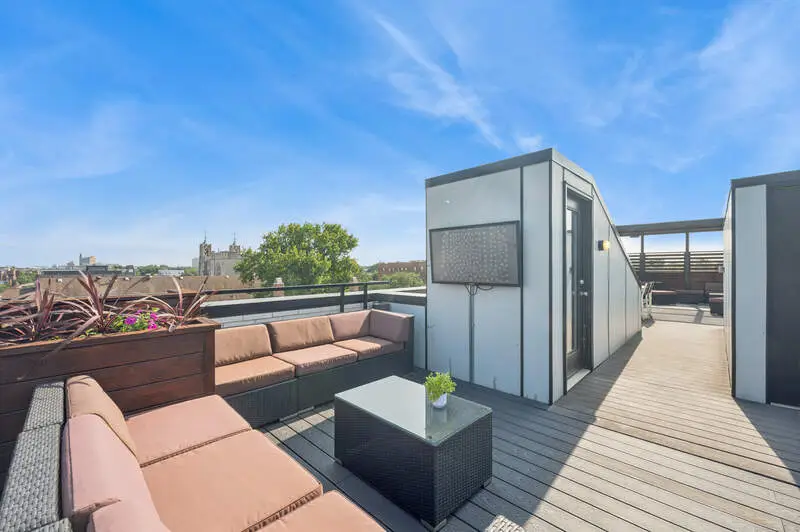 Spectacular full-floor 3 bed, 3.1 bath penthouse condo with direct and private elevator access is perfectly situated in prime Bucktown at the corner of Damen and Shakespeare. Soaring 18' ceilings and dramatic windows flood this home with natural light, while an expansive private rooftop terrace offers unmatched skyline views. Rare, boutique elevator building offers 2-car attached and heated garage parking. Designed for luxurious living and effortless entertaining with more than 2,800 square feet of living space and open-concept living. The spacious living room is framed by dramatic floor-to-ceiling east and north facing windows and a sleek dual-sided fireplace. The adjacent dining area is anchored by a full wet bar and a striking, floor to ceiling, custom glass wine cellar. The ultimate chef's kitchen offers sleek quartz countertops, generous custom cabinetry, and high-end appliances-including a built-in Miele coffee system, double ovens, pot filler, dual dishwashers, and two beverage/wine refrigerators. Just off the living room, two private balconies extend your entertaining space and offer the perfect setting for morning coffee or evening cocktails. The luxurious primary suite features a generous walk-in closet and spa-like bath with dual vanities, a jetted soaking tub, and steam shower. Two spacious secondary bedrooms, each with its own en-suite bath for comfort and privacy. Upstairs, an expansive private rooftop deck offers a true outdoor oasis with sweeping panoramic views of the city skyline. Thoughtfully designed for entertaining and relaxation, this incredible space features built-in seating, an outdoor TV/lounge area, a pergola offering shade and style, and both water and gas lines for easy outdoor cooking and hosting. Attached and heated two-car garage and dedicated storage. Ideally located near Bucktown's best dining, shopping, the 606 Trail, public transport, Midtown Athletic Club and more. Pulaski Elementary School district. Come see this rare offering!