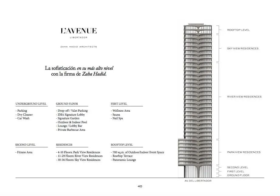 The avant-garde of global architecture comes to Buenos Aires, in the best location in the entire city, with panoramic views in the middle of nature. L'Avenue Libertador will transform the perception of residential projects in Argentina, with a design by Zaha Hadid Arquitects. It is the next reference icon of BA. An exquisite harmony between interior and exterior through the curved balconies and with the vibrant energy of Avenida Libertador at your feet. - 3-meter-high 360° fully glazed windows - spaciousness as a way of life - avant-garde in every detail - sophisticated materials - elegance and modernity every day - extraordinary views of the river, the polo field, the racetrack and the Rose Garden. - in/out heated pool surrounded by green spaces - relaxation lounge, spa and hair salon - fitness center - glazed lounge and 720 m2 roof top for meetings and celebrations This unit has 173 m2 covered and almost 34 m2 of balcony, with a panoramic view of Avenida Bullrich with a view of the Polo Field. Large living room and two suites plus service quarters. Ask about other available units! The property offered is not accessible for people with reduced mobility. Details: Total area: 207 m2 Code: MAP5130141 Type: Apartment Bedrooms: 3 Age: Under construction Bathrooms: 2 Toilettes: 2 Covered area: 173 m2 Semi-covered area: 33 m2 Rooms: 4