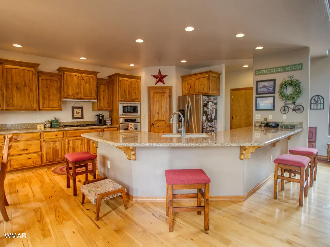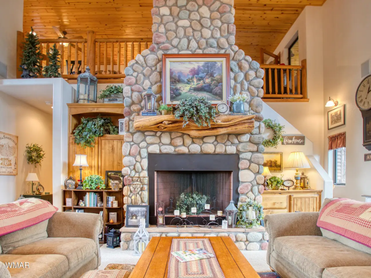 Nestled on 1.06 acres of serene land, this exceptional 3-bedroom, 3.5-bathroom home offers a beautiful, paved driveway and enough room for an additional home/guest house that creates the perfect blend of comfort, style, and natural beauty. With 3, 079 square feet of living space, this home features a spacious open floorplan. The kitchen is a chef's dream, boasting an enormous layout with a gas range cooktop, walk-in pantry, and an oversized breakfast bar. The rich knotty pine cabinetry adds warmth and character. Throughout the home, you'll find beautiful white water hickory wood flooring, creating a clean, timeless aesthetic, and knotty pine doors throughout the home. The focal point of the living room is a stunning floor-to-ceiling stone wood-burning fireplace, complemented by a... gas starter, and a tongue & groove ceiling that enhances the home's natural ambiance. The main bedroom suite offers a private retreat with an en-suite bath featuring a jetted tub, separate shower, and a spacious walk-in closet. The spacious laundry room is equipped with a sink, adding convenience to your daily routine. Upstairs, you'll find a versatile loft/office areaideal for work or relaxation. The home's large windows allow you to take in breathtaking views of the numerous large Ponderosa Pines trees, whether you're in the living room, the loft, or out on the back deck. Outside, the property boasts a 1200 Square foot trex deck, a BBQ gas line, over looks tree covered ravine and a storage area underneath the home, perfect for storing outdoor equipment or creating additional space for hobbies. Additional features include a fully insulated, oversized 2-car garage with an electric heater providing year-round comfort and storage. The home has been stained within the last year. This home truly offers a peaceful retreat with luxury touches throughout.