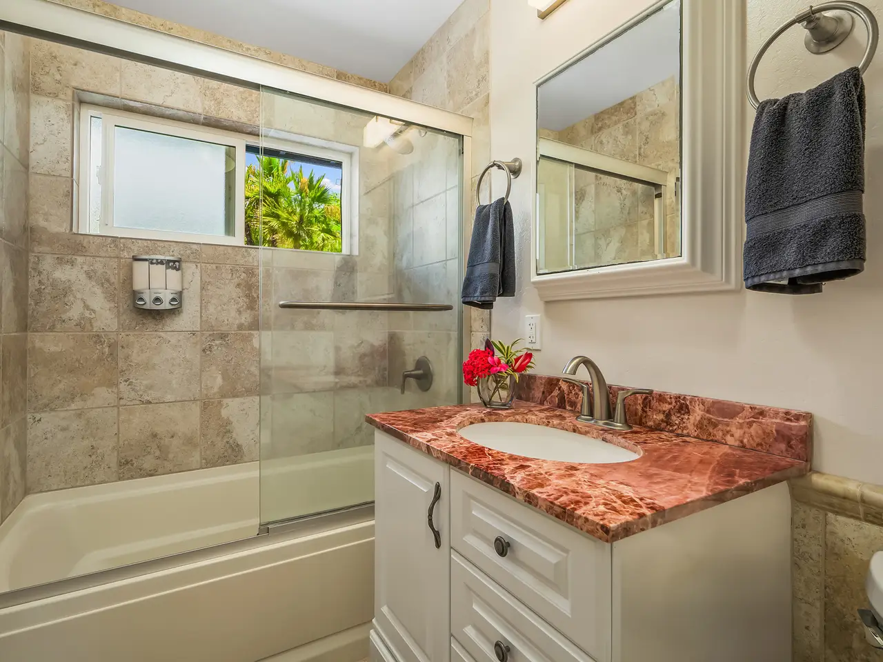 Ocean View Haven – Legal Vacation Rental in Poipu Beach, Kauai Enjoy sweeping ocean views, coastal sunrises, and seasonal whale sightings from this Poipu Beach retreat located on a quiet dead-end street. Just a short walk to both Poipu Beach and Shipwreck Beach, this home offers the best of South Shore Kauai living. With 2,160 sq ft of interior space and over 900 sq ft of covered lanais, enjoy over 3,000 sq ft of seamless indoor-outdoor living. A detached 1,000 sq ft garage includes a large 2-car bay and air-conditioned workshop—perfect for creative use, storage, or gear. The entry level features 3 bedrooms, 2 full bathrooms, laundry, and a secondary living room opening to a lanai with ocean views. Upstairs, vaulted ceilings highlight the open-concept kitchen, dining, and living space with another full bath and a remodeled primary suite. All rooms have split AC for year-round comfort. The upper lanai spans the home’s width—ideal for al fresco dining and relaxing with South Shore views. • Legal vacation rental (VDA) • Detached garage + AC workshop • Expansive ocean views from upper level • 4 covered lanais • Fenced side yard • Walk to Poipu Beach & Shipwreck Beach • No HOA dues This ocean-view home is ideal as a primary residence, second home, or licensed nightly rental.