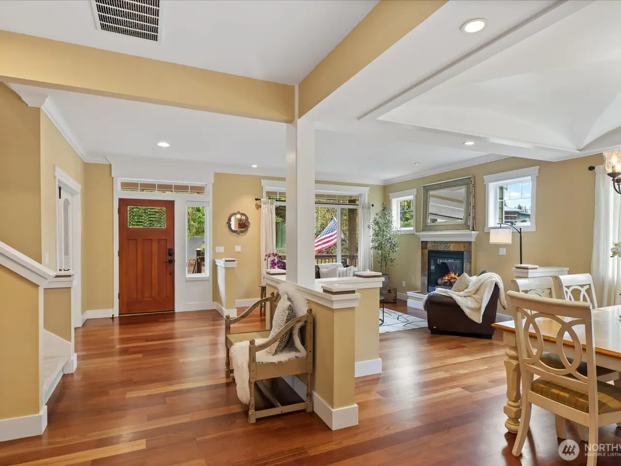 Craftsman elegance meets serenity! Brazilian cherry hardwoods anchor the main level, complemented by a slate gas fireplace and dining area. The kitchen shines with granite, double ovens, 5-burner gas range, prep island, and breakfast nook opening to the family room. Upstairs, the primary suite offers a new balcony, spa-style bath, and walk-in closet, plus a spacious bonus room with wet bar. Designer touches include painted millwork, wainscoting, and 9-ft ceilings for timeless appeal. Enjoy 8+ private acres with fenced yard, powered shop, BendPak 10,000-lb lift, and chicken coop. Updates include a new roof, heat pump, and Generac generator. Convenient to I-5 yet worlds away, this property perfectly blends comfort, privacy, and craftsmanship.