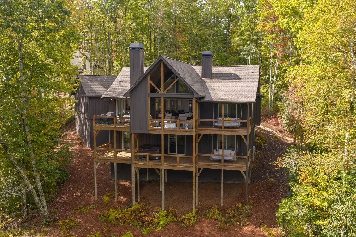 Experience an upscale outdoor lifestyle in the Chinquapin gated community. This home is situated at the end of a cul-de-sac on 3.28 acres with stunning long-range views from its spacious upper and lower decks. On the main level, large folding accordion doors open to the porch, filling the open living and dining area with natural light and beauty. This space features a striking stone wood fireplace, vaulted ceilings, and impressive design elements throughout. The spacious kitchen blends functionality with aesthetics, creating a feeling of openness and connection within the area. The main covered deck is equipped with a grand stone wood-burning fireplace for warmth and ample space for entertaining and dining. Inside, the main level features a luxurious primary suite, while the spacious lower level includes three bedrooms, two bathrooms, and plentiful space for hosting gatherings and relaxing. The lower-level family room opens to a large lower deck with a hot tub - providing further possibilities for entertaining or enjoying the mountain views. The community of Chinquapin offers a perfect blend of social and outdoor amenities while preserving the privacy of a classic mountain home. With miles of trails, pickleball courts, a driving range, fishing facilities, a dog park, and a clubhouse featuring fun social spaces, a fitness room, and a calendar of seasonal parties, there are plenty of activities for everyone. With its spacious porch to enjoy an evening drink after a day of outdoor adventures and take in the stunning long-range views, this property offers the ultimate mountain experience.