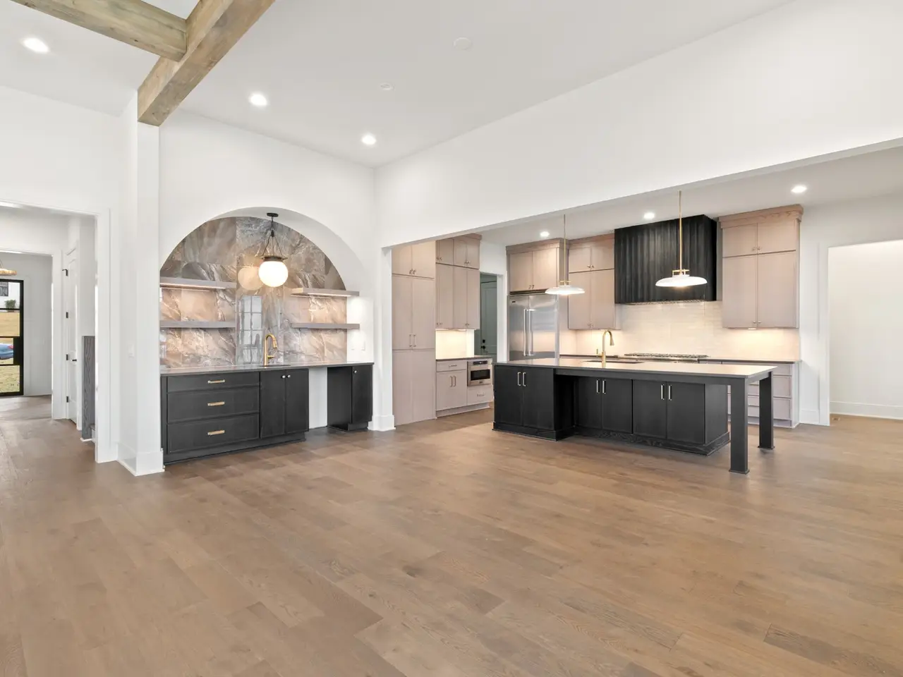 Another exquisite creation by Ridgemont Homes, this custom-built residence exemplifies refined craftsmanship and modern elegance. Defined by clean architectural lines and premium finishes, the thoughtfully designed floor plan offers a flexible Study/Bedroom #2 on the main level--blending comfort and style with effortless sophistication. The gourmet kitchen is a true showpiece, featuring gleaming quartz countertops, state-of-the-art Viking appliances (including a built-in refrigerator), and a fully appointed working pantry complete with a dedicated sink and space for a second refrigerator. Functional luxury continues throughout the home, with an expansive mudroom and a generous 11x8 utility room on the main floor designed to streamline daily routines. The spacious primary closet features an island and dedicated storage for shoes and handbags. Upstairs, multiple flexible spaces offer endless possibilities. One flex space functions perfectly as a kids' den, home office or play area while another is ideal for a secondary laundry area, cozy reading nook, or climate controlled storage. The large bonus room includes optional space for a bar or storage closet. Every bedroom in the home features a private bath and walk-in closet, ensuring privacy and convenience for all. Step outside to a 25x16 covered porch off the family room, complete with a cozy fireplace and seamless connection to a grilling terrace--ideal for entertaining. The spacious backyard offers ample room for a future pool, creating the perfect setting for relaxation or recreation. Additional distinguished features include energy-efficient Pella windows, a sleek steel front door, a tankless water heater, rich hardwood flooring throughout, and generous walk-in attic storage--delivering a home as enduring as it is elegant.