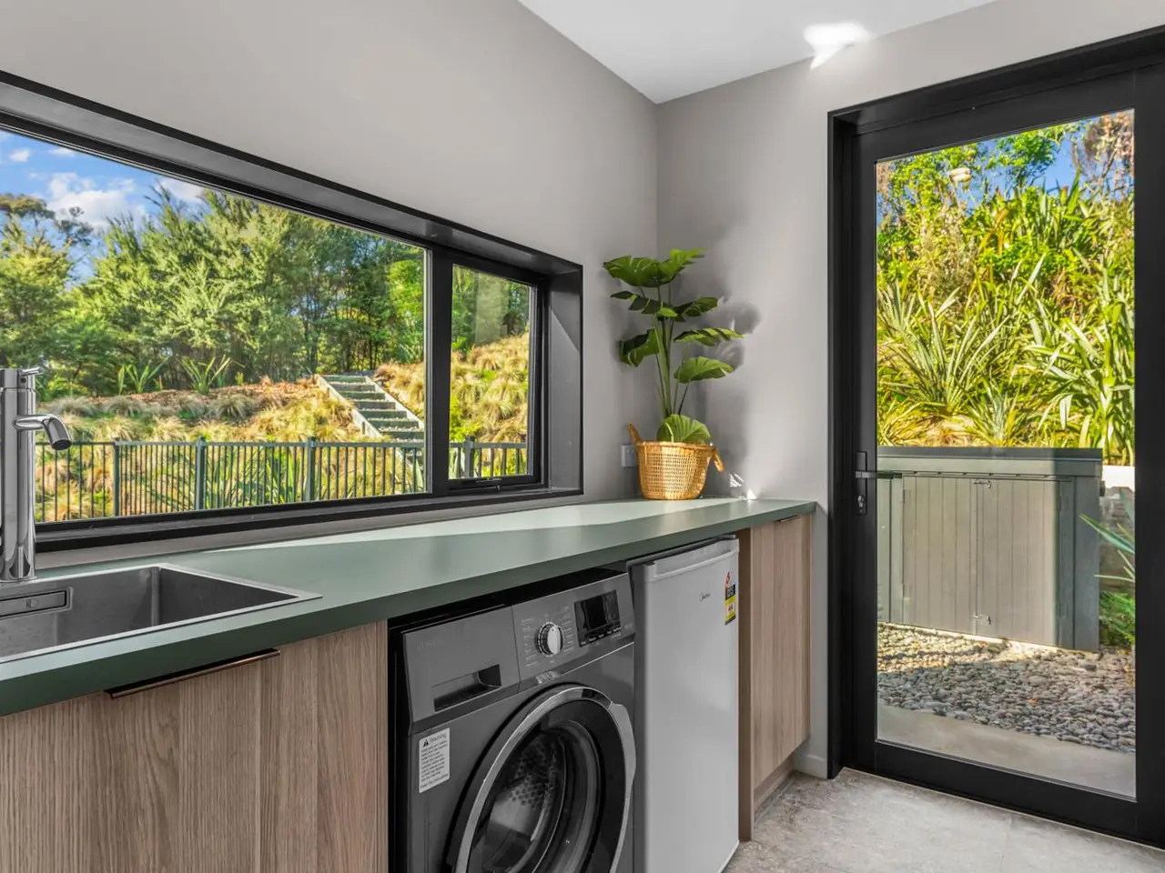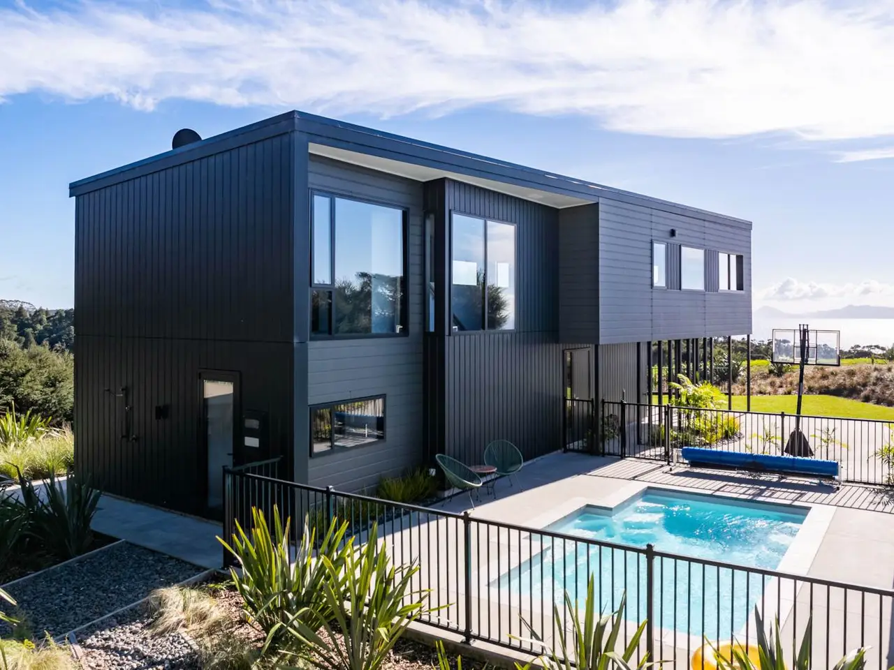 Discover the perfect blend of modern elegance and serene coastal living with this stunning property in Langs Beach Estate. Situated on a 4-hectare bush block with native planting, this seaside sanctuary offers breathtaking ocean views of Bream Bay, including the iconic Hen & Chicks. The impressive two-storey residence, built in 2022, features 166sqm of thoughtfully designed living space. The master bedroom is a true retreat, located upstairs with its own ensuite and walk-in robe, providing you with privacy and relaxing views out over the mature native bush. The open-plan living area boasts a modern kitchen with a walk-in pantry, making it ideal for both entertaining and everyday living. Gather around the Kent-style fireplace on chilly evenings or enjoy the seamless indoor-outdoor flow as the living area extends to a spacious balcony—your escape to relax and savour the stunning vistas. The ground floor is equally inviting, offering two additional bedrooms overlooking the bush, a bathroom, a spacious family room, and a separate laundry for your convenience. Need to unwind? Take a dip in the in-ground swimming pool or soak in the spa, strategically nestled among native bush, while still enjoying the panoramic ocean views. This 4-hectare property is located within a private gated community dedicated to the conservation of over 200 hectares of mature QE II protected native forest and fauna, including Kiwis. You’ll enjoy access to communal facilities, including a tennis court, a tranquil lake, and access to your own large boat shed. And just at the end of the private road lies the white sand and surf of Langs Beach, one of New Zealand’s best. This is a magical place for both living and leisure.Don’t miss this incredible opportunity to make your coastal dream a reality. Contact us today for a private viewing and embrace a lifestyle of unrivalled beauty and comfort! Deadline sale: Closes on Thursday 18 September 2025 at 4:00PM (unless sold prior)