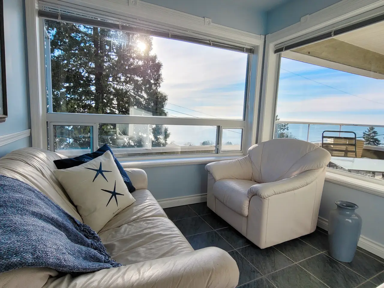 Stunning Views from this private home located on Blackwood Lane. Views from all floors! A huge primary master bedroom with a separate sitting area and balcony to enjoy a morning coffee or sunset. Wake up to the sun reflecting off the water! The large en suite bathroom includes a large soaker tub. The main living space is on the top floor with a separate formal dining room. Its open design ensures a spacious ambiance, even accommodating a grand piano with ease. The open kitchen layout ensures the chef is always part of the conversation! Step outside onto the massive deck, an idyllic setting for unforgettable sunsets or BBQ gatherings with friends and family. Two bedrooms downstairs can be used as a suite or for extended family. This ocean-view of the family home is a must-see.⁠