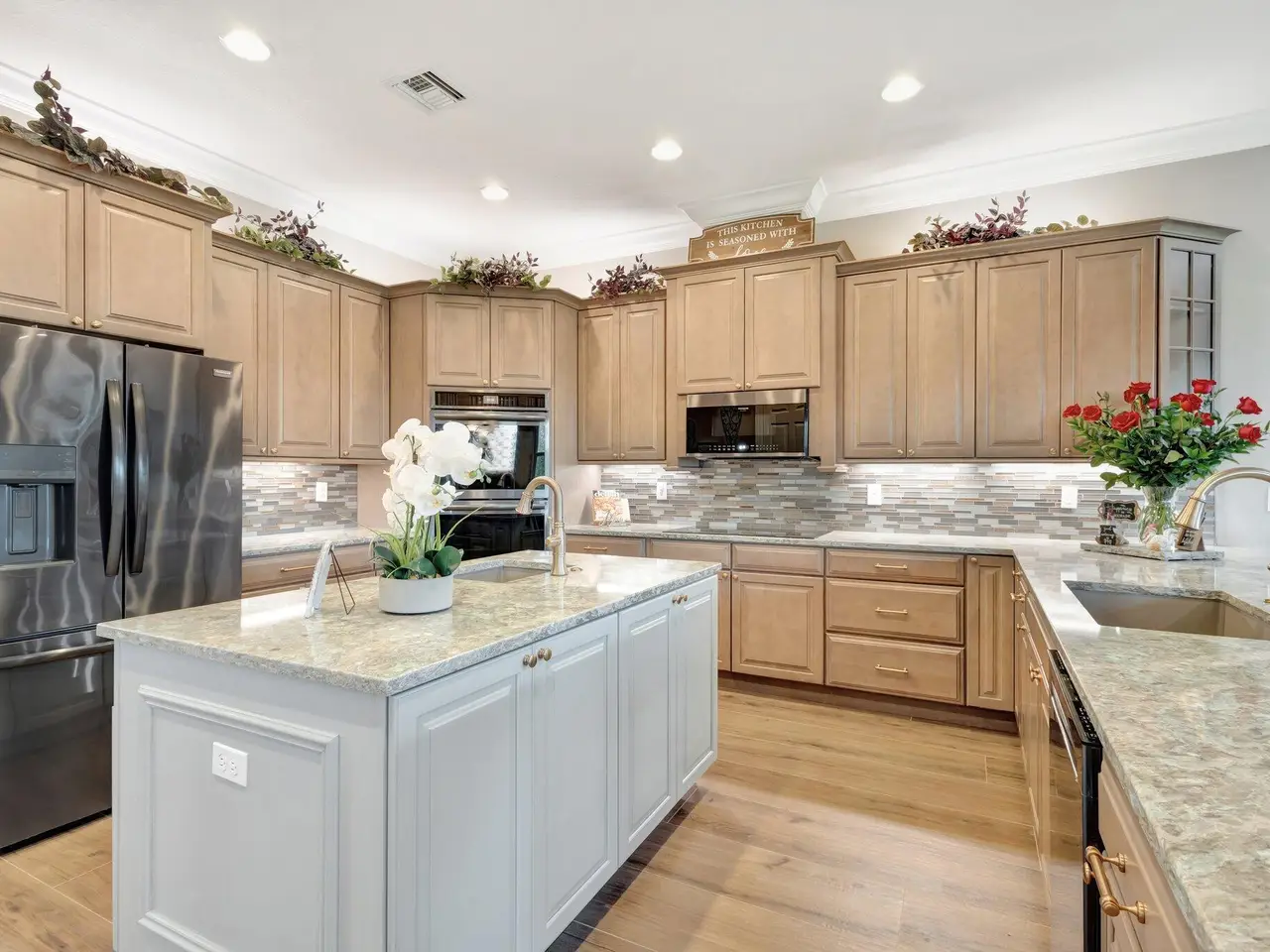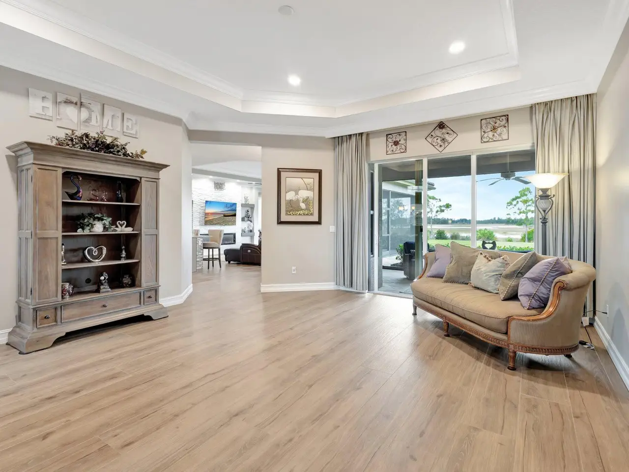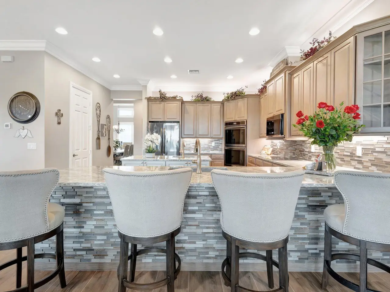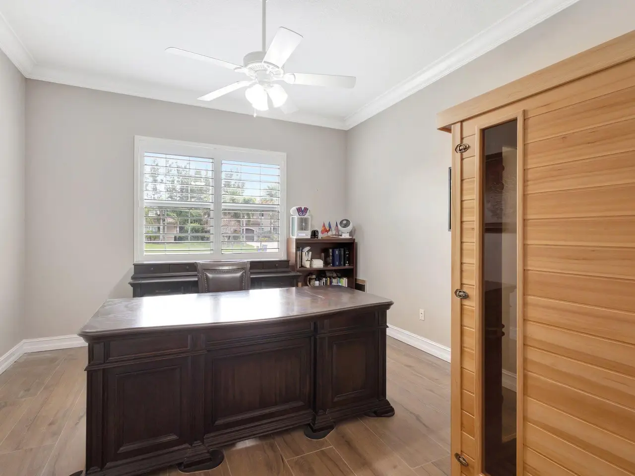 Enjoy pristine preserve views from this 4 bed, 4.5 bath + den + bonus room, home. Situated on just under 1/2 acre, this property provides ample room for a custom pool & has been impeccably updated, blending modern convenience with elegant charm. The open floor plan is perfect for entertaining, with large impact windows & doors flooding the space with natural light while offering stunning nature views. ''Wood look'' tile flooring throughout adds a touch of sophistication, while crown molding, wainscoting & plantation shutters enhance the home's elegant appeal. The gourmet kitchen was remodeled in 2024 & features new cabinetry, granite countertops, new appliances & a spacious walk-in pantry. The primary suite is a true retreat, with 2 custom walk-in closets & a spacious remodeled bathroom.