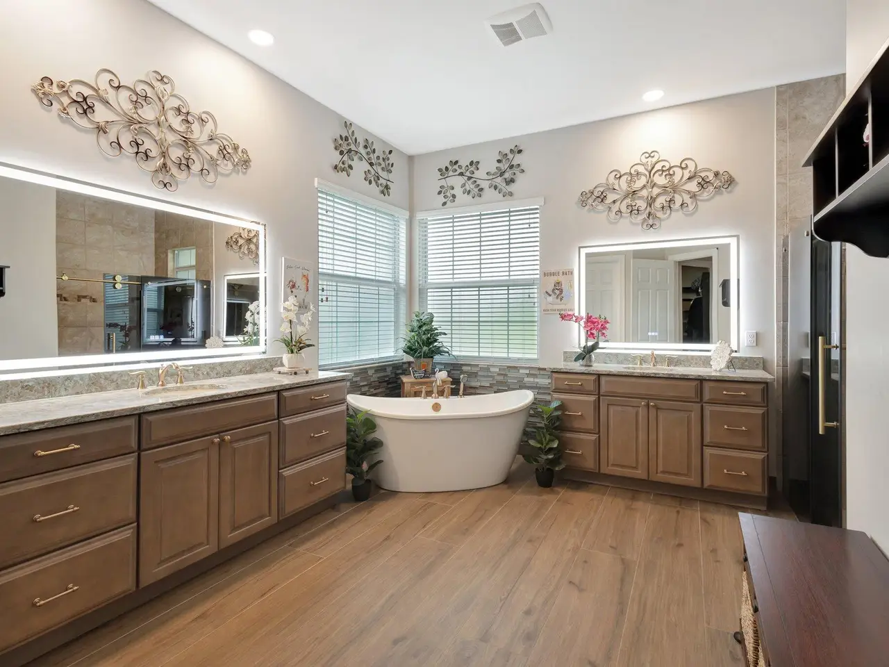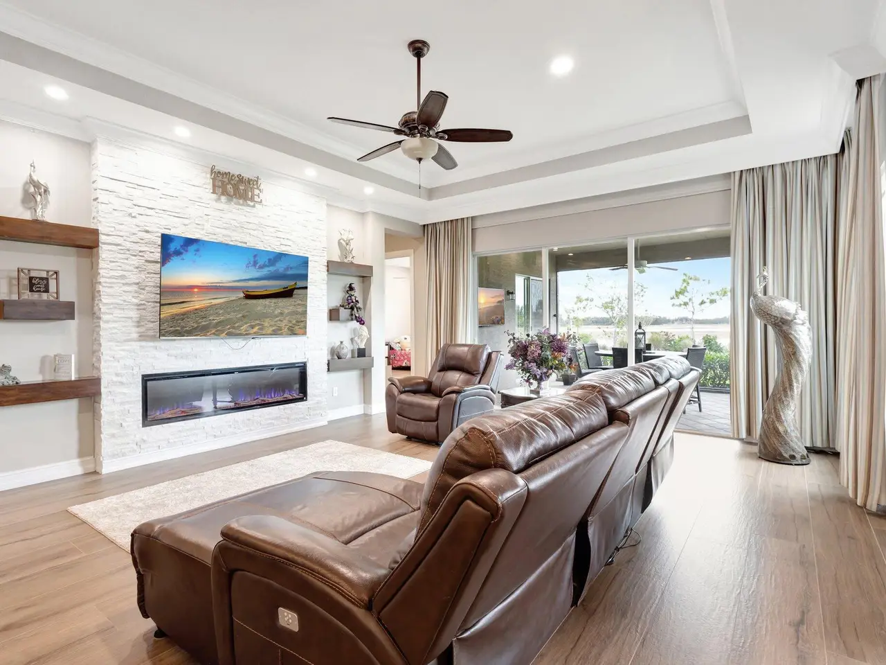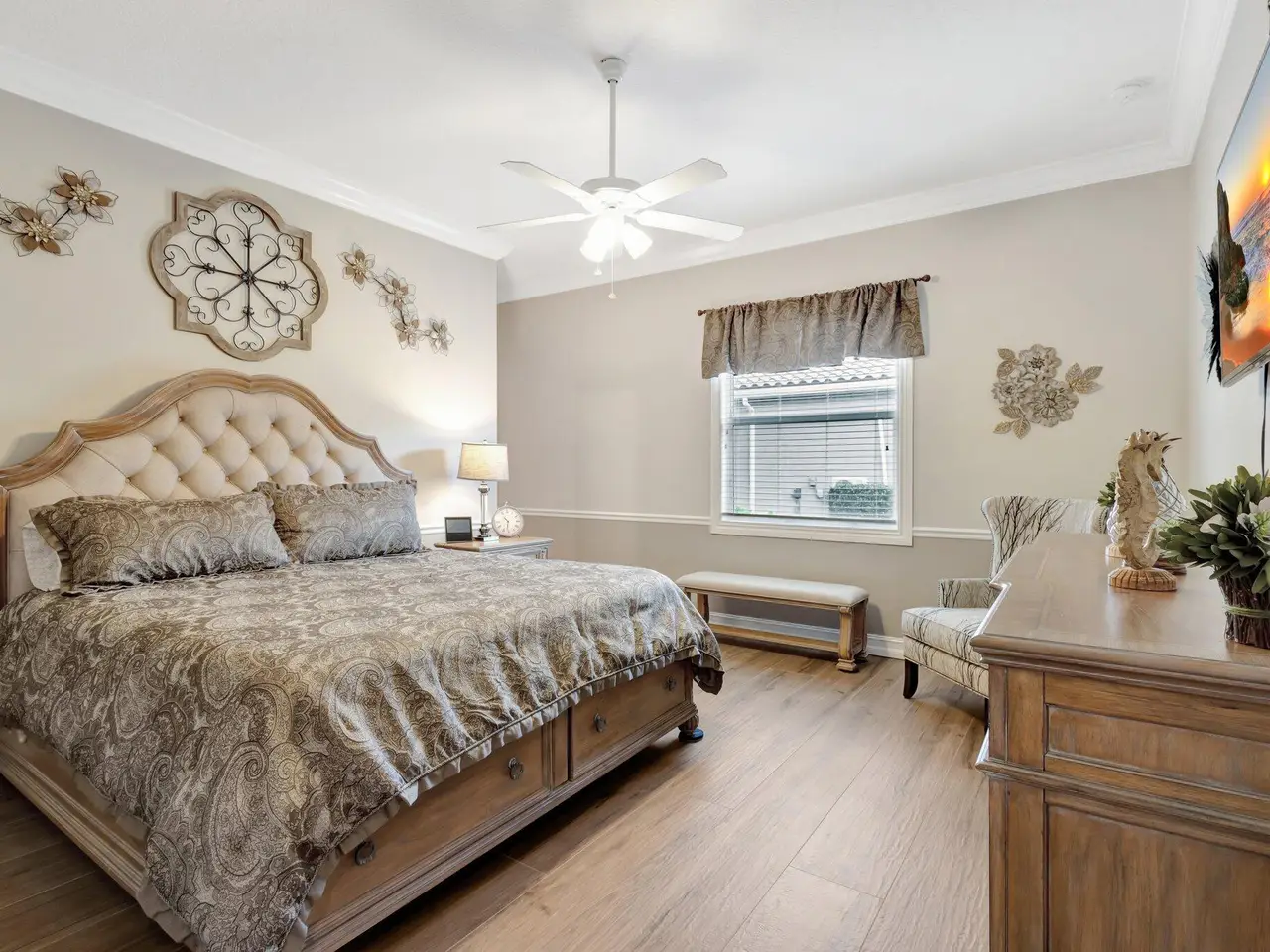 Enjoy pristine preserve views from this 4 bed, 4.5 bath + den + bonus room, home. Situated on just under 1/2 acre, this property provides ample room for a custom pool & has been impeccably updated, blending modern convenience with elegant charm. The open floor plan is perfect for entertaining, with large impact windows & doors flooding the space with natural light while offering stunning nature views. ''Wood look'' tile flooring throughout adds a touch of sophistication, while crown molding, wainscoting & plantation shutters enhance the home's elegant appeal. The gourmet kitchen was remodeled in 2024 & features new cabinetry, granite countertops, new appliances & a spacious walk-in pantry. The primary suite is a true retreat, with 2 custom walk-in closets & a spacious remodeled bathroom.