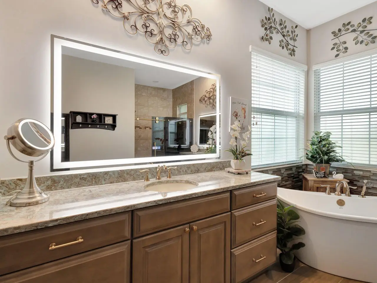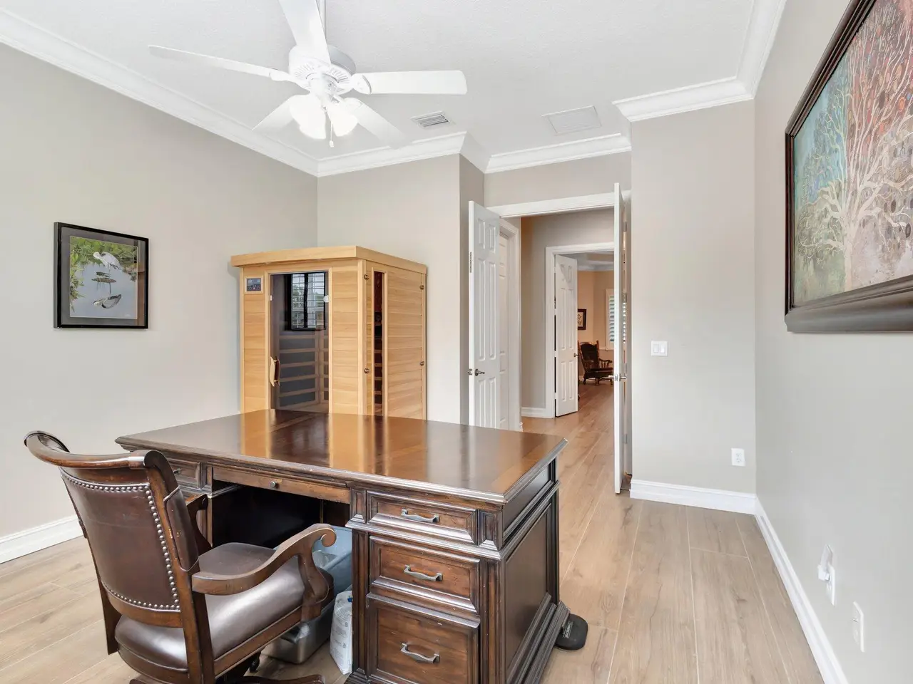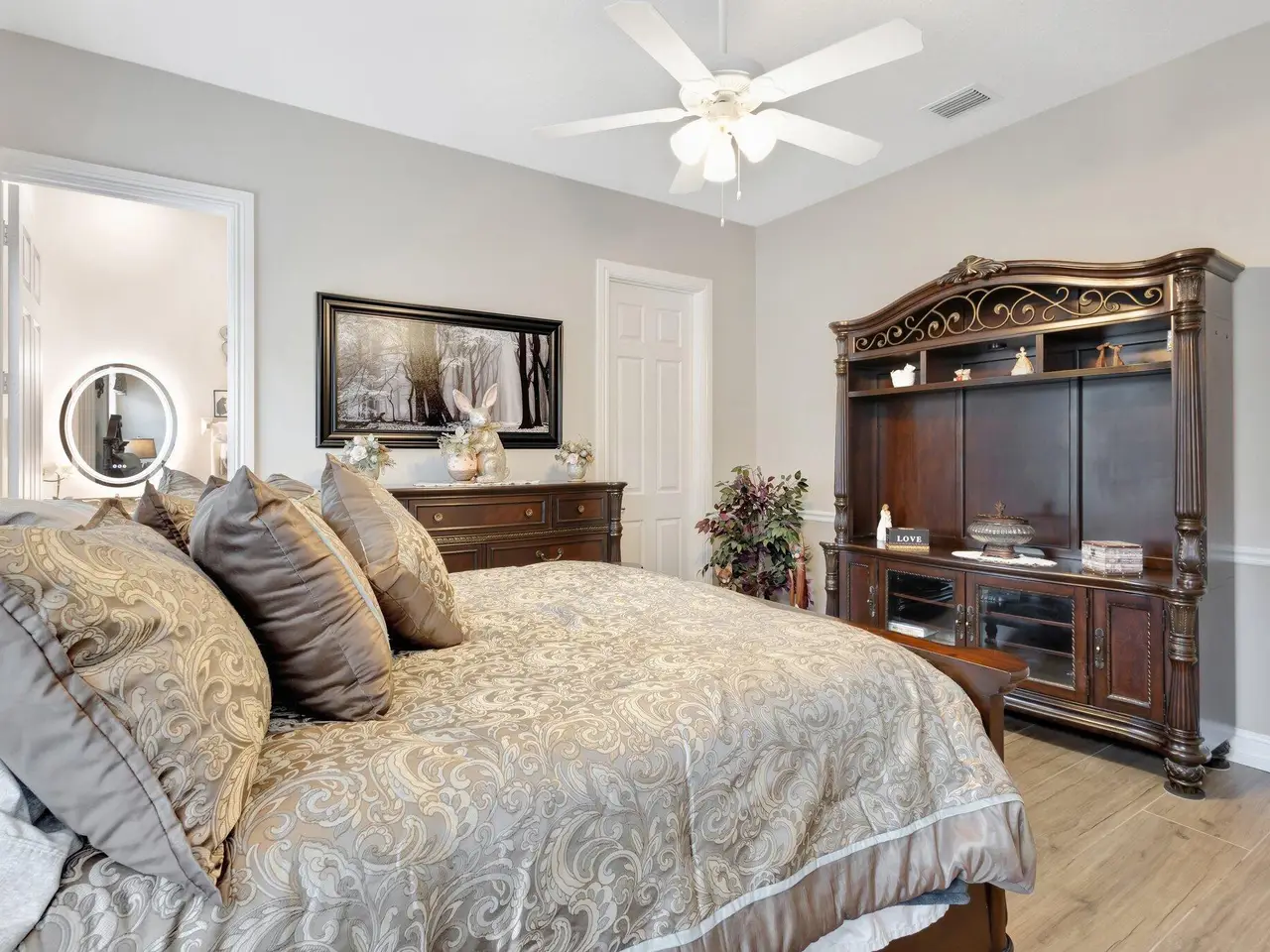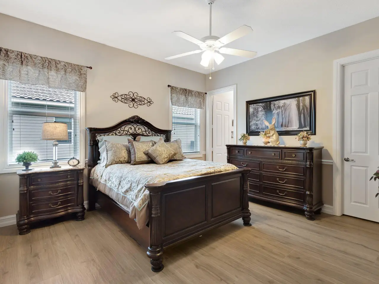 Enjoy pristine preserve views from this 4 bed, 4.5 bath + den + bonus room, home. Situated on just under 1/2 acre, this property provides ample room for a custom pool & has been impeccably updated, blending modern convenience with elegant charm. The open floor plan is perfect for entertaining, with large impact windows & doors flooding the space with natural light while offering stunning nature views. ''Wood look'' tile flooring throughout adds a touch of sophistication, while crown molding, wainscoting & plantation shutters enhance the home's elegant appeal. The gourmet kitchen was remodeled in 2024 & features new cabinetry, granite countertops, new appliances & a spacious walk-in pantry. The primary suite is a true retreat, with 2 custom walk-in closets & a spacious remodeled bathroom.