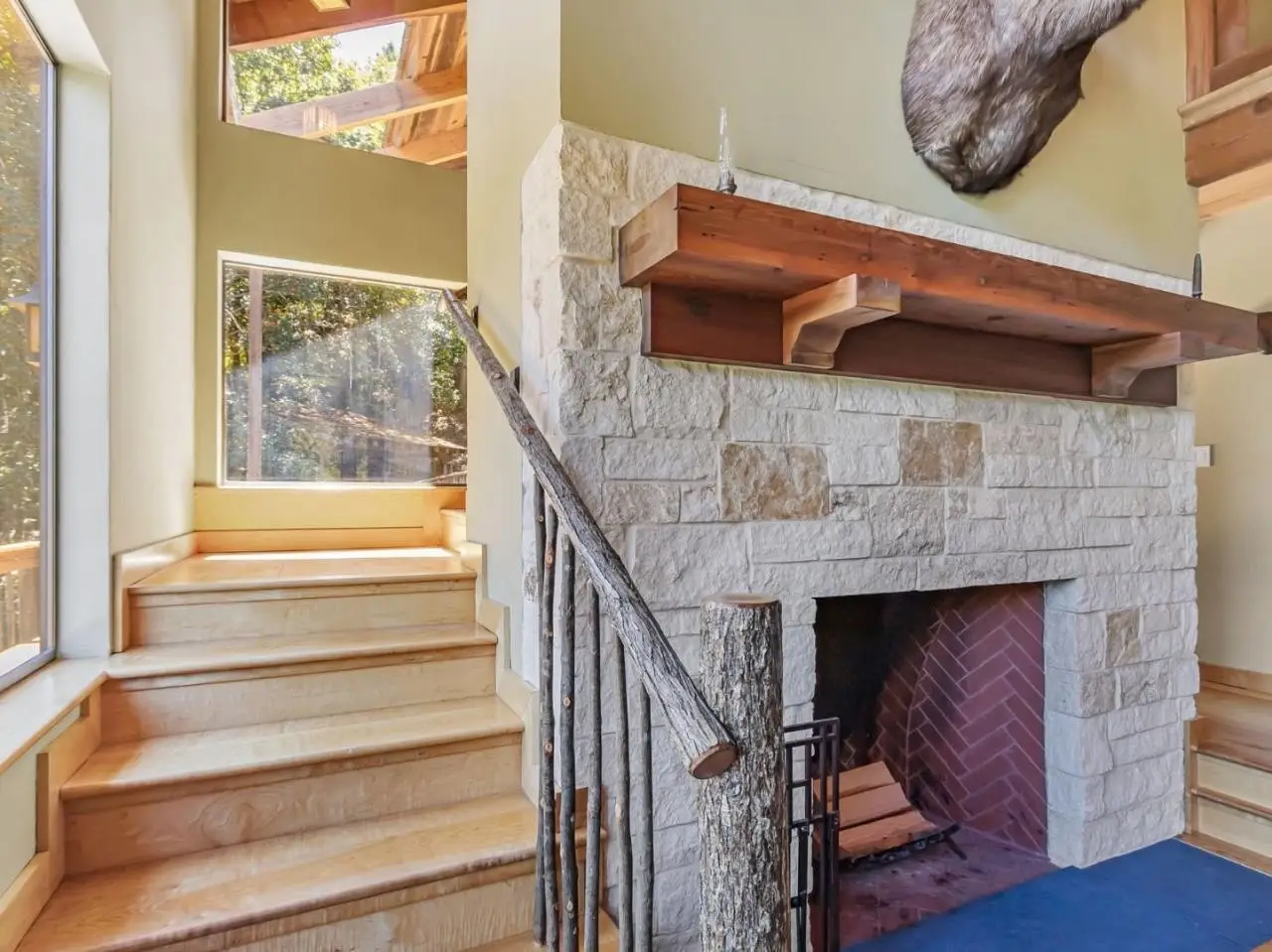 • Large stone fireplace